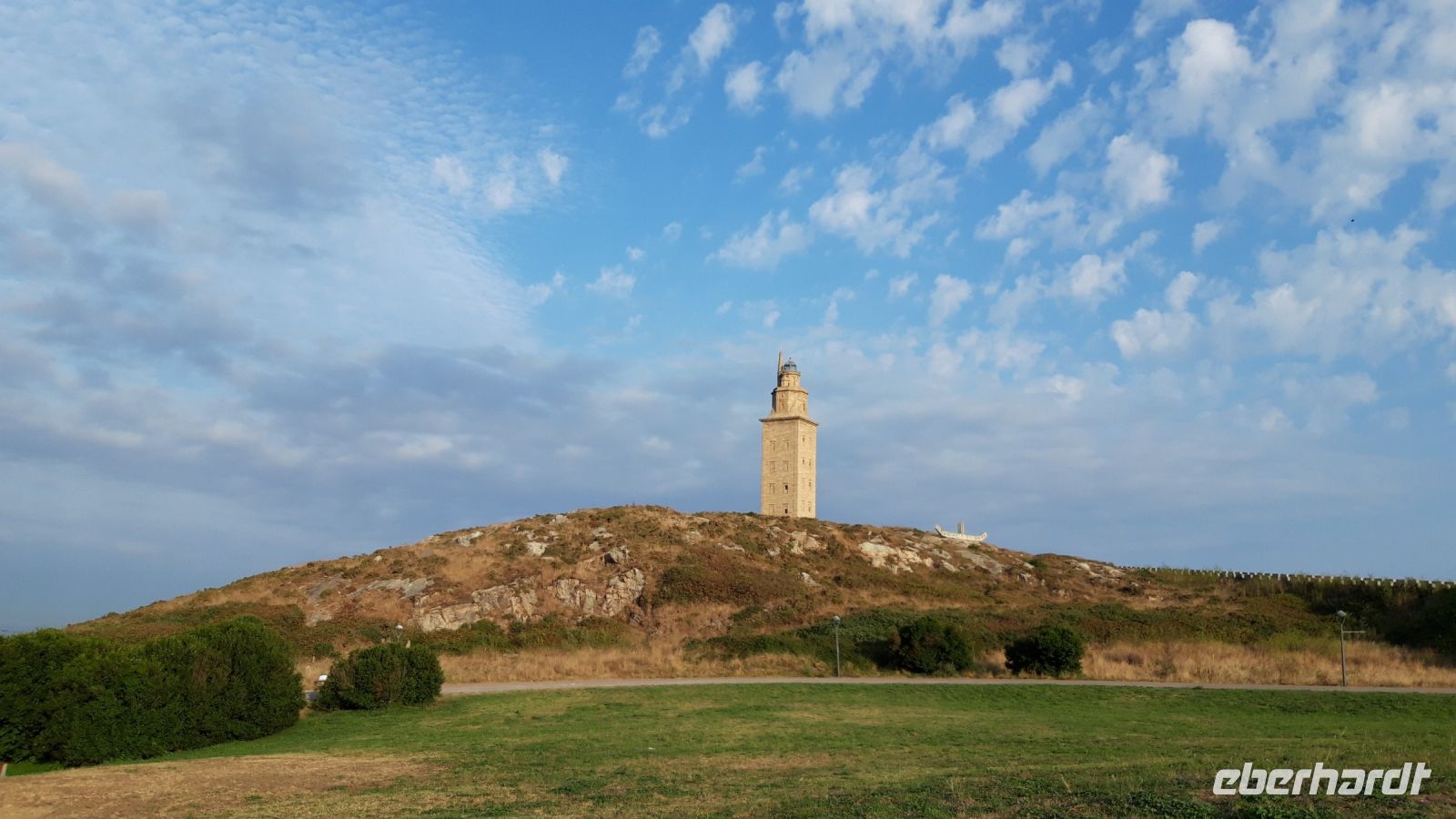 Bevor wir A Coruña wieder verlassen fahren wir noch zum Wahrzeichen der Stadt, zum Torre de Hércules. Der Leuchtturm geht auf römische Zeiten zurück und soll der Legende nach aus dem Felsen erbaut worden sein, auf dem der Held der griechischen Mythologie drei Tage und Nächte lang gegen den Riesen Geryon gekämpft hatte.