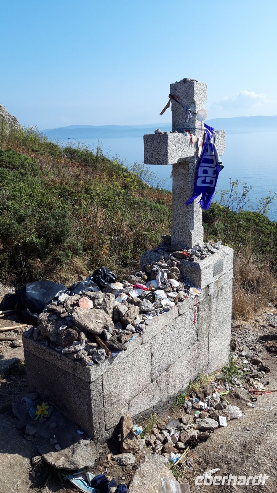 Bei strahlendem Sonnenschein verlassen wir die Hafenstadt dann Richtung Westen, unser Ziel ist wortwörtlich das Ende der Welt: Kap Finisterre. Der 247 Meter hohe Granitfelsen galt lange Zeit als der westlichste Punkt Europas, man weiß zwar mittlerweile dank moderner Kartographie, dass das nicht so ganz stimmt, aber ähnlich wie am Nordkap ändert es nichts an der Anziehungskraft auf Touristen. Auch viele Jakobspilger legen, nachdem sie in Santiago angekommen sind, noch zwei bis drei Tagesetappen ein, um schlussendlich am Kap Finisterre Kilometer 0 des Weges zu erreichen. Ebenfalls ähnlich wie am Nordkap ist es ein wahres Glücksspiel einen Moment zu erwischen, in dem man von dem Felsen aus tatsächlich eine gute Sicht hat, doch wir haben heutige Glück auf ganzer Linie und eine herrliche Sicht über die Costa da Morte. Ihren Namen hat die Todesküste aufgrund der gefährlichen Klippen und Strömungen, die schon unzähligen Schiffen zum Verhängnis geworden sind.