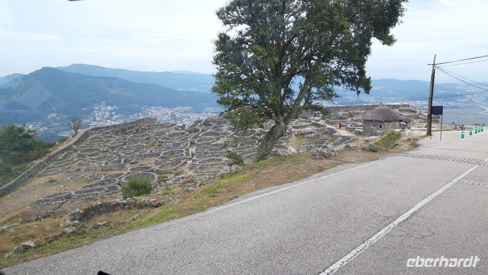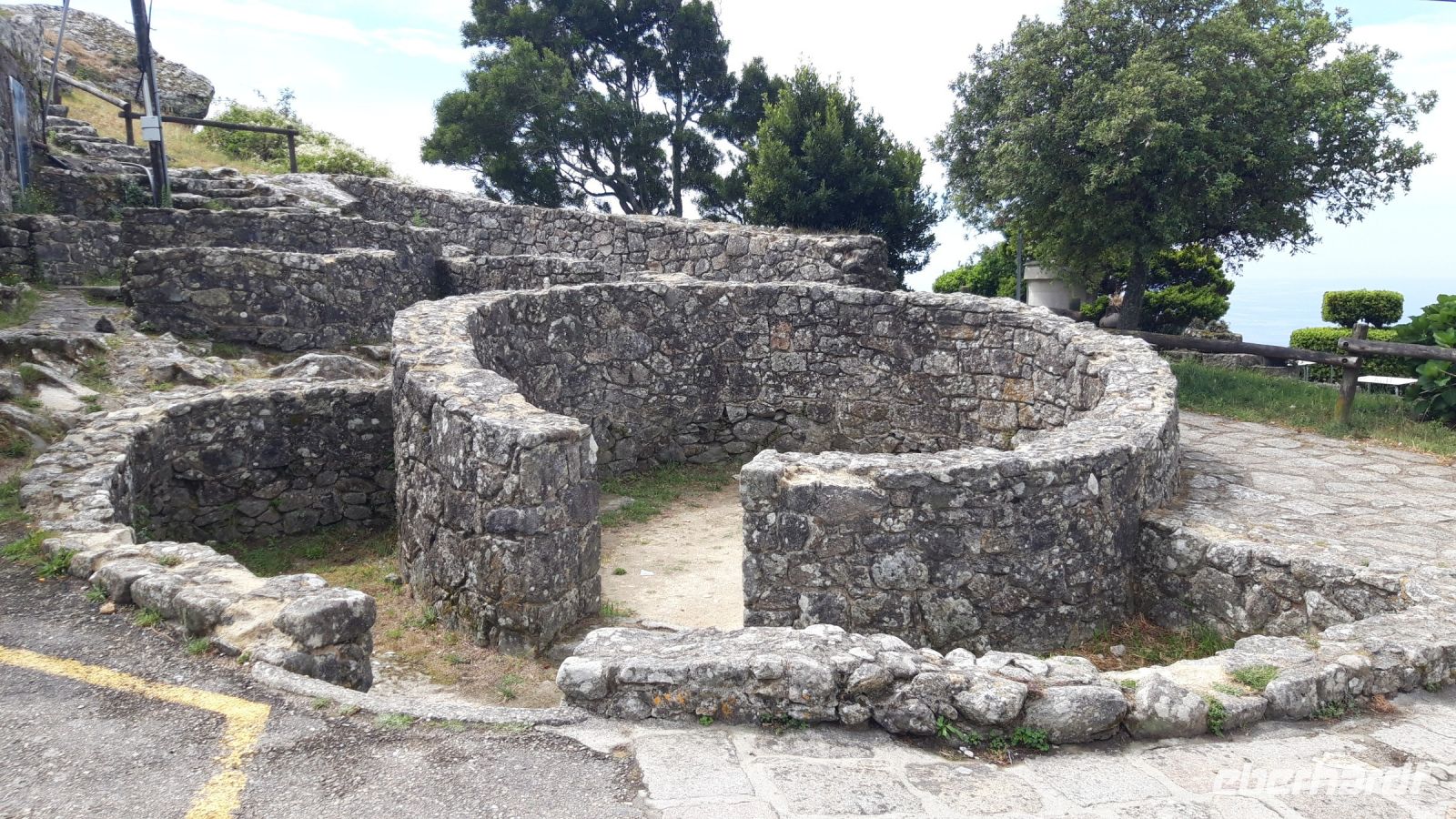Nach einer kleinen Mittagspause geht es für uns weiter nach A Guarda, wörtlich die Wache. Der Ort liegt direkt an der Mündung des Flusses Miño in den Atlantik und somit auch direkt an der natürlichen Grenze zu Portugal. Schon in der Bronzezeit um 600 v. Chr. wussten die Kelten diese ideale Lage zu schätzen und legten am Hang des 341 Meter hohen Monte de Santa Tegra ihre Siedlung an. Aufgrund der sehr gut erhaltenen Grundmauern und zahlreicher archäologischer Funde kann man davon ausgehen, dass hier einmal zwischen 3.000 und 5.000 Menschen lebten, die weitestgehend autark von Landwirtschaft, Fischfang und Jagd lebten. Auch Töpferei, (Kunst-)Handwerk und Textilherstellung wurden betrieben und zahlreiche Handelsbeziehungen unterhalten.
