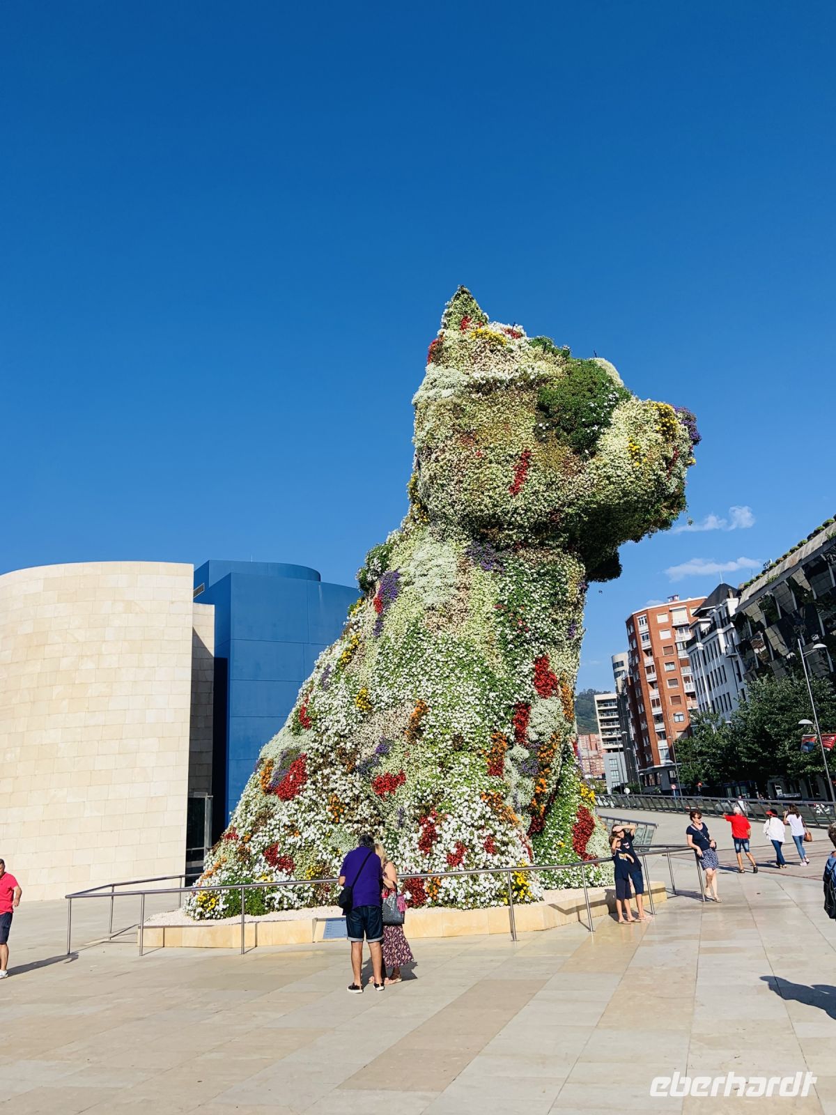 Der Besuch des Guggenheim Museums von Frank Gehry steht am Nachmittag an. 1997 eröffnete dieser spektakuläre Bau und beherbergt vor allem moderne Kunst. Die riesigen Werke einer Sonderausstellung „Der Stoff der Zeit“ von Richard Serrak sind seit 2005 ein Publikumsmagnet. Weitere wertvolle Unikate, wie die Ikone Marlin von Andy Wharhol sind sehr bekannt. Neben all dem ist es auch die beeindruckende Architektur von Innen und Außen, die das Museum weltbekannt machten. Am Ende bestaunen wir vor dem Haupteingang den Blumenhund Puppy von Jeff Coons.