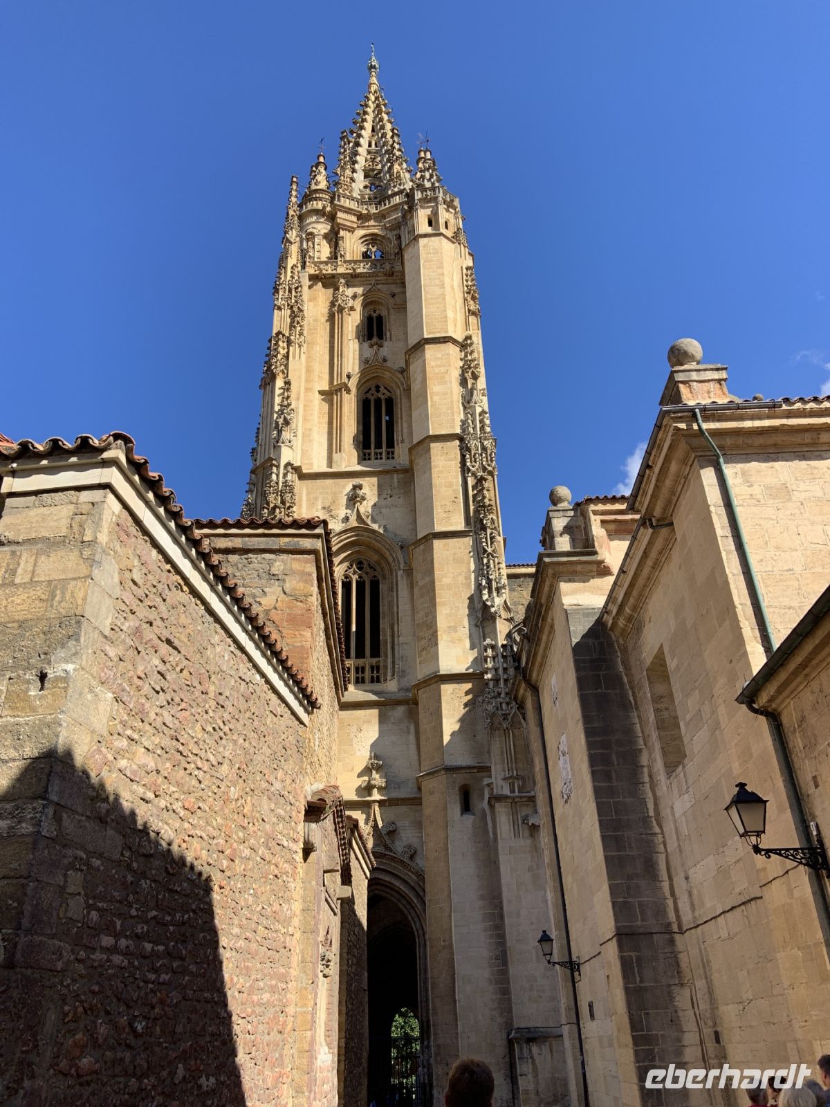 Vormittags Stadtführung in Oviedo. Nur wenigen außerhalb Spaniens ist bewusst, welche Bedeutung Asturien und seine Hauptstadt Oviedo für Spanien hat. Der spanische Thronfolger hat jeweils den Titel Prinz von Asturien bzw. derzeit Princesa de Asturias. Dies stammt noch aus dem 9.bzw.10.Jahrhundert, als Oviedo Regierungssitz des Königreiches Asturias war. So verwundert es nicht, dass es viele schöne Gebäude und Plätze gibt, die Universität, wie auch die große, gotische Kathedrale aus dem 16.Jh. mit einem berühmten Altarbild.
