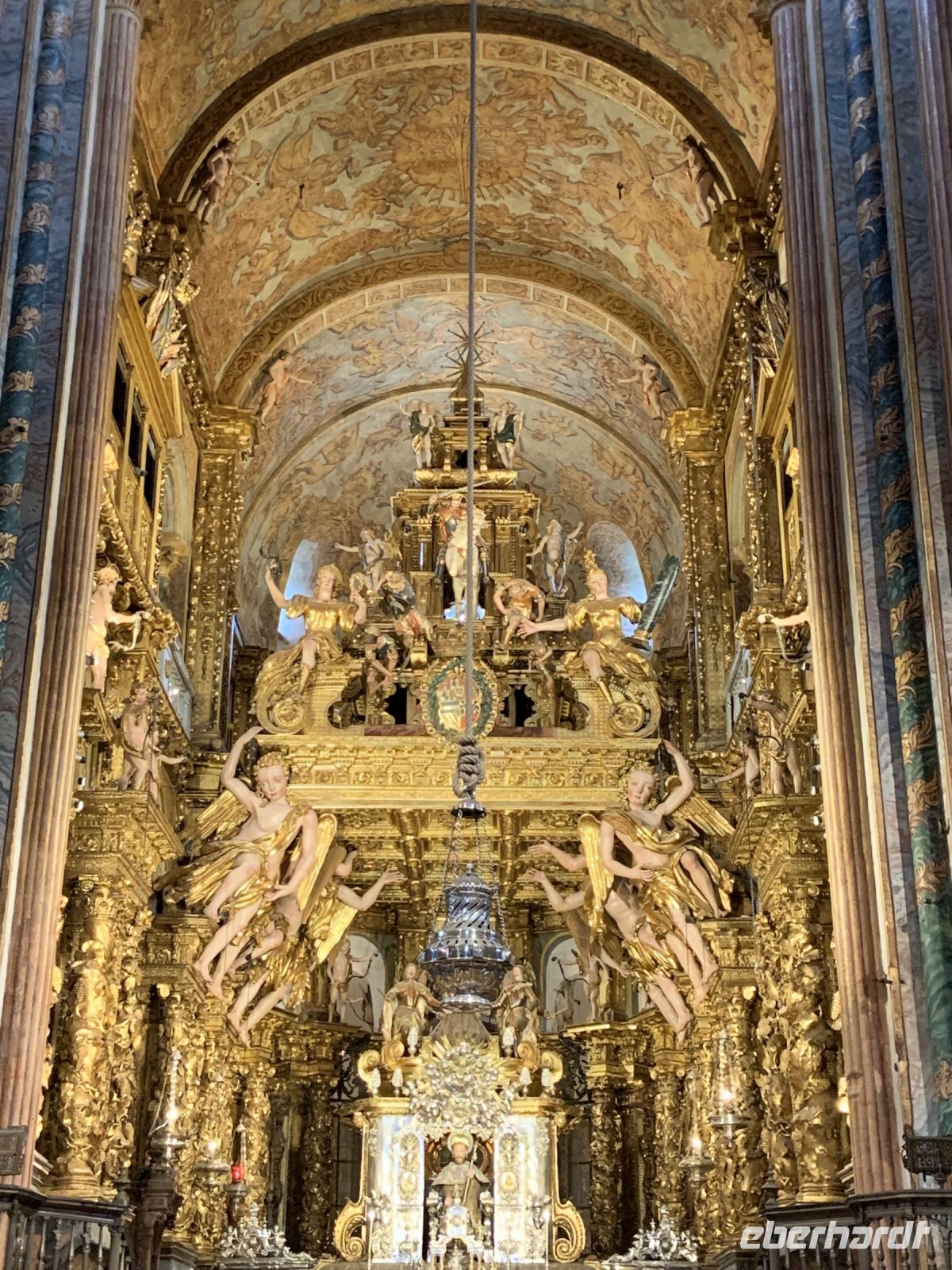 Mit der örtlichen Stadtführerin Isabell (mit schwäbischem Einschlag) machen wir uns auf den Weg die Stadt zu entdecken. Unsere Panoramatour führt uns entlang an eindrucksvollen Villen bis zum Meer. Der Stadtstrand Matosinhos ist gut besucht, obwohl der Atlantik hier eher mäßige Temperaturen hat. Weiter hinten sehen wir das Kreuzfahrtterminal. An der Festung (Käseschloss) vorbei kommen wir ins Nobelviertel Foz, an der Mündung des Douro in den Atlantik gelegen. Auf der Boa Vista Allee nähern wir uns dem Stadtzentrum. Wir sehen zunächst das eigentliche Wahrzeichen, den Clerigos Turm, auch Finger genannt. An der Bücherei Libreria Lello steht eine lange Warteschlange. Harry Potter-Fans sorgen für den Andrang.
