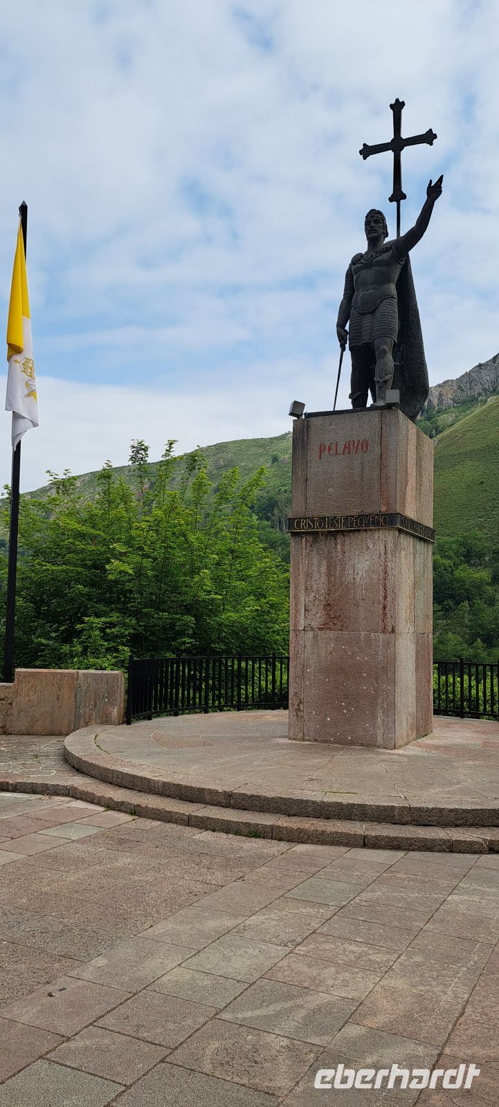Eine Statue von "Don Pelayo" dem ersten König Asturiens entdecken wir nahe dem Eingang der großen Basilika. Er ist das Symbol einer neuen Hoffnung nach der Schlacht von Covadonga im Jahr 722, wo sein Heer die Mauren zurückschlug und die Reconquista einleitete. Allerdings vermutet man inzwischen, dass es sich eher um ein kleines Gefecht handelte und der "Covadonga Mythos" als stark übertrieben gilt.
