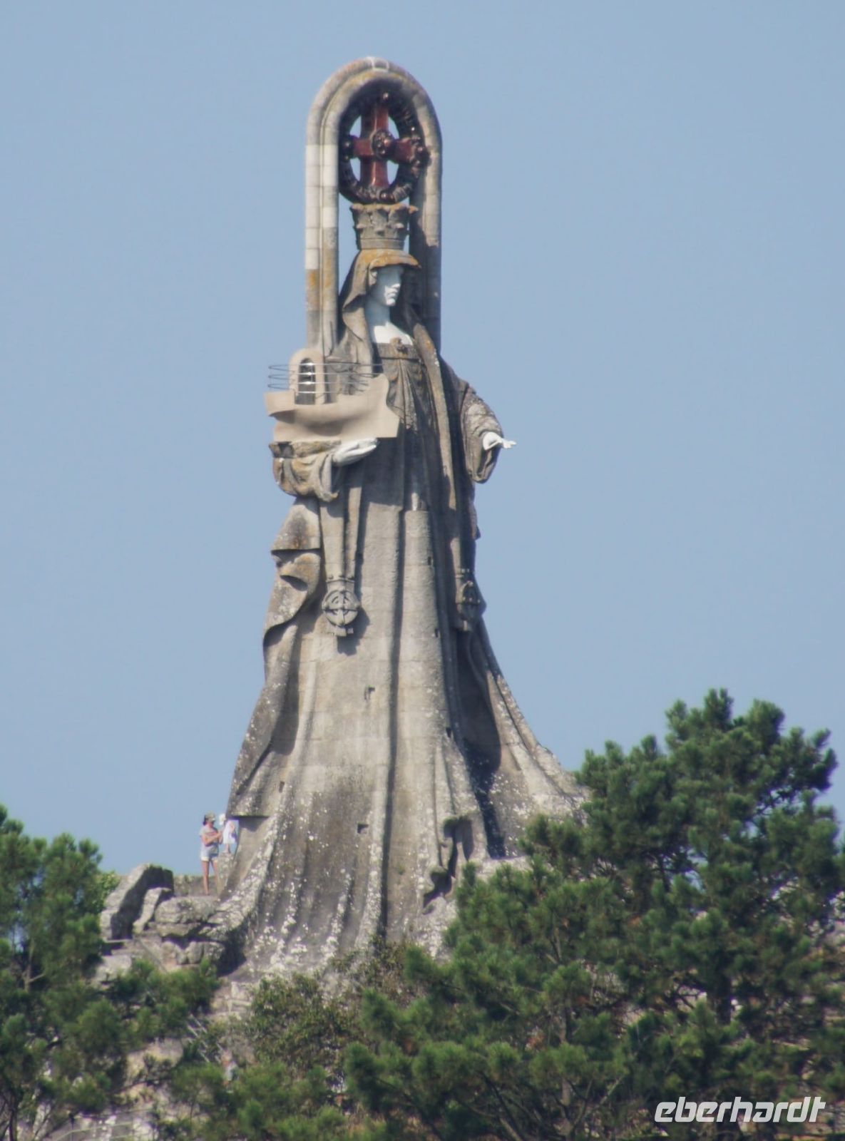 Dann führte uns der Weg hinauf auf den Monte Santa Trega – einen Ort, an dem sich Geschichte, Spiritualität und Natur auf faszinierende Weise verbinden. Der Berg erhebt sich über der Mündung des Río Miño. Gleich nach dem Aussteigen ließen wir den Blick über die grüne Küste Galiciens bis hinüber nach Portugal schweifen. Doch nicht nur das Panorama war beeindruckend: Auf dem Hochplateau befinden sich die Überreste einer der bedeutendsten Siedlungen der Castrokultur, einer keltiberischen Hochkultur, die hier zwischen dem 6.?Jh.?v.?Chr. und dem 1.?Jh.?n.?Chr. lebte, aber sich in vielerlei Hinsicht von den Kelten der Hallstatt-Kultur unterscheidet.