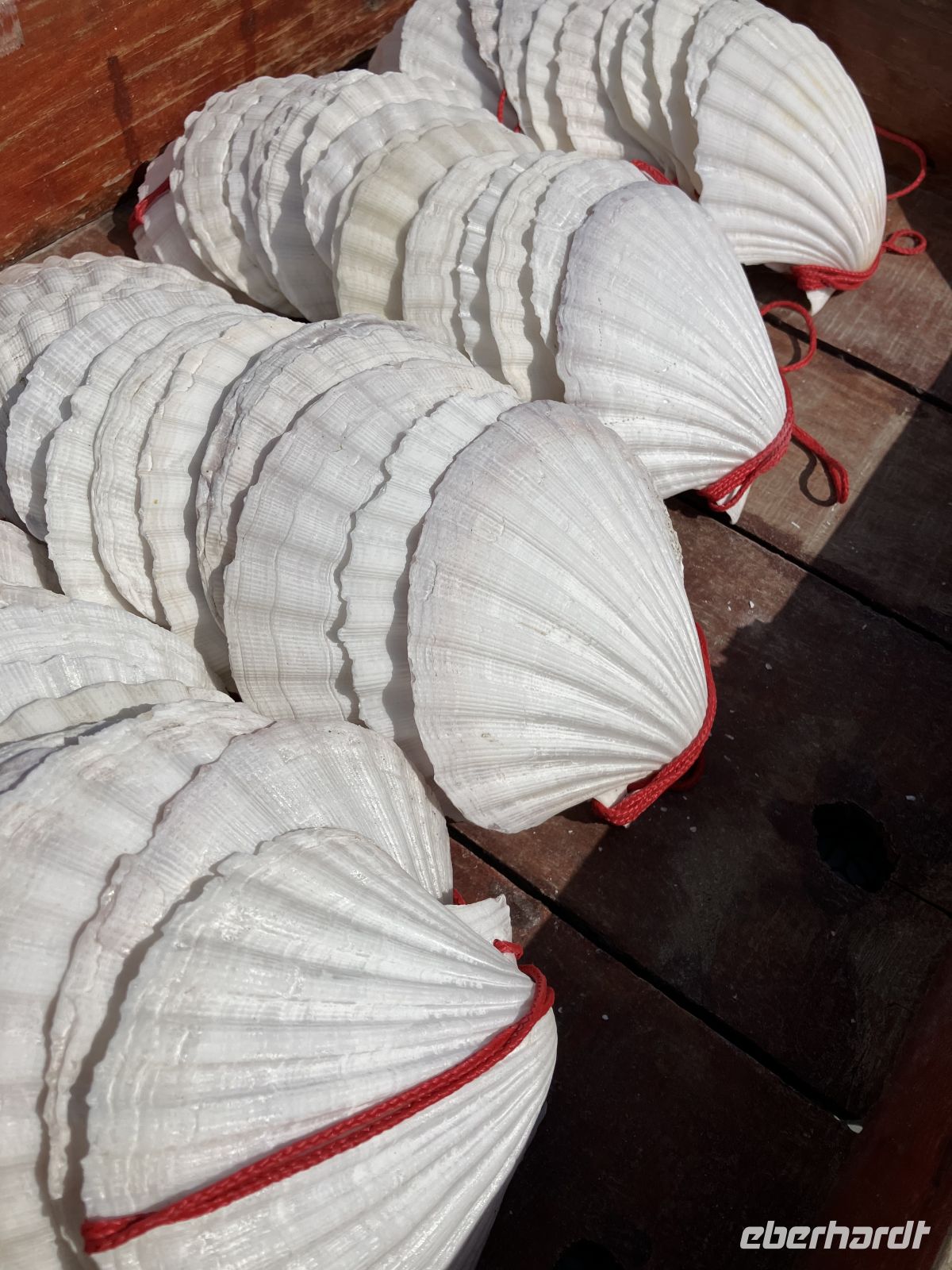 Auf der Insel bewunderten wir die einzigartige Kapelle San Caralampio, deren Außenwände komplett mit unzähligen Jakobsmuschelschalen verkleidet sind – ein kreatives Kunstwerk, das die innige Verbundenheit mit dem Meer widerspiegelt.
