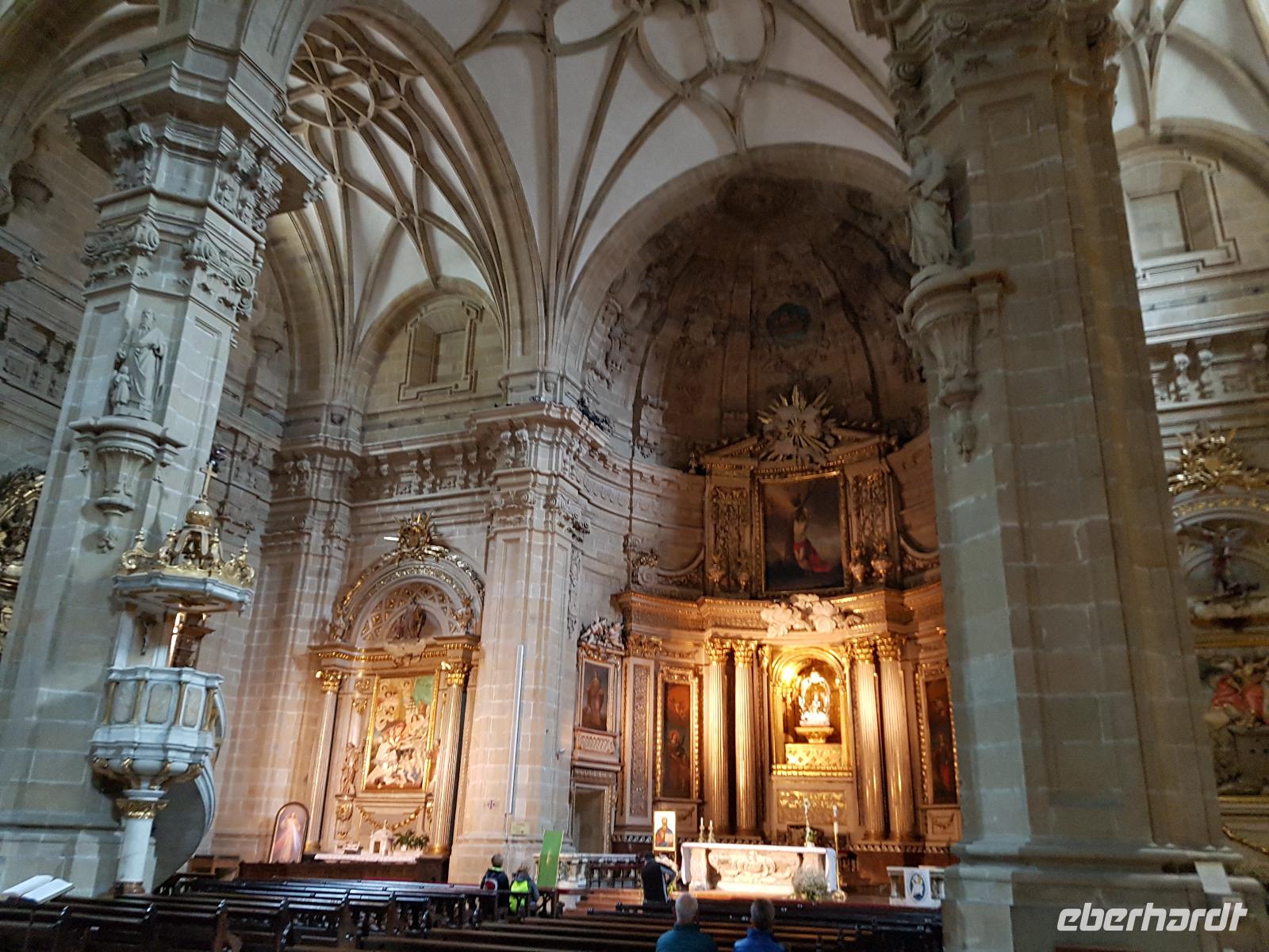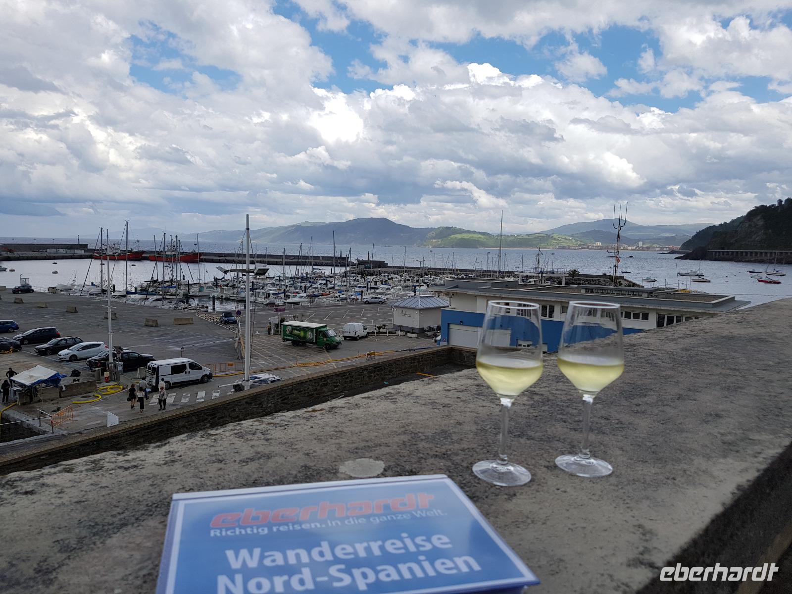 Mit den Zubringer-Fliegern aus Leipzig, Berlin und Dresden, treffen wir uns - 15 liebe Gäste und ich - in Frankfurt und flogen weiter mit Lufthansa in den Norden von Spanien nach Bilbao. Dort erwartet uns Ruben, unser örtlicher Reisebusfahrer, der gemeinsam mit Ihrer Reiseleitung, Benjamin, die neue 9 Tage Wanderreise in Nordspanien zu einem echtem Erlebnis werden lassen;) Bevor wir zu unserem Hotel Codina in San Sebastian fuhren, hatten wir noch drei erste Überraschungen: Guetaria, Zarautz und Monte Igueldo. Wir fuhren erst einmal nach Guetaria, wo sich eine tolle alte Kirche befindet und Benjamin für die Gruppe etwas sang. Hier trafen wir schon die ersten Jakobswegpilger, die auf ihrem Weg nach Santiago waren. Am Hafen, oben auf einer Terrasse lud Benjamin zum Txacoli ein, ein toller Weißwein aus der Baskenland Region. Weiter immer an der Küste entlang machen wir Halt in Zarautz, wo der berühmte Chefkoch aus Spanien, Karlos Arguiñano, ein Restaurant direkt am Strand hat. Hier konnten wir Kaffee und Kuchen essen und später die Surfer betrachten, wie sie auf die Wellen geritten sind. Anschließend fuhren wir nach San Sebastian, die schönste Stadt im äußersten Norden der iberischen Halbinsel, die an einer Bucht im Baskenland liegt. Noch eine Überraschung heute. Wir fuhren mit der Zahnradbahn hoch auf den Igueldo Hügel wo ein alter Freizeitpark liegt, von welchem man die besten Ausblicke auf San Sebastian hat. Benjamin bereitete noch eine Überraschung vor und zwar eine Art von Achterbahnfahrt für Kinder und Erwachsene. Wir haben so viel gelacht, wie seit lange nicht mehr. Meine Güte. Eine Achterbahn aus den 70er Jahren ... und sie funktioniert immer noch. Aber für ganz kleine Kinder würden wir es nicht empfehlen. Im Hotel Codina haben wir unser Gepäck auf den Zimmern gelassen und gingen danach gemeinsam zu Fuß zum Restaurant. Heute gab es Fisch und Salta mit Avocado. Und natürlich guten Wein, der auf dieser Reise nicht fehlen darf und wird;)