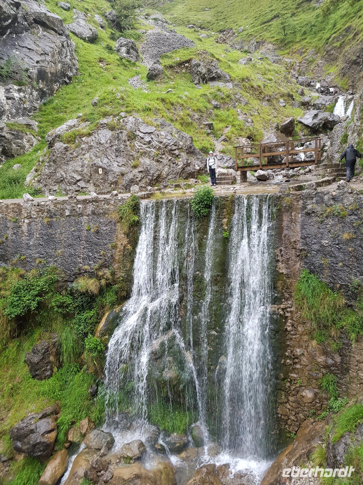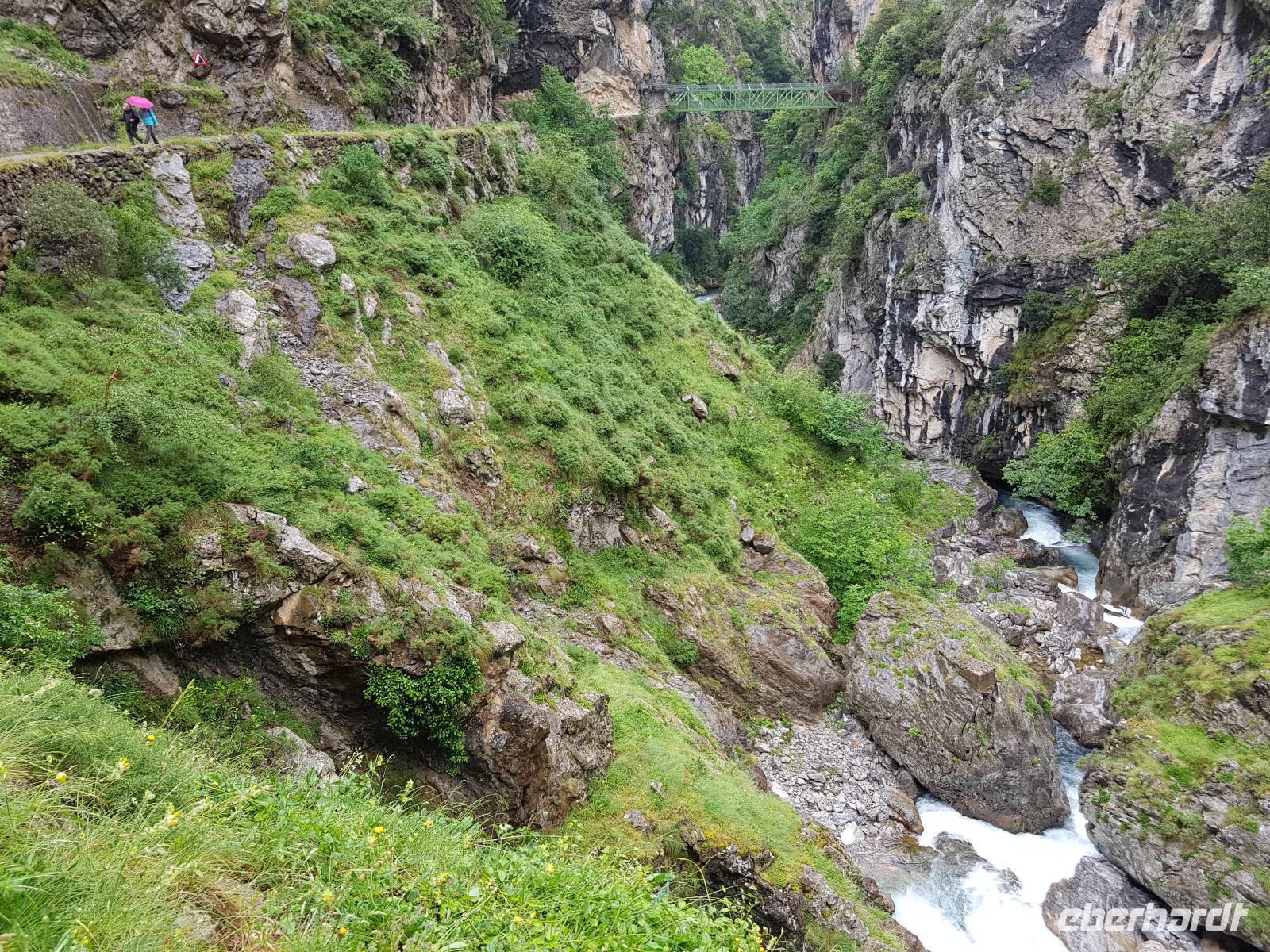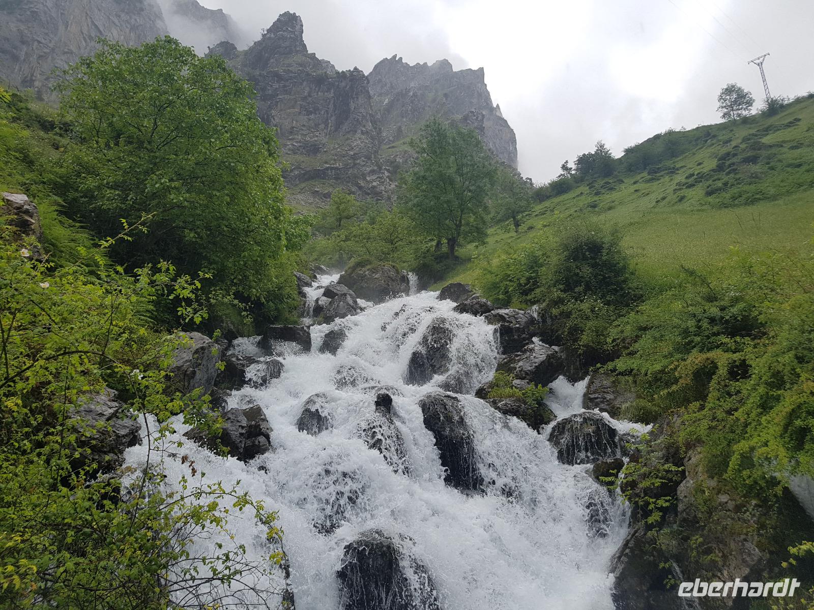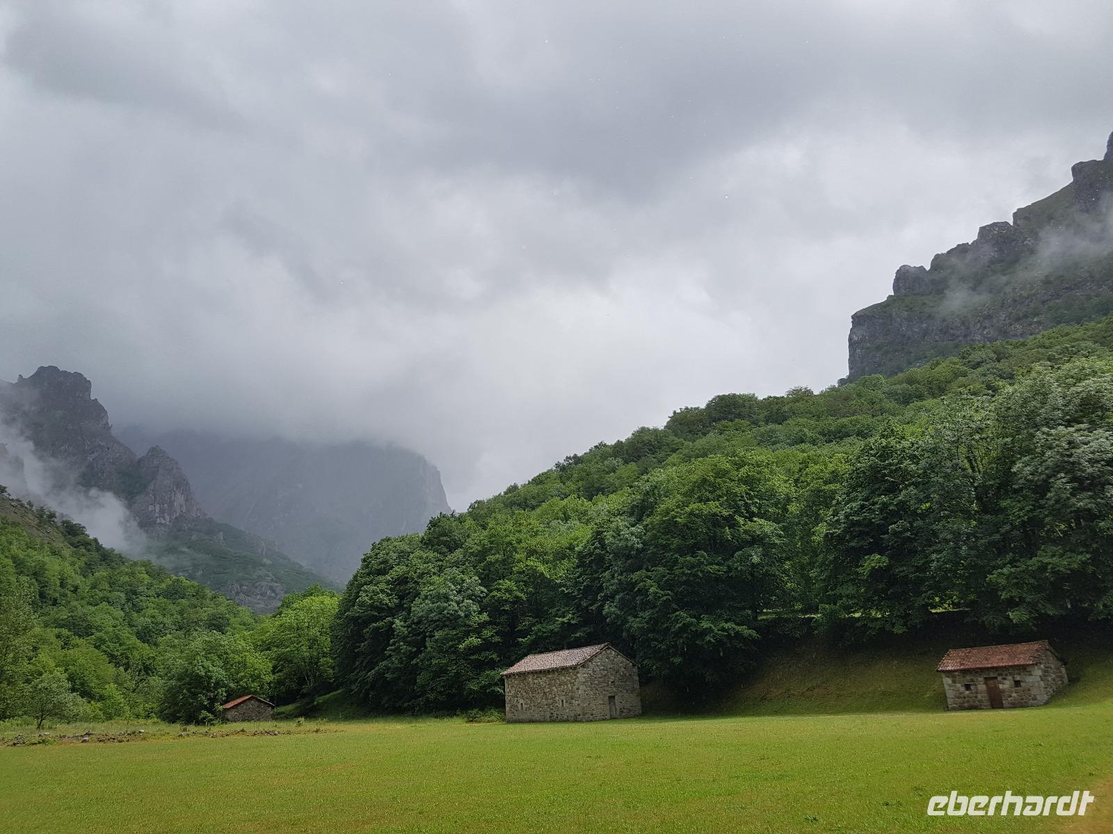 Heute fängt unsere Wanderreise mit einer ca. 12 Kilometer tollen und leichten Wanderung durch die atemberaubende Cares Schlucht an. Nach dem Frühstück schnürten wir uns zum ersten Mal unsere Wanderschuhe. Wir fuhren kurz bis Poncebos, die Tür des Nationalparks Picos de Europa und begannen hier, wie gesagt eine leichte Wanderung auf der Ruta del Cares, die uns bis Cain bringt. Die Ruta del Cares ist einer der bekanntesten Wanderwege zwischen Asturien und Leon und verläuft im mittleren und östlichen Teil des Picos de Europa. Während der Wanderung machten wir verschiedene Pausen, um die Landschaft zu genießen und heben die Picknick-Pause lieber für Cain auf, da es heute ein bisschen regnete. Uns gefällt die Natur hier inmitten einer der schönsten Schluchten Spaniens. Doch das Schönste kommt am Ende und wir lassen uns überraschen. Am Ende der Wanderung wartet auf uns eine warme Suppe in Cain und später mit fuhren wir mit zwei Taxen bis Posada de Valdeon, wo sich unser Hotel befindet. Für einige von uns waren die 12 Kilometer nicht genug und wir wanderten Berg auf noch 9 Kilometer von Cain bis Posada de Valdeon, mitten ins Tal und ins Herz des Nationalparks. Einfach herrlich! Wir dachten wir sind in den Alpen. Das sieht genauso aus, oder? Wunderschön! Wer hätte gedacht, dass solche Hochgipfel und Bergketten bis 2.648 Meter hoch hier in Nord-Spanien weit entfernt von den Pyrenäen liegen.