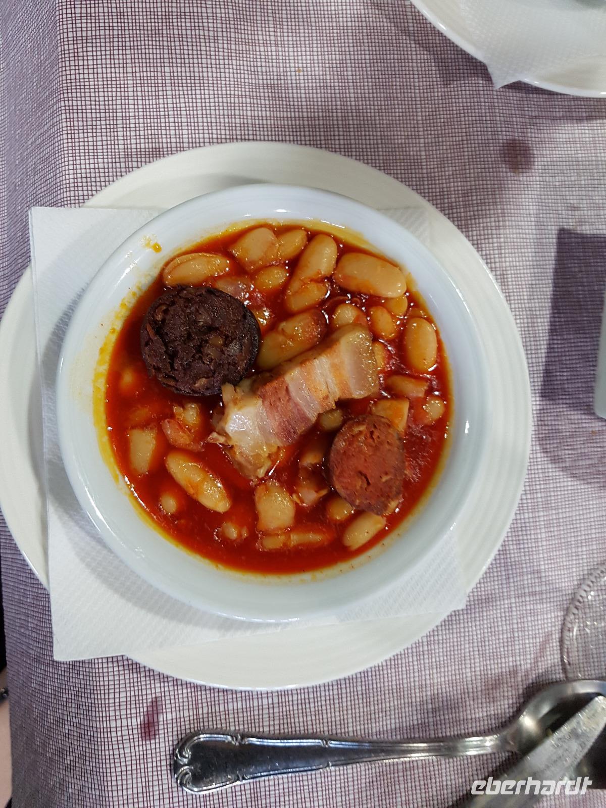Nach der Tapas-Pause erkundeten wir weiter bis zum Fluss Urumea die Altstadt oder Parte Vieja mit vielen bekannten Touristenattraktionen wie zum Beispiel dem Kursaal und der Kongresshalle, in der das Film-Festival jedes Jahr stattfindet. Dieses Jahr wurde San Sebastian zur Kulturhauptstadt Europas 2016 gewählt. Nach einem kleinen Bummel zurück ins Hotel und einer kleinen Aperitif-Pause, um weiter Kraft zu tanken, fuhren wir weiter an der Atlantik-Küste entlang und besuchten den Küstenort Comillas in der autonomen Region Kantabrien, wo viele Adlige aus Spanien einen Teil ihres Sommerurlaubs bevorzugt verbrachten. Unter den Sehenswürdigkeiten besuchten wir hier auch ein Bauwerk des weltberühmten katalanischen Architekten Antoni Gaudi. Wir besichtigen sein „El Capricho", ein wunderschönes Sommerlandhaus, das für einen vermögenden Geschäftsmann 1885 errichtet wurde. Nach dem Besuch eines englischen Friedhofs am Meer und einem Kaffee am Strand von Comillas, fuhren wir am Nachmittag weiter zu unserem Hotel in Cabrales vor den Türen des Nationalparks Picos de Europa, unbekannt für viele, aber immerhin einer der meistbesuchtesten Nationalparks Spaniens. Asturien, wo wir heute sind, ist eine spanische Region bekannt für ihre Fabadas oder Fabes (Weiße Bohnen mit Wurst) und ihr gutes Essen im Allgemeinen. Das konnten wir nach dem tollen Tapas Abendessen bestätigen;)