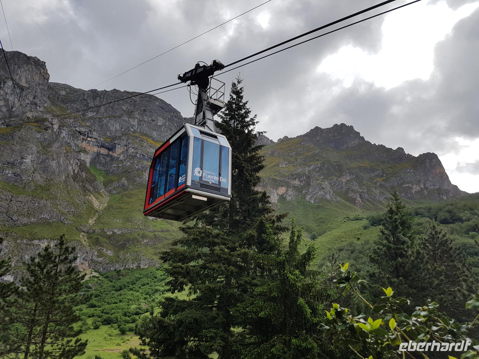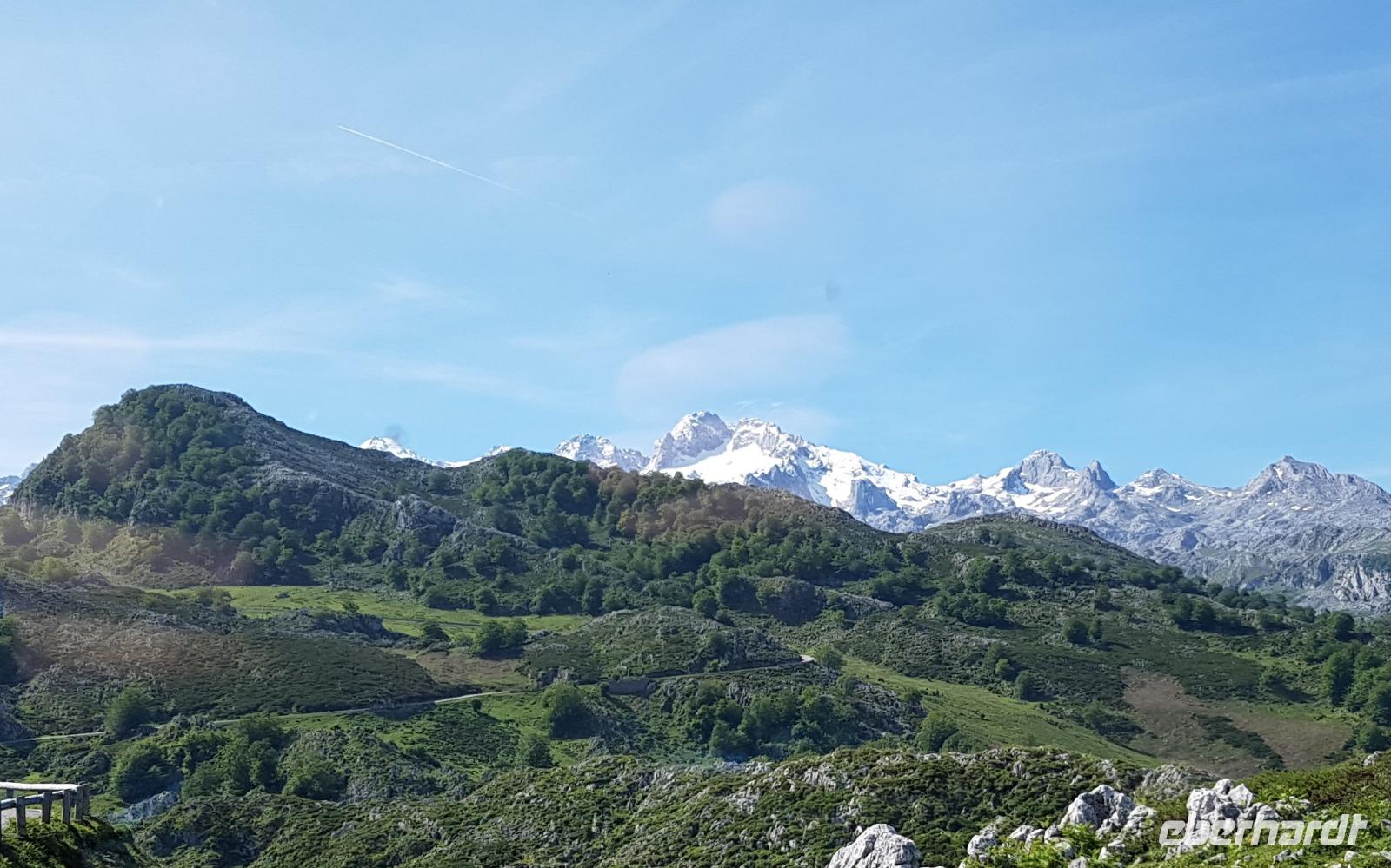 Als wir heute die Augen öffneten hatten wir vor uns die "spanischen Alpen". Eine tolle Landschaft. Heute haben wir eine moderate bis anspruchsvolle, 16 Kilometer lange schöne Wanderung vor uns. Wir fuhren erst einmal über einen Pass bis zur Seilbahnstation von Fuente De, in Kantabrien. Nachdem wir mit der Seilbahn in Fuente De 753 Meter hochgefahren waren, unternahmen wir hier oben auf 1.823 Meter eine unvergessliche Wanderung im Herzen des Picos de Europa. Wir fühlten uns wie in den Alpen und hatten sogar Mitte Juni Schnee vor uns;) Vor uns konnten wir bizarre Faltengebirge und ausgeprägte Karstlandschaften sehen, die durch das Zusammenstoßen der Iberischen Halbinsel mit der afrikanischen Platte entstand. Wir sahen heute einige von den etwa 200 Gipfeln, die sich im Picos de Europa auf einer sehr kompakten Fläche mit über 2.000 Metern Höhe befinden! Der höchste Gipfel dieses Gebirges ist mit 2.648 Metern der Torre de Cerredo. Gemeinsam mit Salva, unserem örtlichen Wanderreiseleiter entdeckten wir diese herrlichen und hohen Berge. Wir wandern heute vom Aussichtspunkt El Cable oberhalb von Fuente bis Aliva Berghütte, wo wir unsere Mittagspause machten. Auf dem Weg sang Benjamin: "Herrliche Berge, sonnige Höhen, Bergvagabunden sind wir". Die Landschaft hier oben ist toll. Bisschen frisch für Juni, aber herrlich. Wir wandern gemeinsam mit wilden Pferden und Kühen durch schöne grüne Wiesen unterhalb des schneebedeckten Gipfels. Am Nachmittag gingen wir zurück zur Seilbahnstation, wo unser Bus bereit stand und verabschiedeten uns von Salva und seine Frau Ana, die genau heute 5 Jahre Hochzeits-Jubiläum mit uns beim Wandern feierten. Auf dem Weg zum Hotel machten wir einen kurzen Stopp bei dem Kloster von Santo Toribio de Liebana, wo laut Tradition ein Stück Holz von dem Christus Kreuz stammt. Ein ganz netter Franziskaner Mönch erklärte uns die ganze Geschichte und diejenige die wollten, konnten das Kreuz küssen. Im Potes, wo unser Hotel sich befindet machten einige von uns vor oder nach dem Abendessen einen Spaziergang ins Zentrum in dem man das berühmte Sidra aus Apfel trinken konnte.