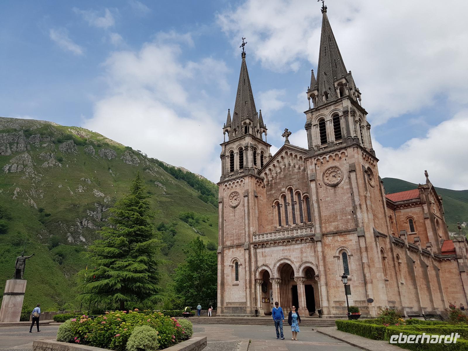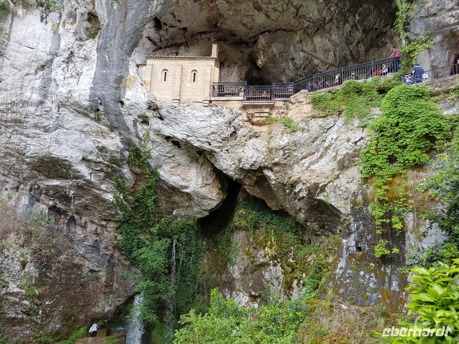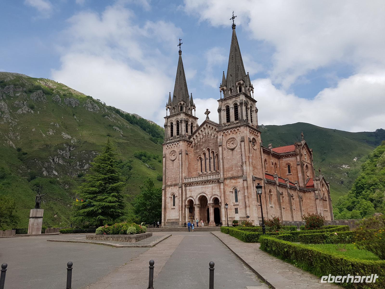 Nach der Wanderung fuhren wir wieder herunter bis zum Wallfahrtsort von Covadonga, wo die große Basilika und eine kleine Kapelle in die Felsen gebaut sind. Hier fanden wir auch andere Pilger, da hier auch eine Station an der Küsten-Nordvariante des spanischen Jakobswegs ist. Berühmt ist Covadonga, da 711 genau hier in diesem Gebirge die Reconquista (Wiedereroberung der Christen) mit der Schlacht von Covadonga, die erst 1492 im andalusischen Granada beendet war, begann. An der Madonna konnte Benjamin zwei Lieder Singen und eine Kerze für uns alle anzünden damit unsere Reise weiter gut läuft.