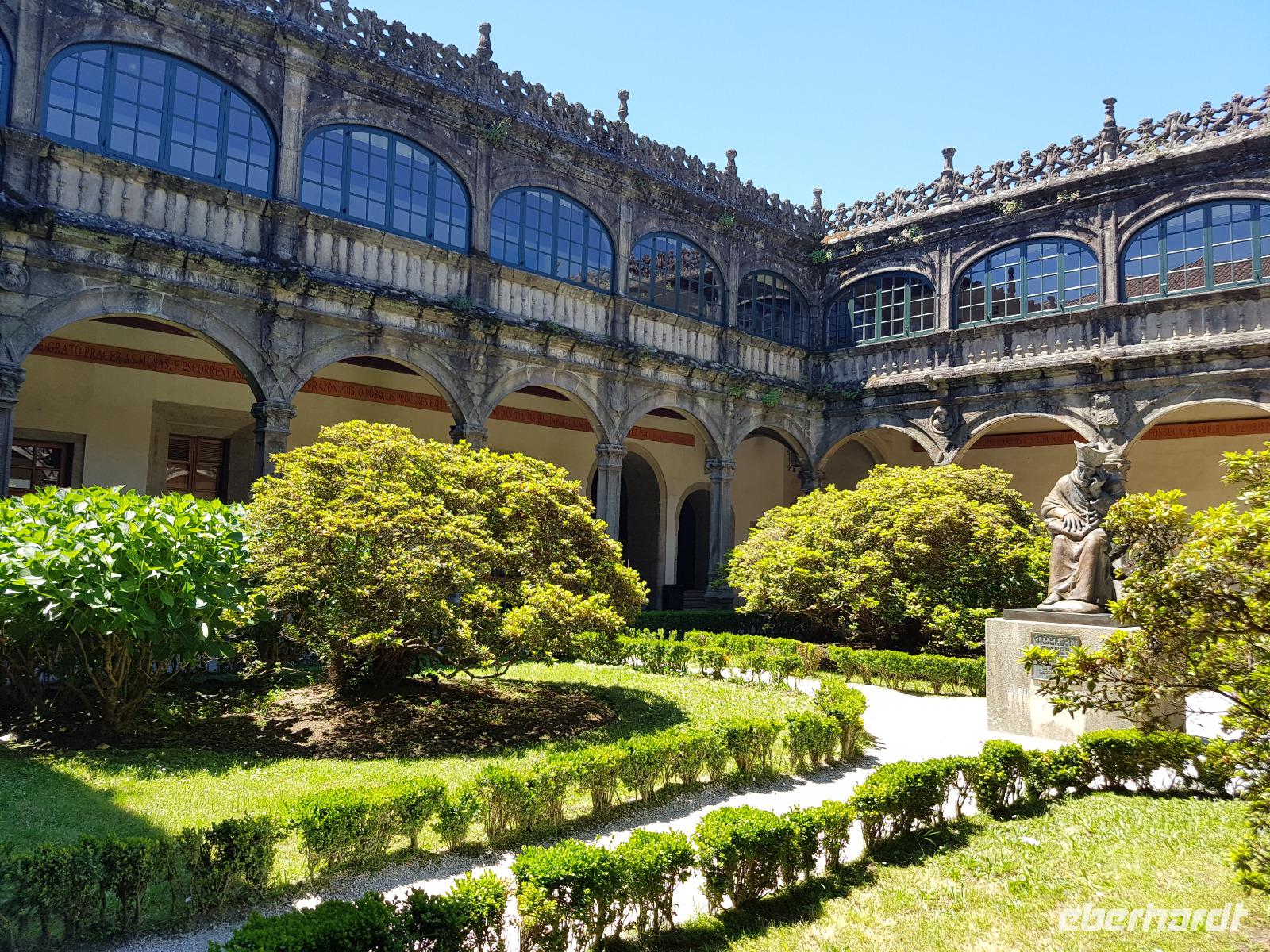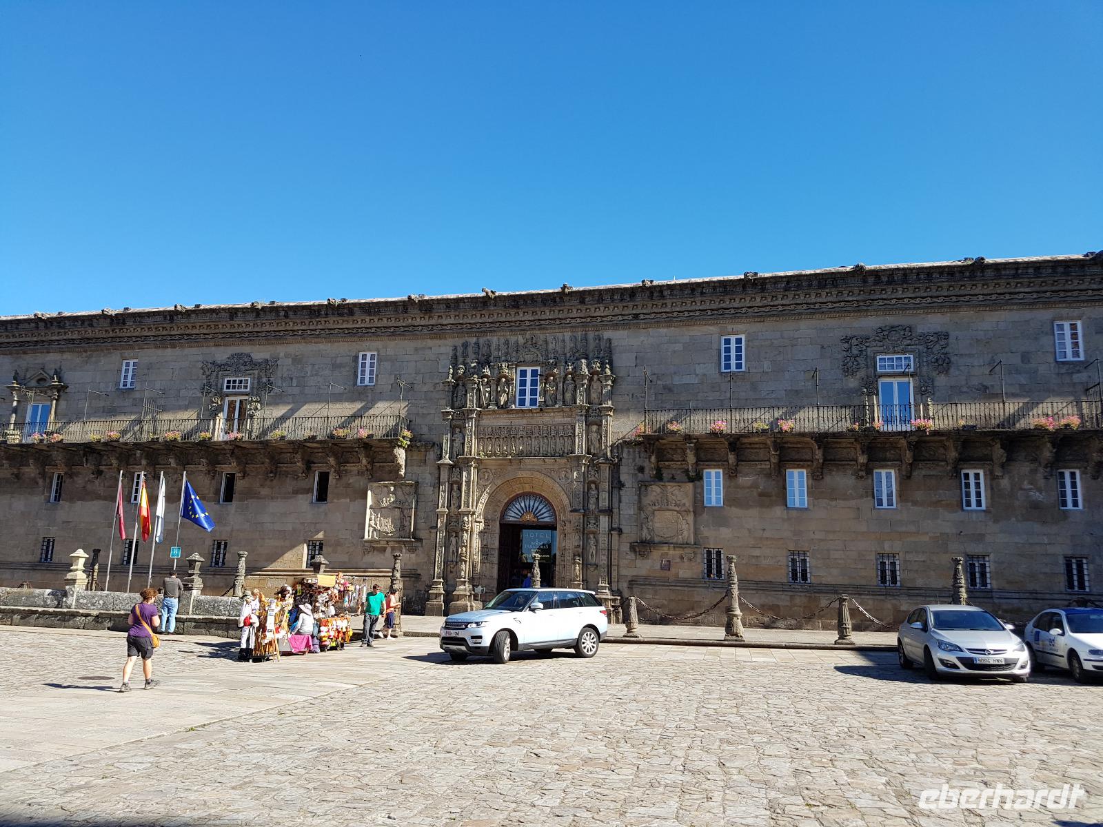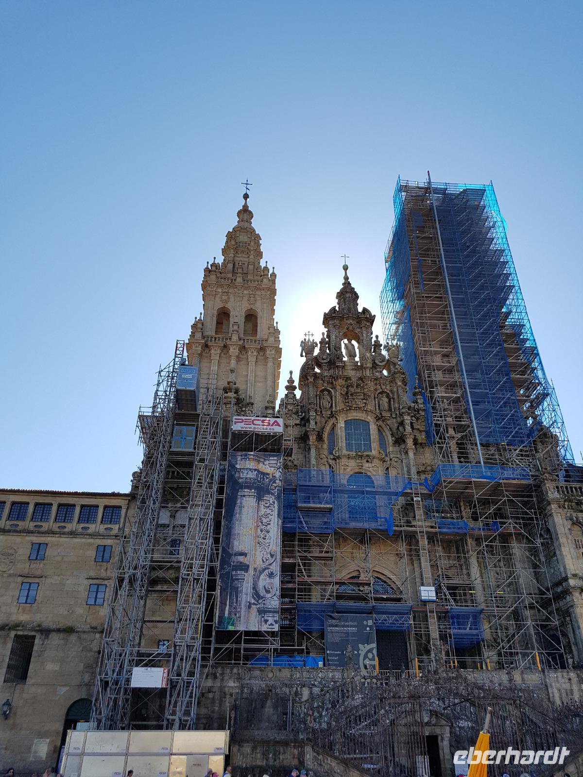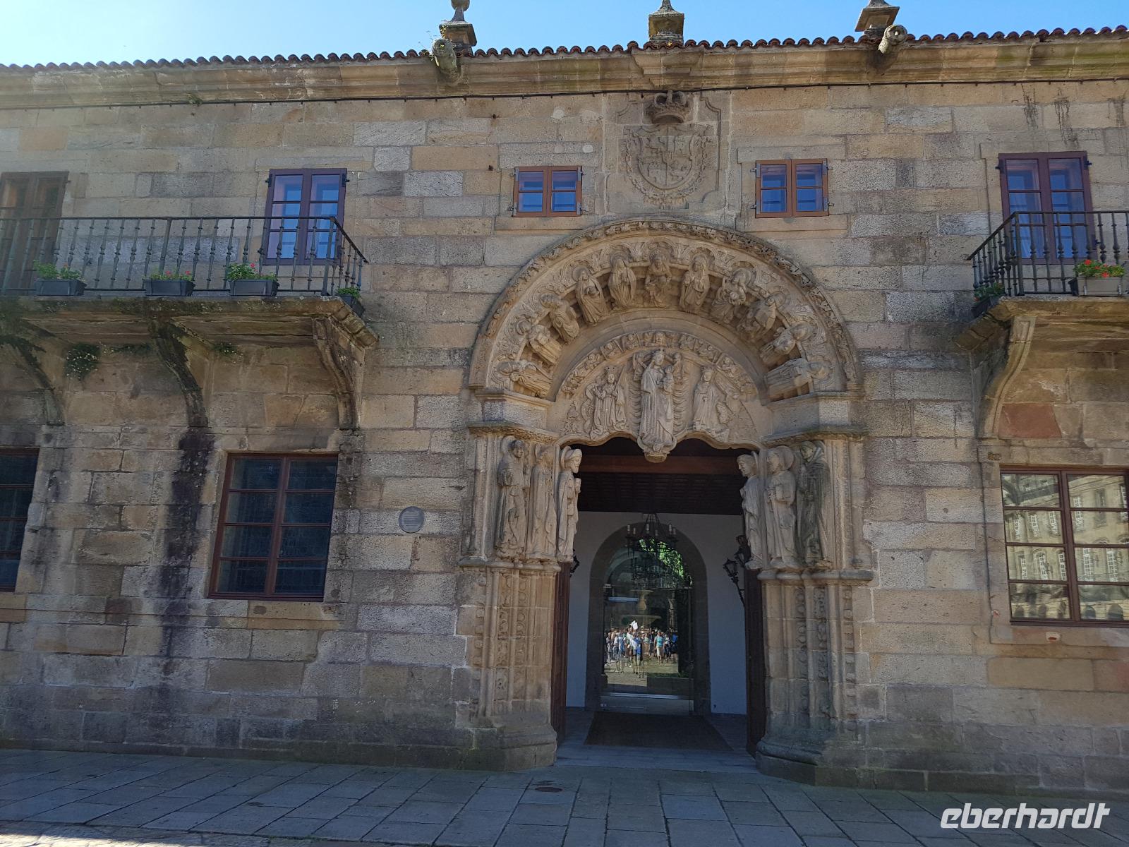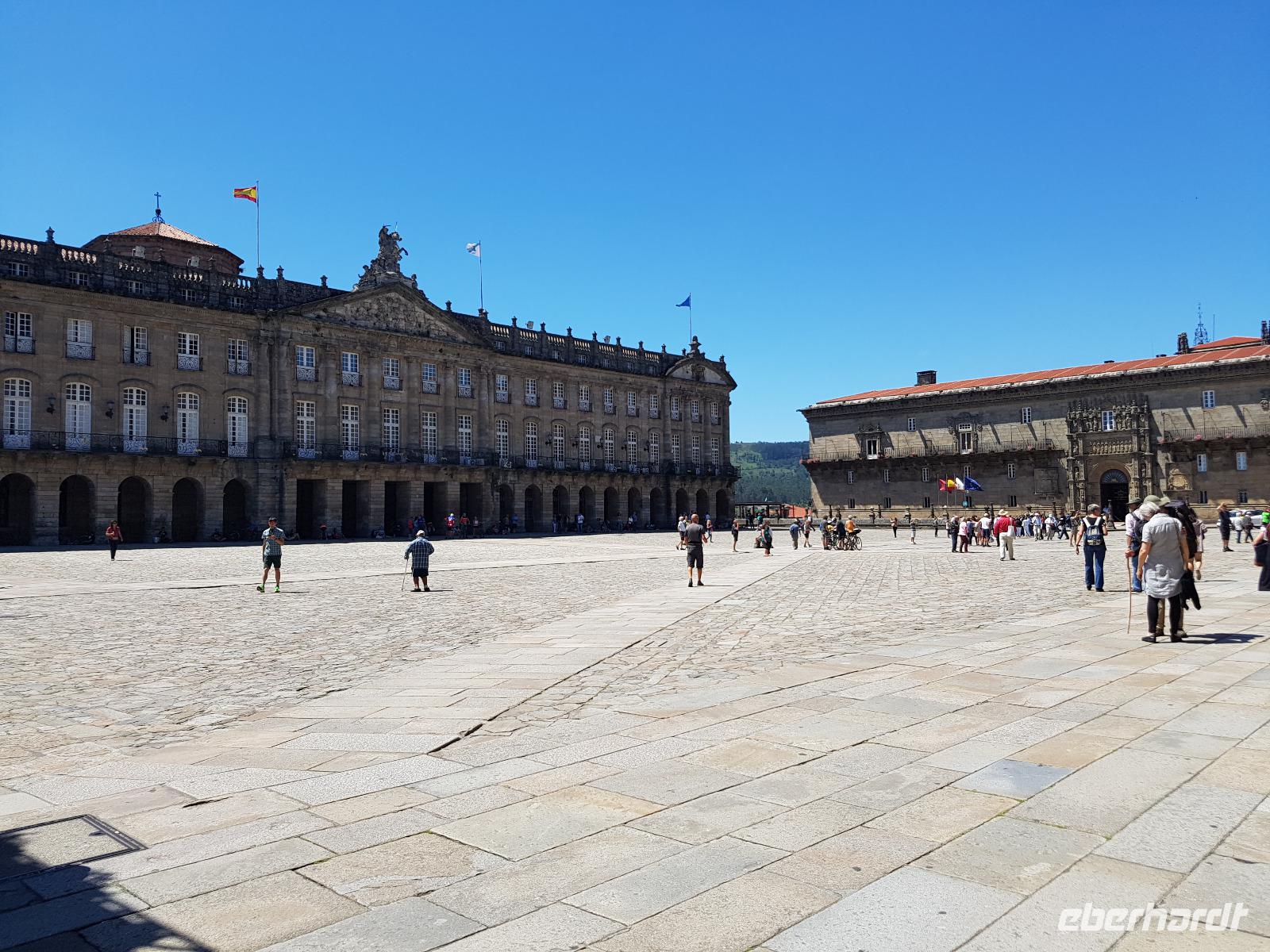 Heute entschieden wir uns alle diese letzten 5 Kilometer bis Santiago ohne reden zu wandern. Wir befinden uns hier vor den Toren von dem weltbekannten Wallfahrtsort Santiago de Compostela und Hauptstadt der Provinz Galicien. Wir wanderten heute das berühmte letzte Stück des Jakobswegs von Monte do Gozo von wo man die Türme von der Kathedrale sieht bis Santiago de Compostela. Unsere Seele freut sich schon darauf! Auf dem Weg sahen wir die Türme der Kathedrale schon von weitem und kamen wie schon im Mittelalter in der Stadt an, um traditionell den Apostel in der Kathedrale zu umarmen. Wir haben unser Ziel erreicht und hörten schon die Glocken der Kathedrale. Wir besichtigten die Kathedrale und umarmten den Apostel laut der Tradition und die Meistens von uns blieben um 12 Uhr da um die Pilgermesse zu hören. Man hat weinend zugehört und Tränen gesehen, aber alle voller Freude und Zufriedenheit. Was für eine Ruhe hier. Später bei einer Stadtbesichtigung erkundeten wir auch die Altstadt von Santiago de Compostela, die neben der Kathedrale und dem Jakobsweg natürlich auch zum Weltkulturerbe der UNESCO gehört. Am Obradoiro Platz gegenüber der prächtigen Fassade der Kathedrale machten wir die Gruppenbilder.