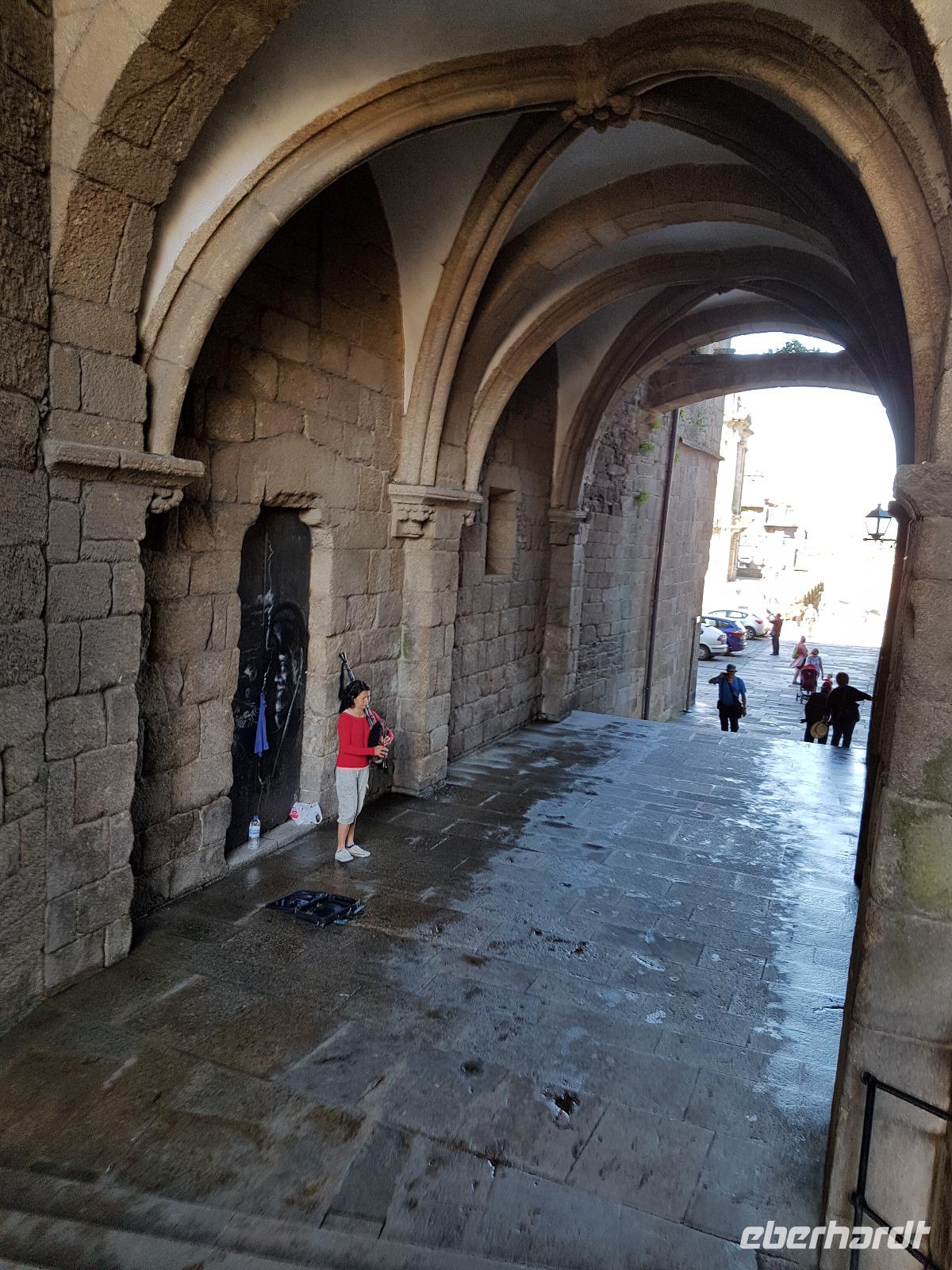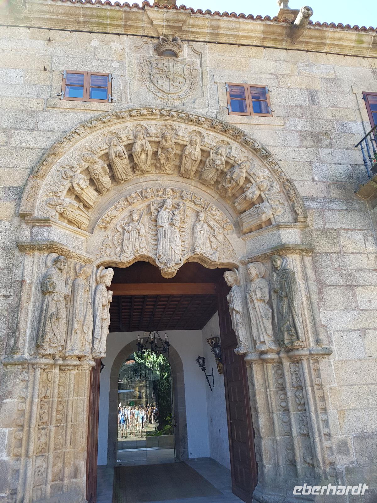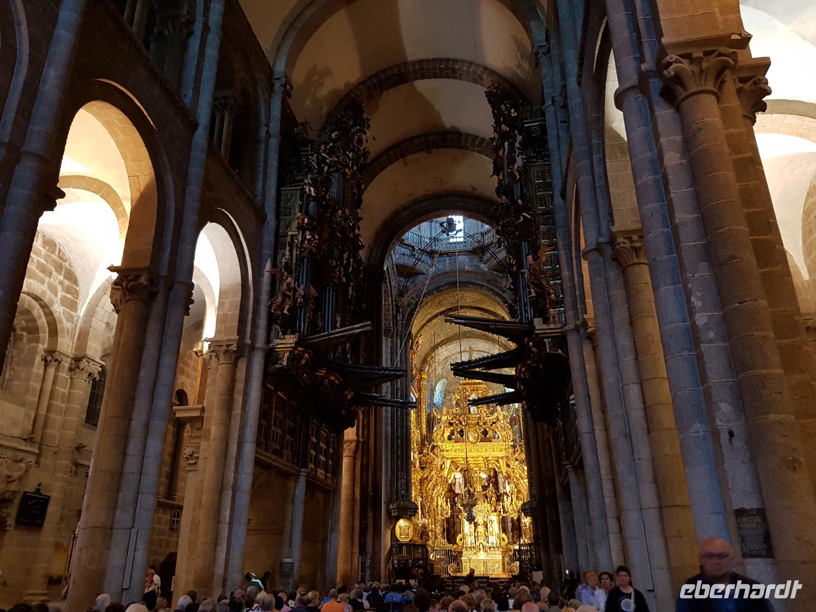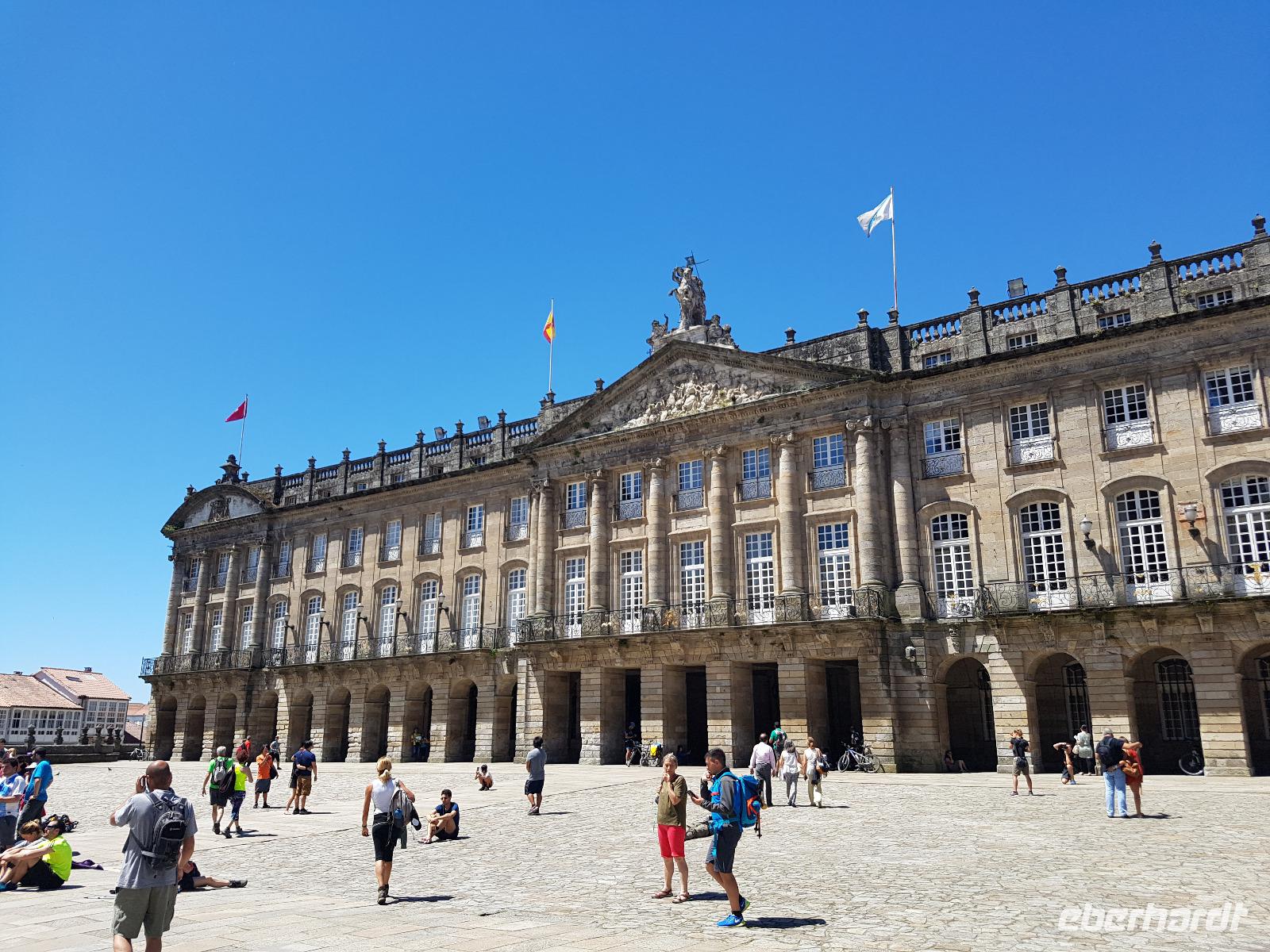 Heute entschieden wir uns alle diese letzten 5 Kilometer bis Santiago ohne reden zu wandern. Wir befinden uns hier vor den Toren von dem weltbekannten Wallfahrtsort Santiago de Compostela und Hauptstadt der Provinz Galicien. Wir wanderten heute das berühmte letzte Stück des Jakobswegs von Monte do Gozo von wo man die Türme von der Kathedrale sieht bis Santiago de Compostela. Unsere Seele freut sich schon darauf! Auf dem Weg sahen wir die Türme der Kathedrale schon von weitem und kamen wie schon im Mittelalter in der Stadt an, um traditionell den Apostel in der Kathedrale zu umarmen. Wir haben unser Ziel erreicht und hörten schon die Glocken der Kathedrale. Wir besichtigten die Kathedrale und umarmten den Apostel laut der Tradition und die Meistens von uns blieben um 12 Uhr da um die Pilgermesse zu hören. Man hat weinend zugehört und Tränen gesehen, aber alle voller Freude und Zufriedenheit. Was für eine Ruhe hier. Später bei einer Stadtbesichtigung erkundeten wir auch die Altstadt von Santiago de Compostela, die neben der Kathedrale und dem Jakobsweg natürlich auch zum Weltkulturerbe der UNESCO gehört. Am Obradoiro Platz gegenüber der prächtigen Fassade der Kathedrale machten wir die Gruppenbilder.