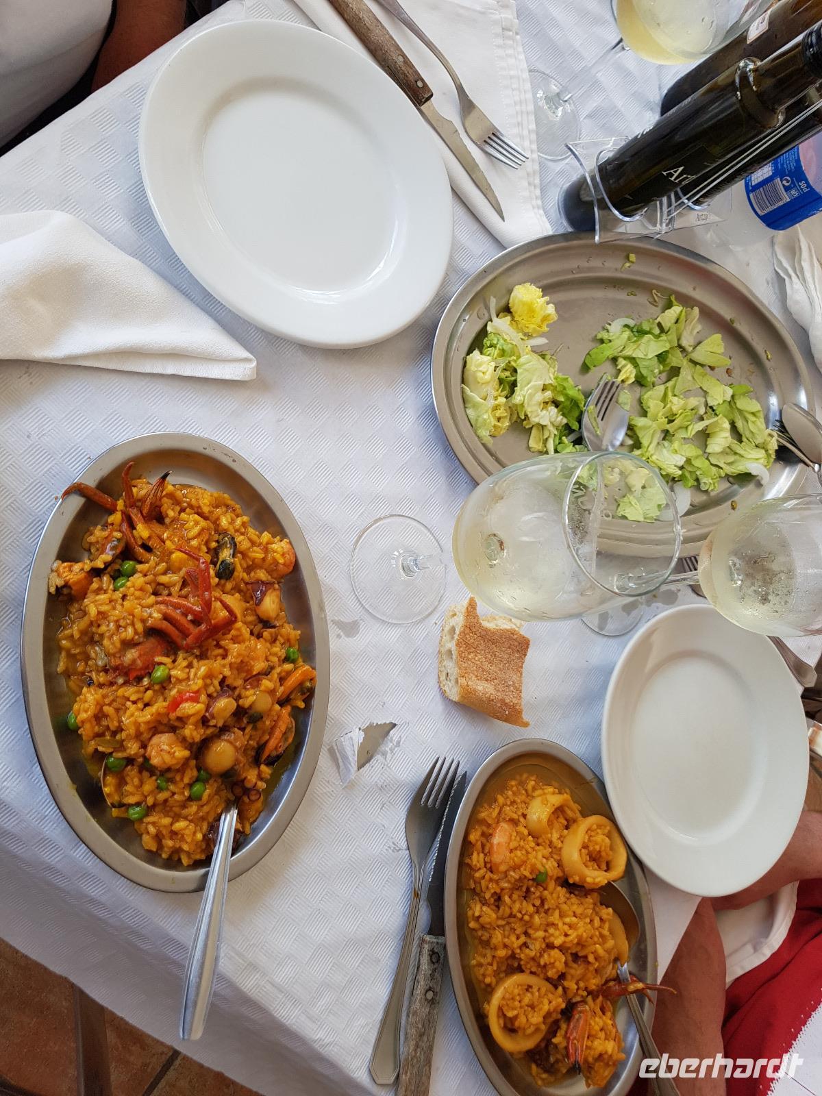Heute wollte der Großteil der Gruppe den fakultativen Tagesausflug mit Wanderung auf der Insel Ons im Nationalpark Illas Atlanticas mitmachen. Zwei Gäste von uns entschieden sich lieber die Annehmlichkeiten des Hotels zu genießen, um ihre Füße am Strand zu entspannen. Es war einfach toll diese neue Insel zu entdecken. Mit der Fähre "Piraten von Nabia" fuhren wir 30 Minuten vom Hafen Bueu auf die kleine Naturpark-Insel Ons im Atlantik über. Sie gehört neben einigen anderen Inseln wie zum Beispiel Cies zum ältesten Nationalpark Galiciens. Der atlantische Nationalpark Illas Atlanticas beherbergt an Land ein reichhaltiges Ökosystem und das Wasser mit Dünen, Riffen, Felsenküsten und Wäldern umfasst über 8.000 Hektar. Bekannt ist die Insel Ons beispielsweise als Vogelreservat mit Cormoranen, Reihern und Möwen. Wir teilten uns hier in zwei Gruppen auf und unternahmen zwei verschiedene kleine Wanderungen auf der Insel. Uns gefällt es hier sehr die Vogelwelt stundenlang zu beobachten und später vor dem Mittagsessen einfach am Strand entlang zu spazieren. Das Meer war herrlich;) Die Farbe vom Wasser war traumhaft. In einem Restaurant organisierte Benjamin ein leckeres Essen mit Reis typisch von hier, eine Art Paella mit frischen Fisch -und Meeresfrüchten. Lecker! Am Nachmittag verließen wir mit der Fähre dieses kleine Paradies und kehrten nach Poio auf das Festland von Nord-Spanien zurück. Noch vor unserem letzten Abendessen gingen viele von uns an dem wunderschönen weißen Sandstrand gegenüber dem Hotel und andere trafen sich auf der Terrasse vom Hotel mit anderen Gästen auf ein Plauderstündchen bei Kaffee und Kuchen. Bei unserem letzten gemeinsamen Abendessen ließen wir unsere erlebnisreiche Rundreise in Spanien gemütlich ausklingen.
