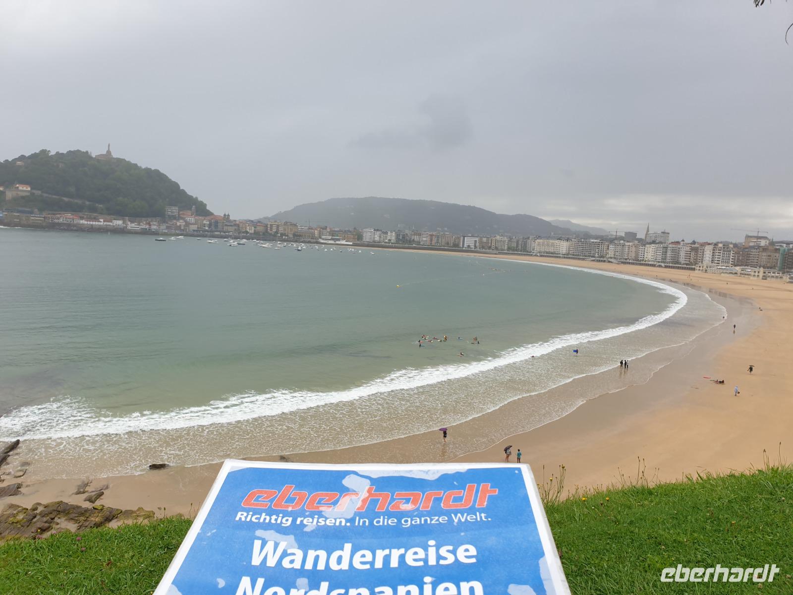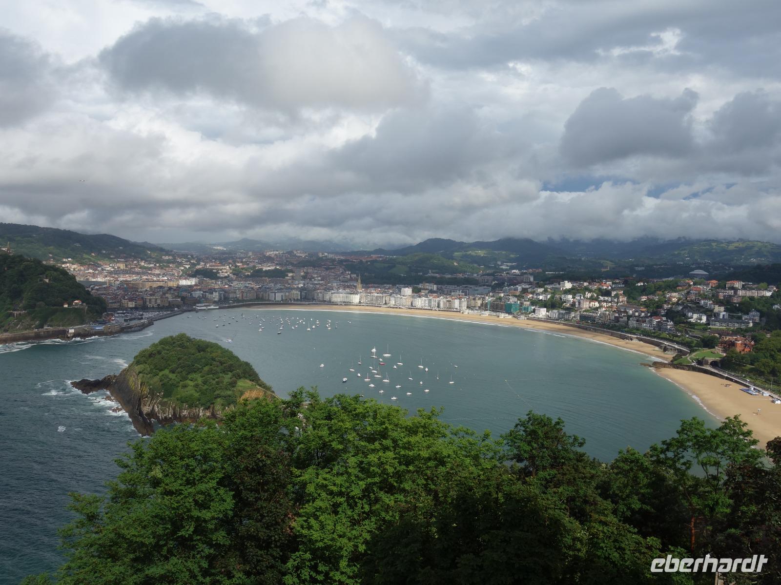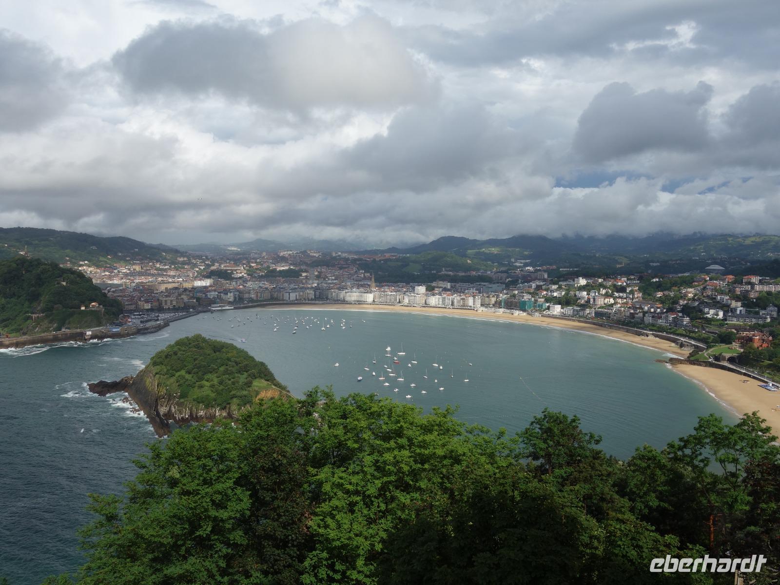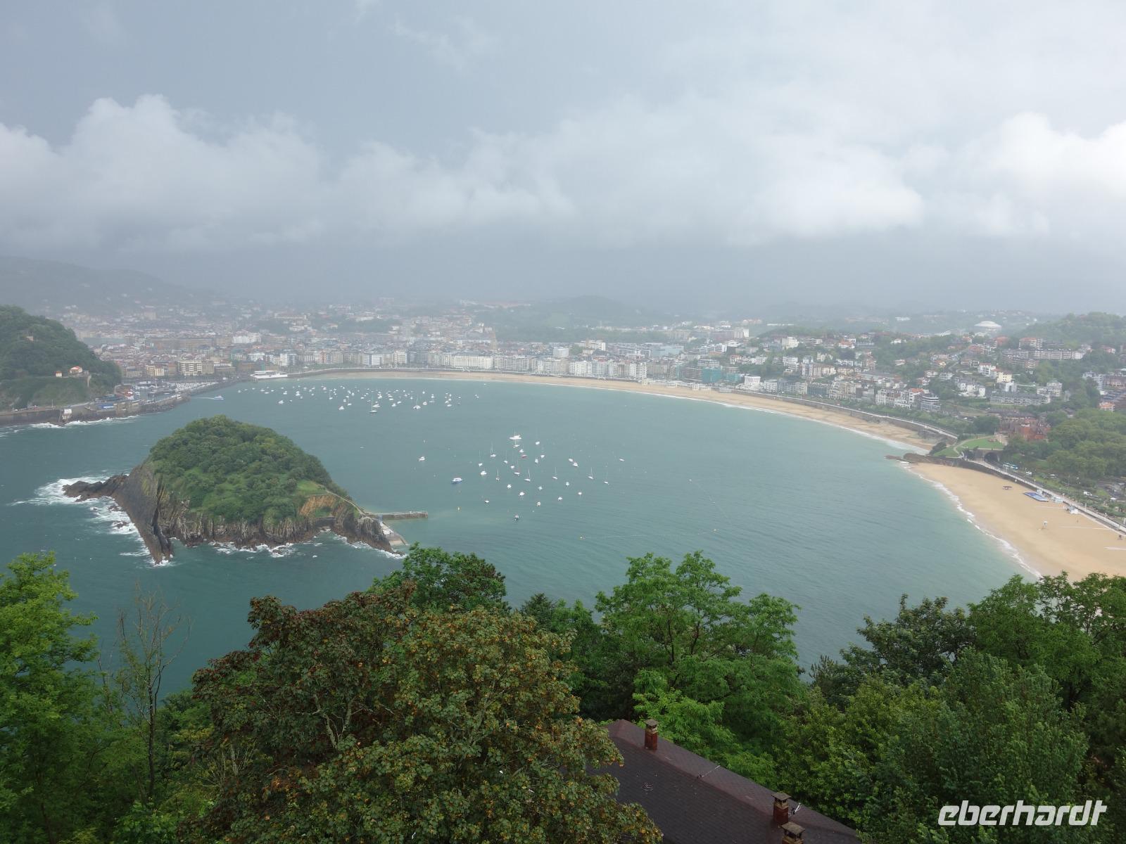 Immer an der Küste entlang fahren wir weiter mit dem Bus weiter an Zarautz vorbei, wo der berühmte spanische Chefkoch, Karlos Arguiñano, sein Restaurant direkt am Strand hat. Hier sieht man am Strand die Surfer, wie sie auf den Wellen reiten. Anschließend fahren wir nach San Sebastian, eine der schönsten Städte im äußersten Norden der iberischen Halbinsel. Diese Perle liegt in einer traumhaften Bucht im Baskenland. Wir hatten bis jetzt Glück mit dem Wetter. Es hat gedonnert, gegossen, geblitzt und gehagelt sogar aber immer als wir im Bus waren und hatten sonne in den Fotos.