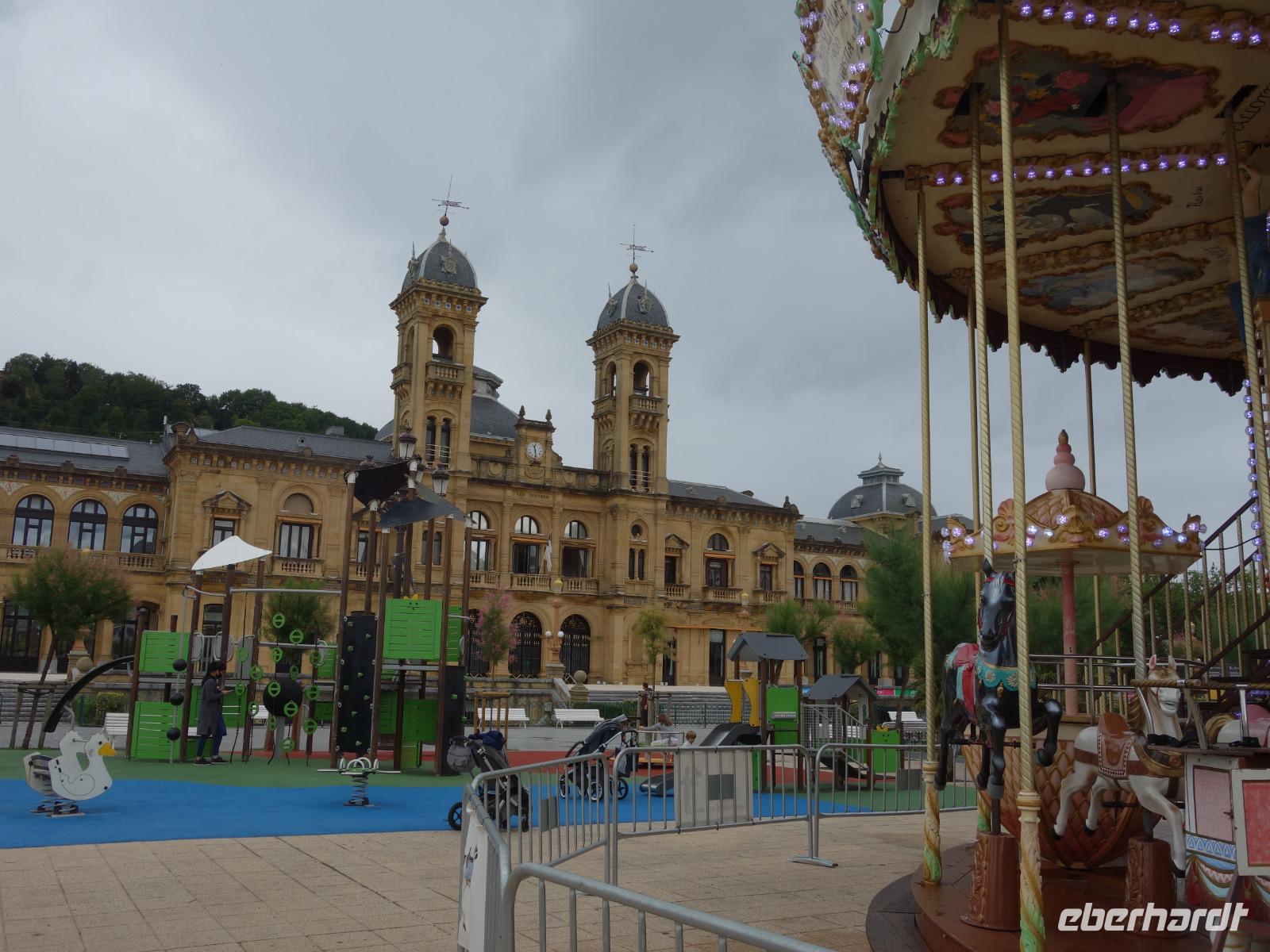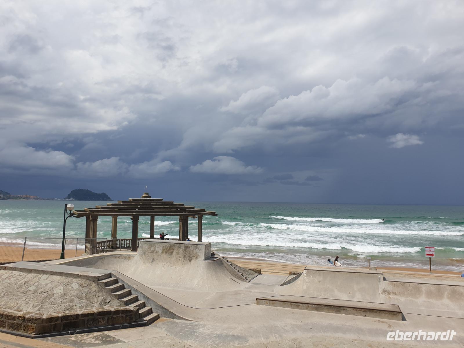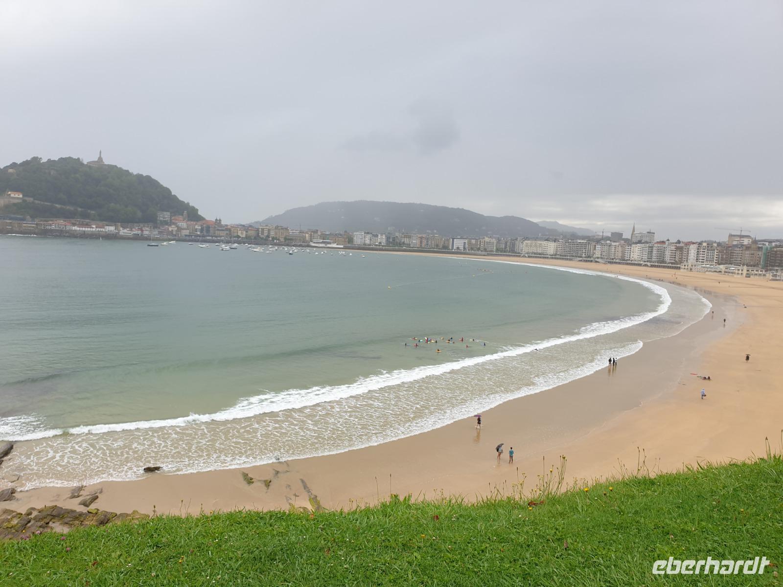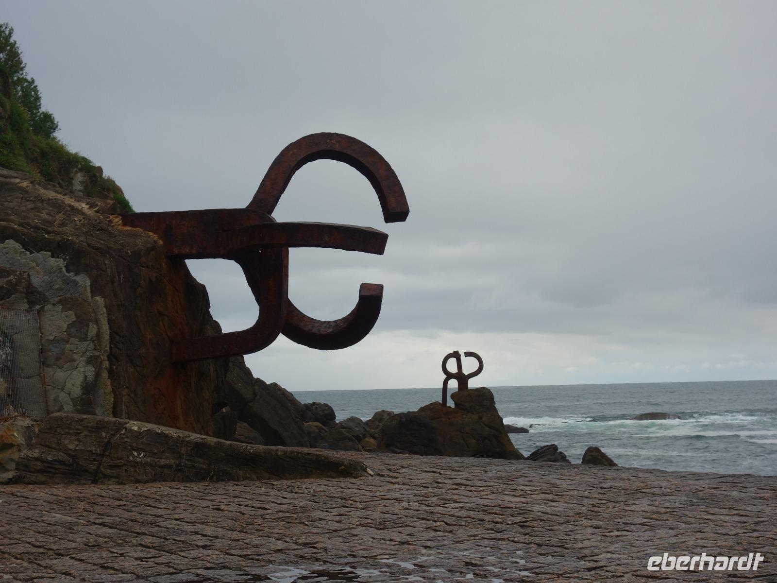 Immer an der Küste entlang fahren wir weiter mit dem Bus weiter an Zarautz vorbei, wo der berühmte spanische Chefkoch, Karlos Arguiñano, sein Restaurant direkt am Strand hat. Hier sieht man am Strand die Surfer, wie sie auf den Wellen reiten. Anschließend fahren wir nach San Sebastian, eine der schönsten Städte im äußersten Norden der iberischen Halbinsel. Diese Perle liegt in einer traumhaften Bucht im Baskenland. Wir hatten bis jetzt Glück mit dem Wetter. Es hat gedonnert, gegossen, geblitzt und gehagelt sogar aber immer als wir im Bus waren und hatten sonne in den Fotos.