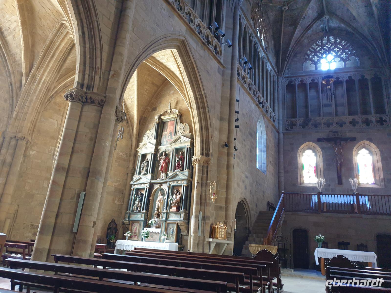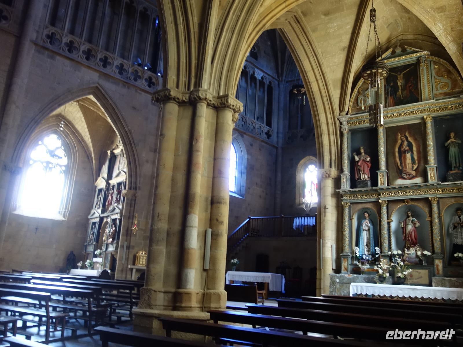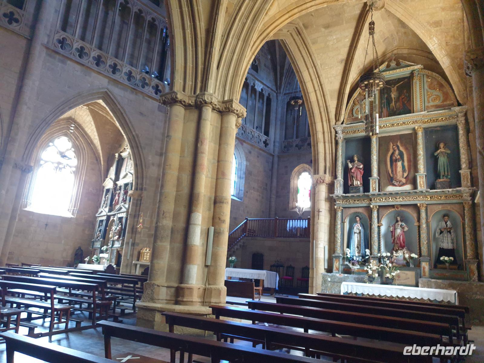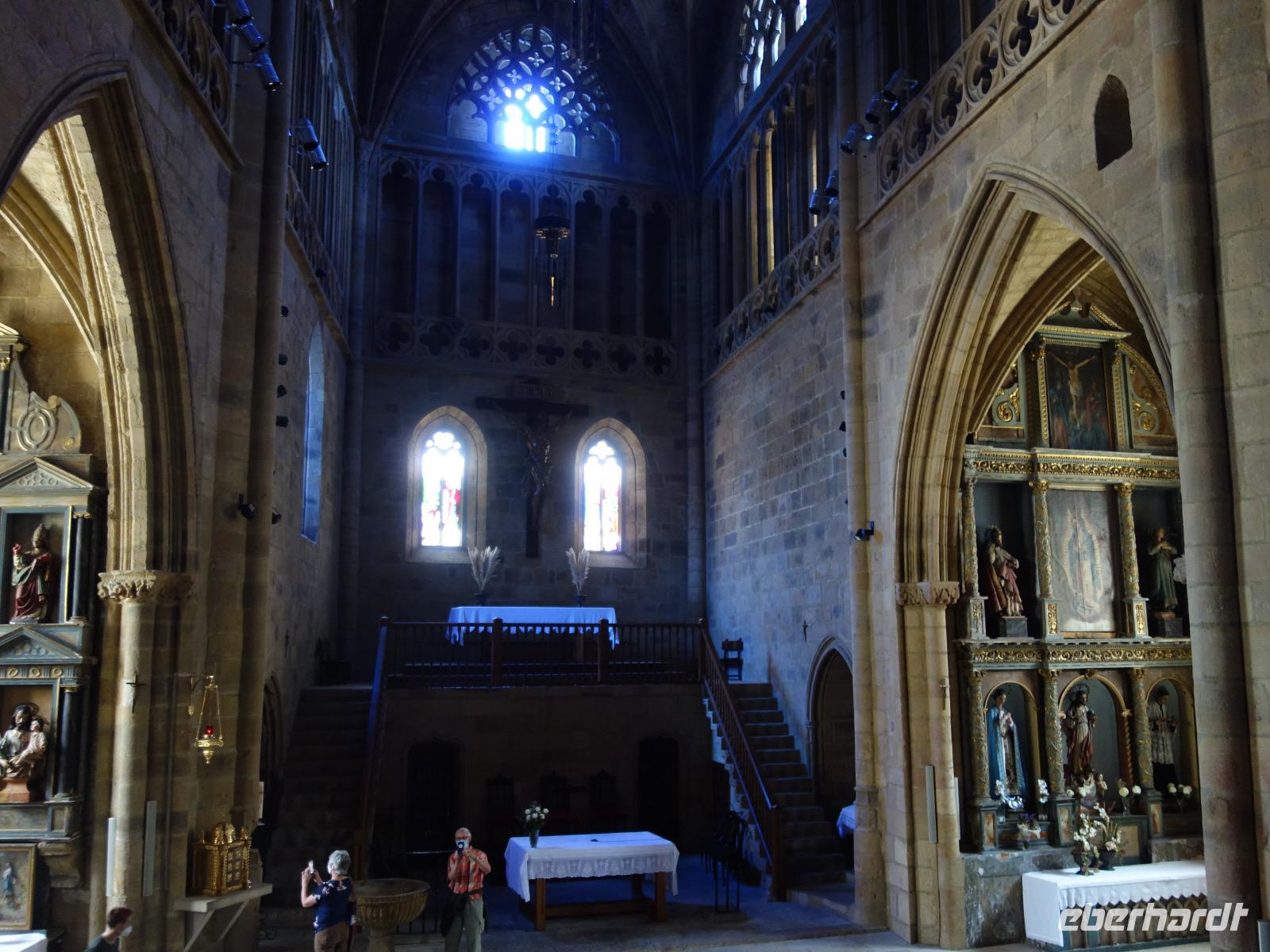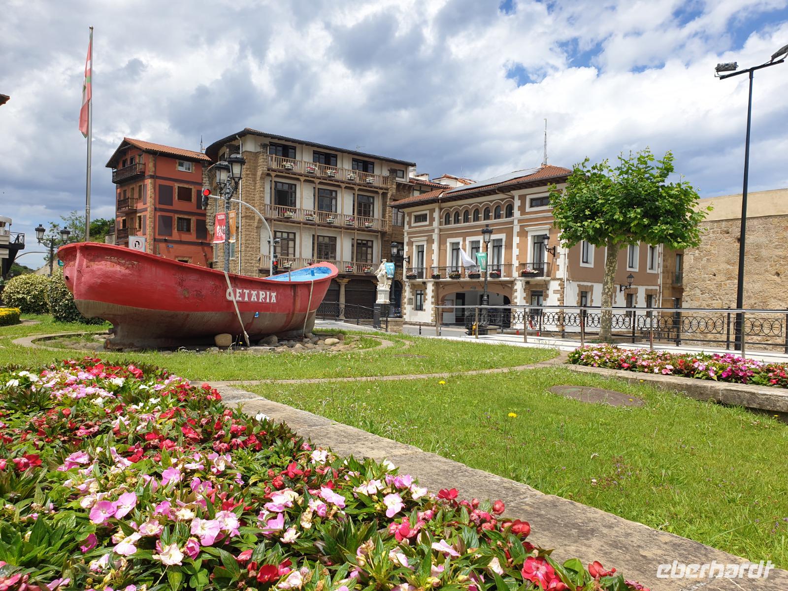 Bevor wir nach San Sebastian zu unserem 3 Sterne Hotel Codina fahren, haben wir noch die paar Überraschungen der Reise: Panoramafahrt an der Küste, Getaria und Monte Igueldo Hügel mit Freizeitpark. Alejandro führt uns an der Küste entlang erst einmal nach Getaria ans Meer, wo sich eine der schönsten kleinen Kirchen Spaniens befindet. Die Kirche von San Savaldor auf einem Hügel gebaut. Zumindest für mich. hier in dieser tollen, alten Kirche von San Salvador singt Benjamin ein paar Lieder für die Gruppe, da hier die Akustik einfach top ist. Hier treffen wir schon die ersten Jakobswegpilgerer, die auf ihrem Weg nach Santiago de Compostela sind, genau wie wir. Auf einer Terrasse oben am Hafen lädt Eberhardt Travel zum Txacoli Wein ein. Es handelt sich um einen typischen Weißwein aus der Baskenland Region. Wir stoßen gemeinsam auf die Reise an. Wir hatten Glück mit dem Wetter muss man auch dazu sagen, oder?