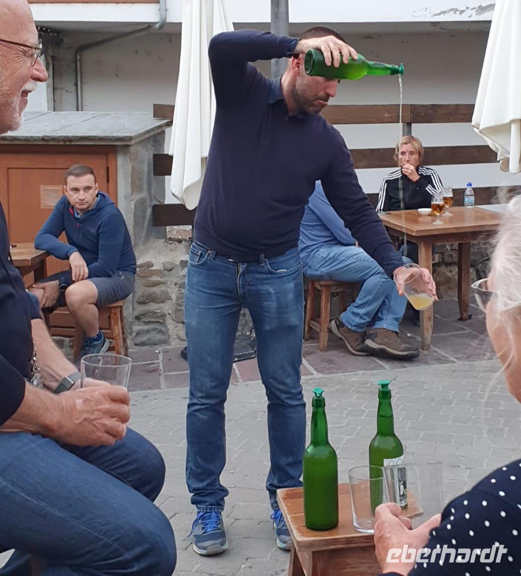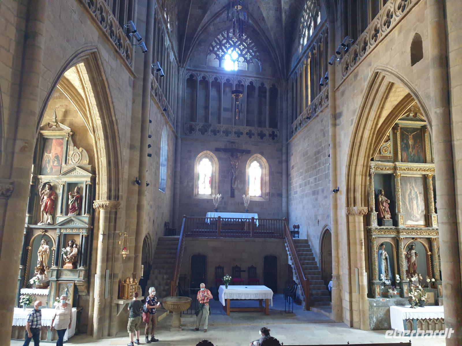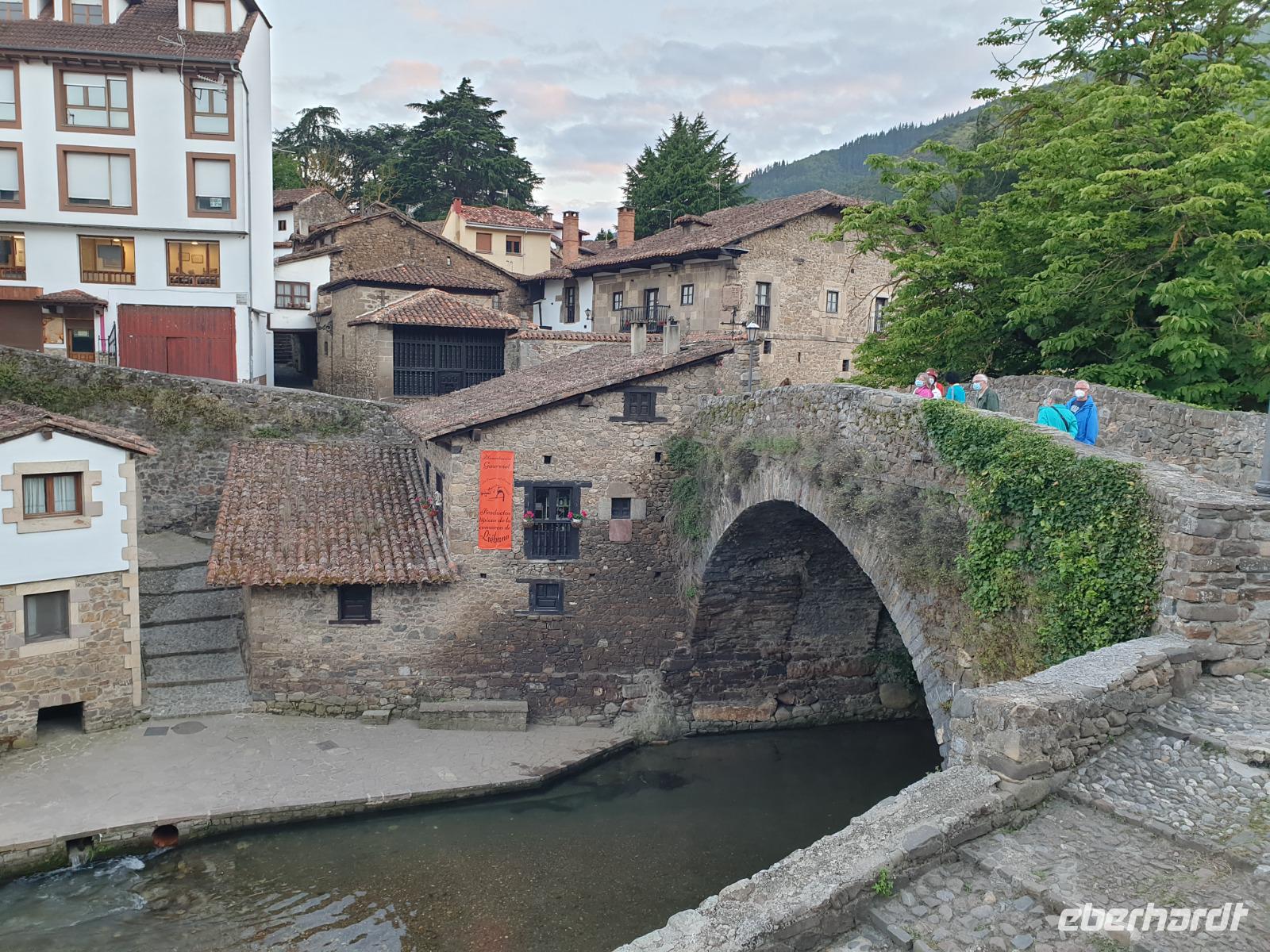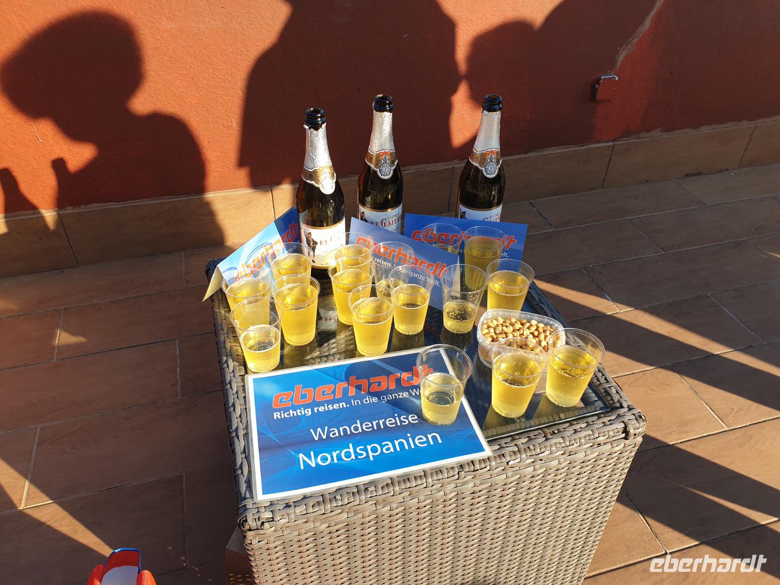 Am Nachmittag beenden wir die Wanderung nicht an der Seilbahnstation, sondern in Espinama. Bevor wir in den Bus steigen, trinken wir noch eine Erfrischung oder genießen ein Eis und verabschieden uns von Oscar. Auf dem Weg zum Hotel machen wir noch einen kurzen Stopp am Kloster von Santo Toribio de Liebana, wo sich laut Legende ein Stück Holz vom Christus- Kreuz befindet. Benjamin erklärt uns die ganze Geschichte und diesmal wegen Corona können wir nicht das Kreuz küssen. In Potes, wo unser Hotel Valdecoro sich befindet, machen wir einen Spaziergang ins Zentrum wo wir unser Abendessen hatten und man später den berühmten Sidra aus Apfel trinken kann. Nach dem Essen gehen wir alle durch das schönes Dorf Potes und trinkt 3 Flaschen dieses leckeren Apfelweins oder Sidra.