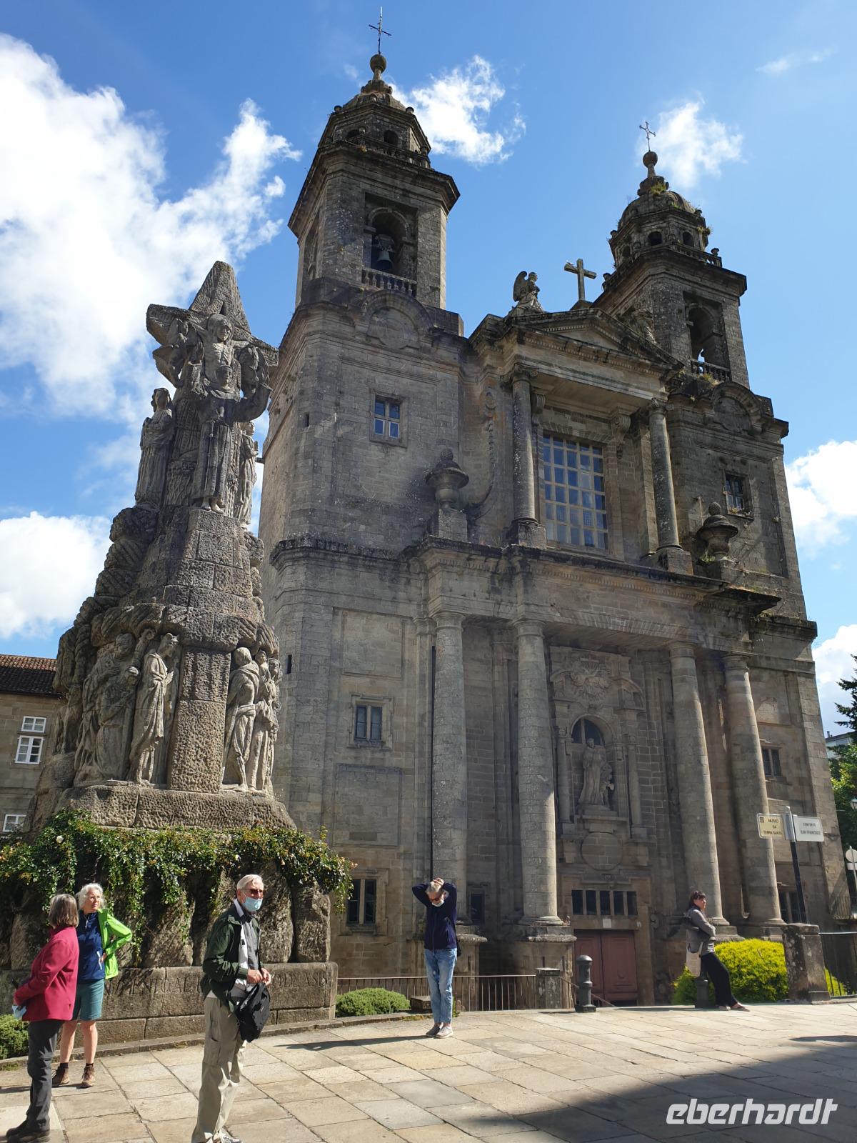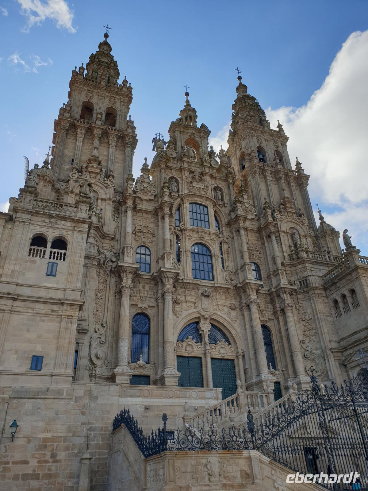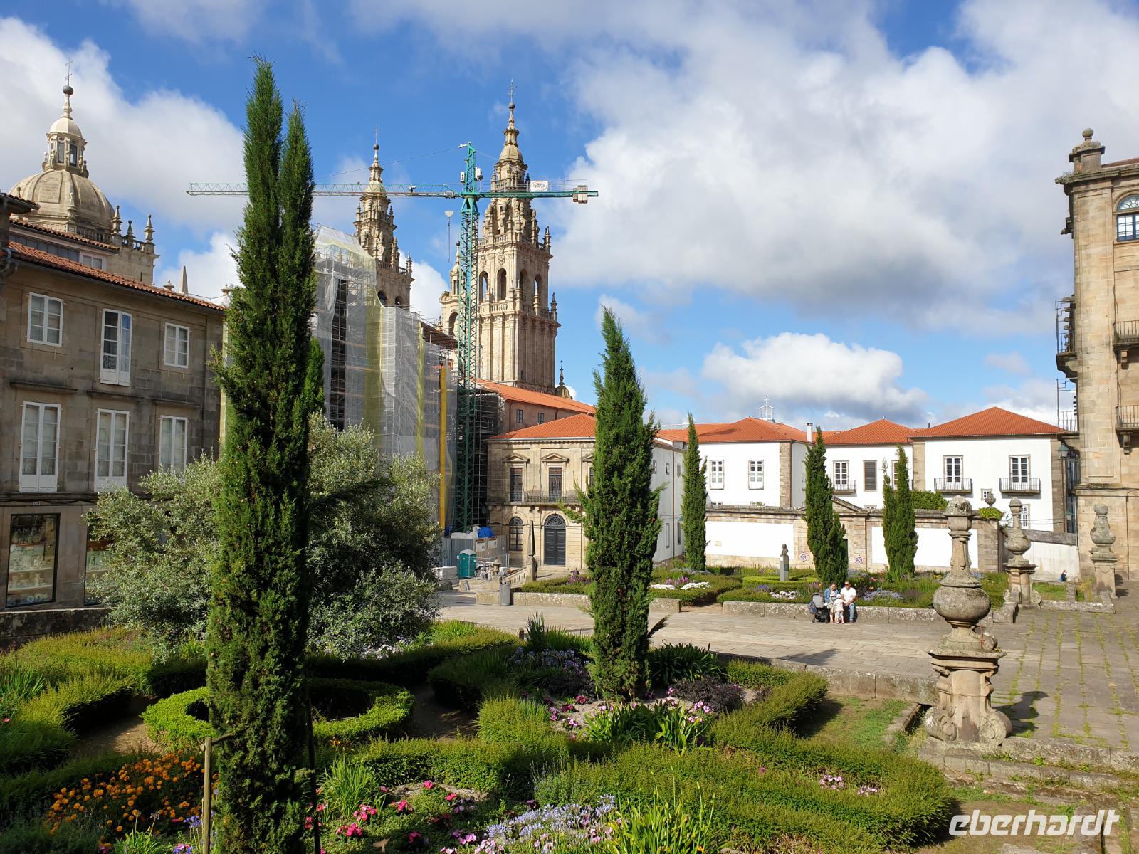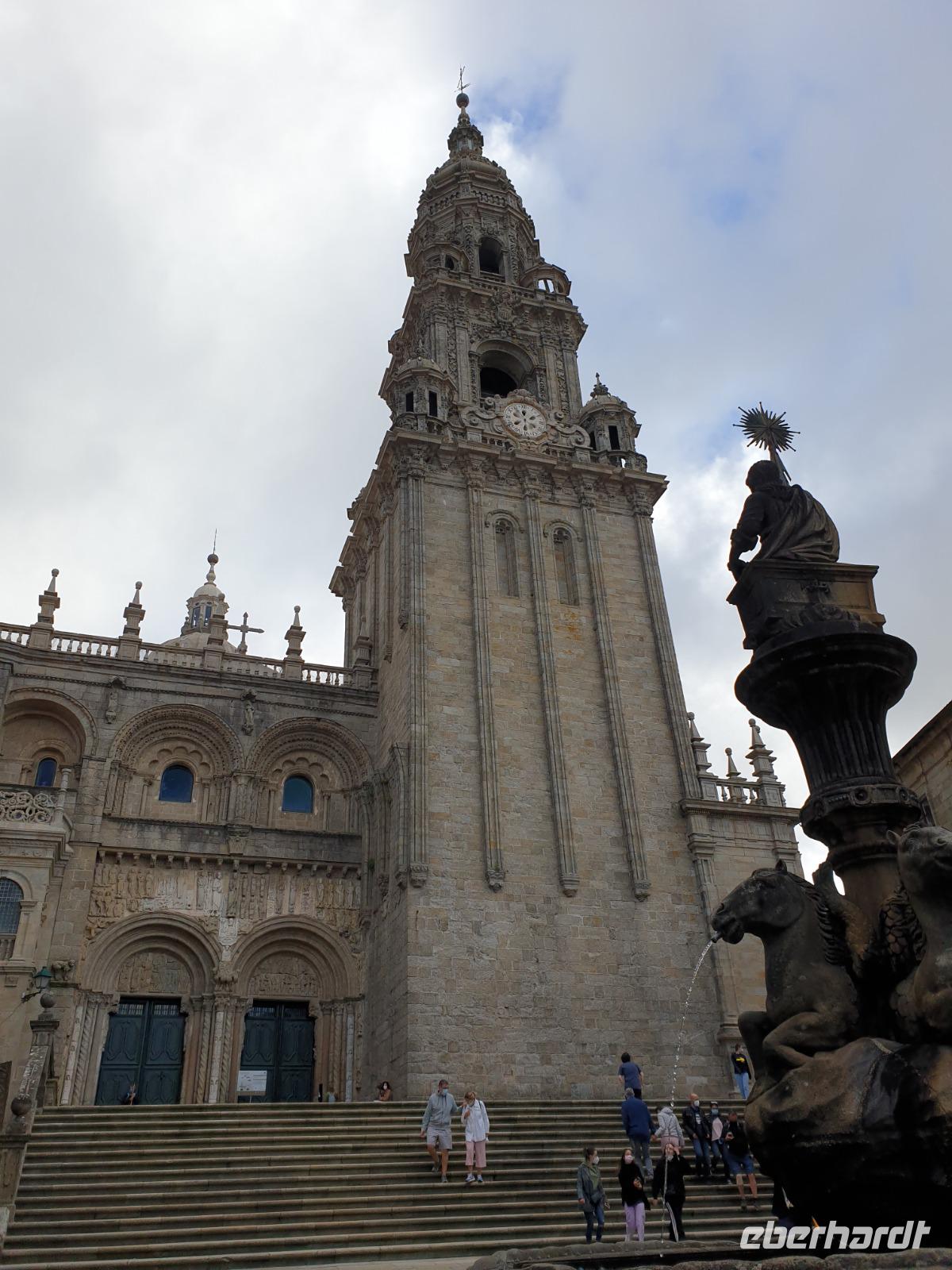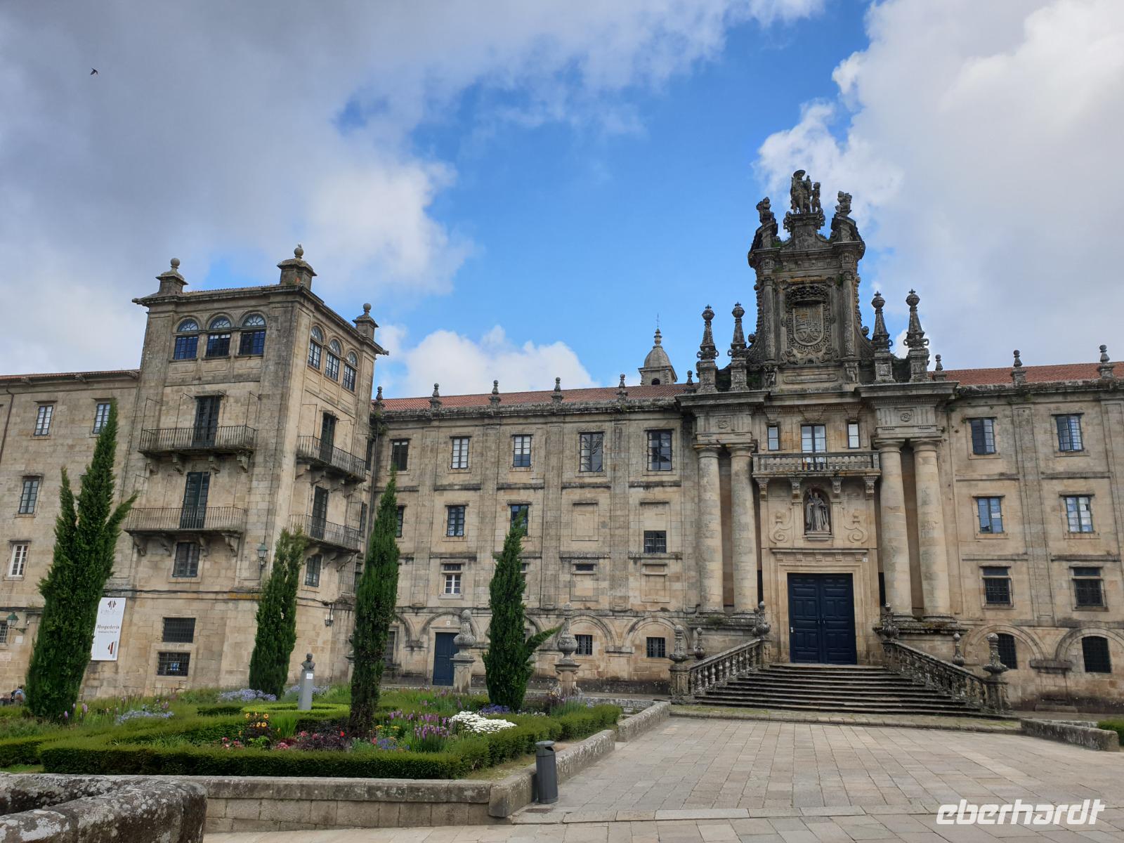 Wir haben unser Ziel erreicht und hören schon die Glocken läuten. 12 Uhr hören wir der Pilgermesse zu. Heute ist die Pilgermesse wegen Corona auf weniger als 300 Plätze drinnen beschränkt. Wir besichtigen auch San Francisco Kirche. Nach mehr als 2 Jahre ist Baustelle in der Kathedrale schon fertig und können in alle Ruhe sie besichtigen. Wegen Corona kann man nicht wie immer dem Aposteln umarmen aber sein Grab kann man immer noch sehen. Was für eine Ruhe hier. Später bei einer Stadtbesichtigung erkunden wir weiter die Altstadt von Santiago de Compostela, die neben der Kathedrale und dem Jakobsweg natürlich auch zum Weltkulturerbe der UNESCO gehört. Eberhardt Travel bietet auch heute wieder eine Überraschung und besorgt für alle Gäste ein Glas Ribeiro Wein um zu feiern, dass man es bis hier her geschafft hat.