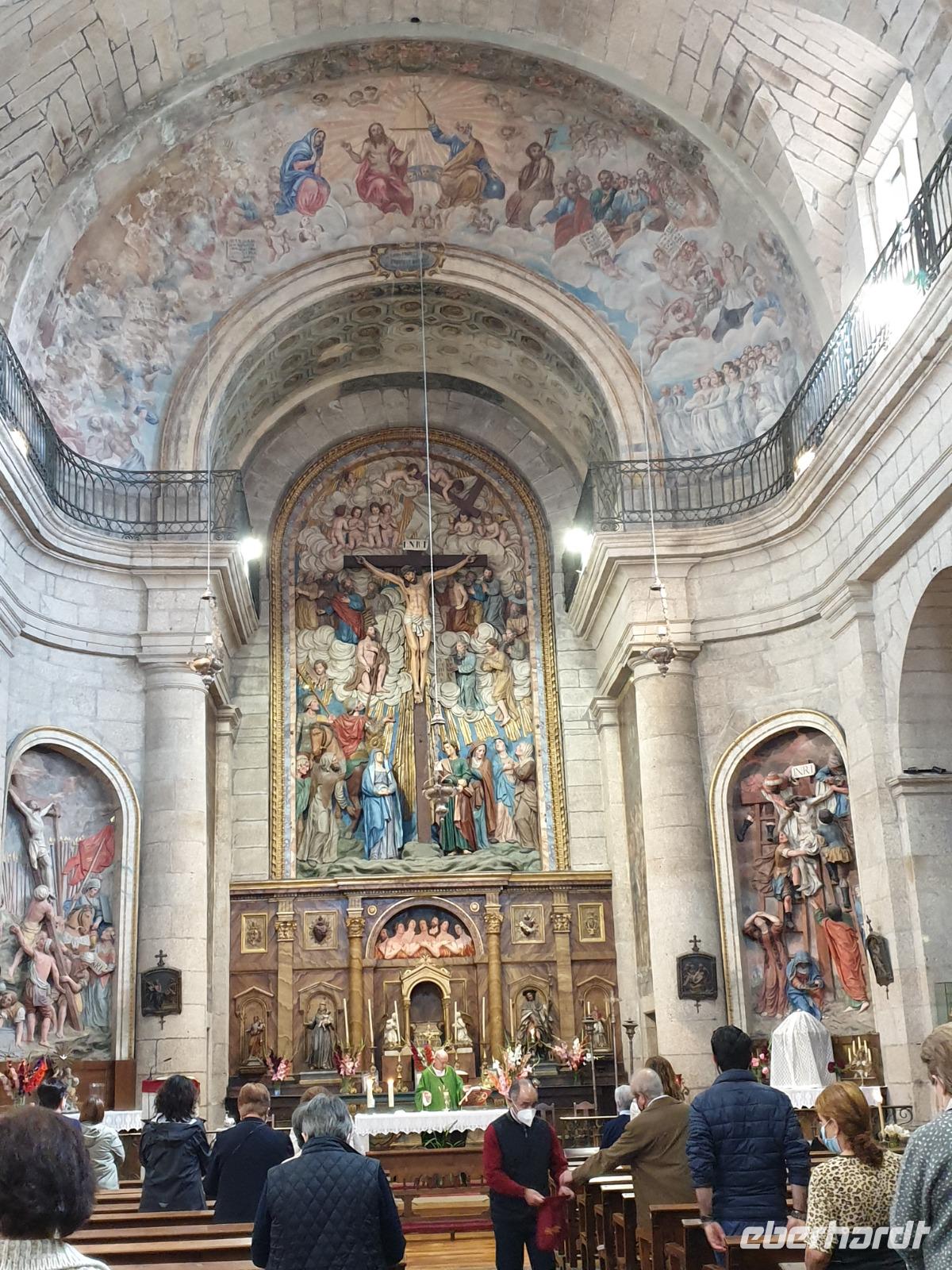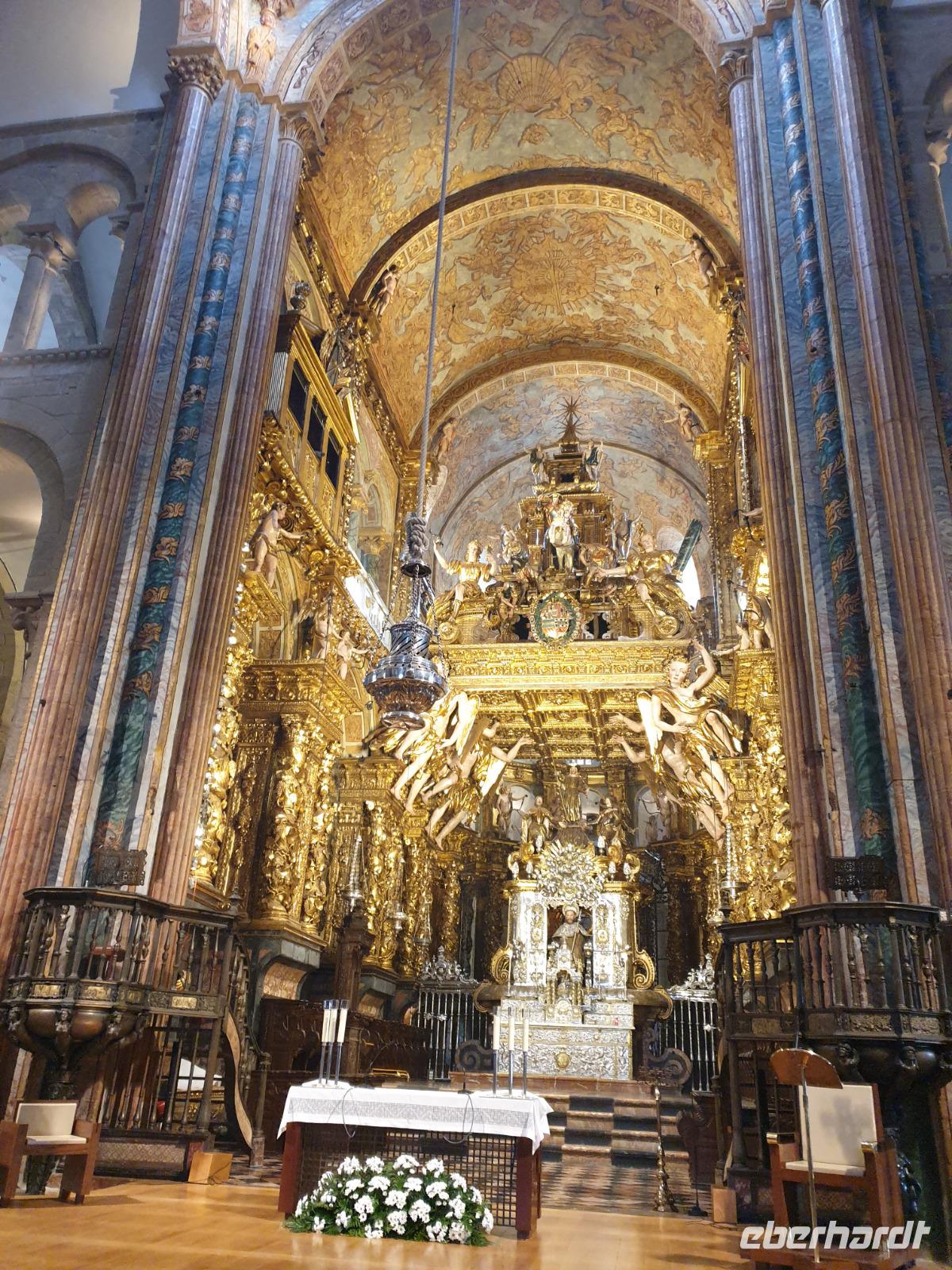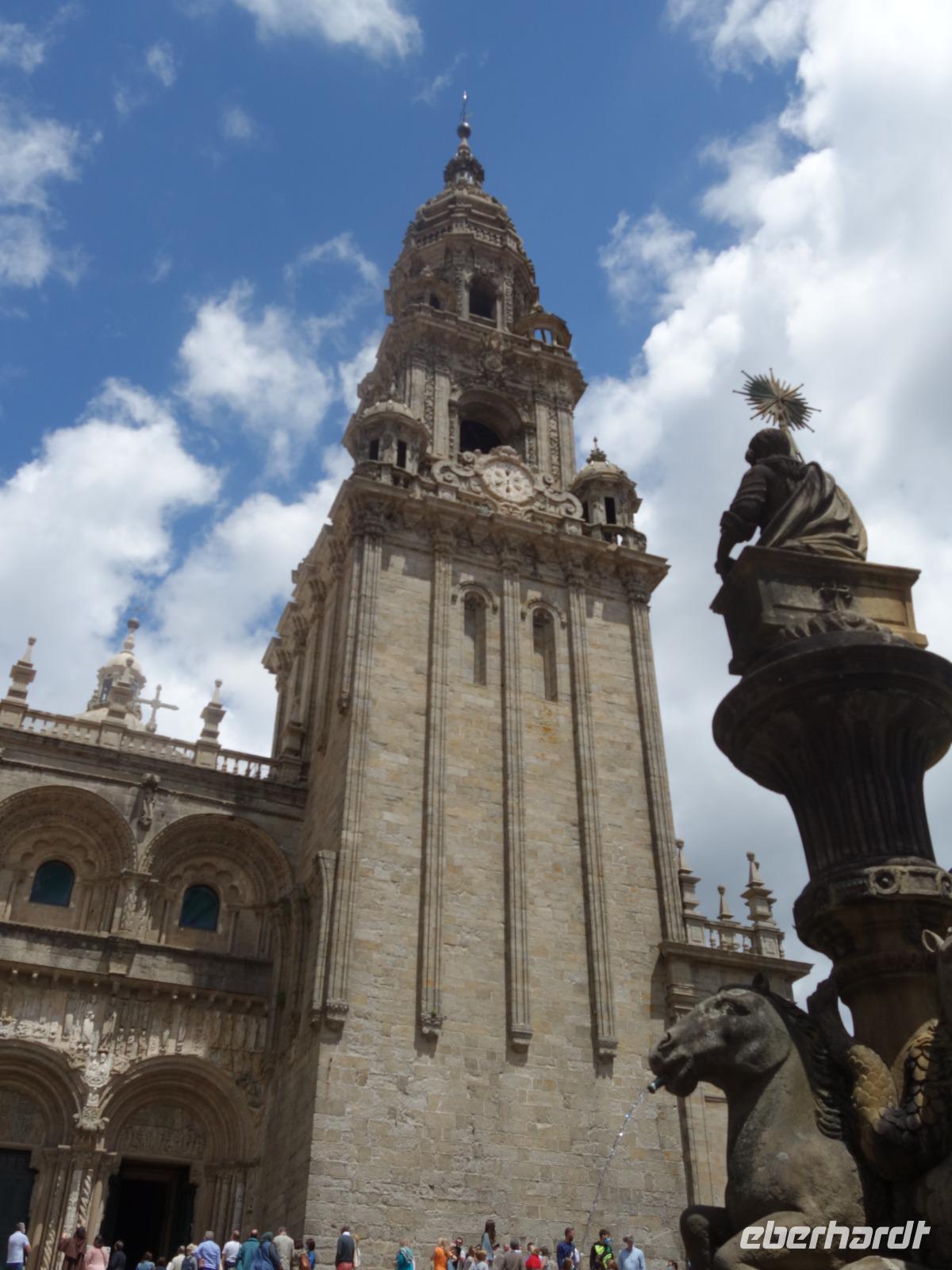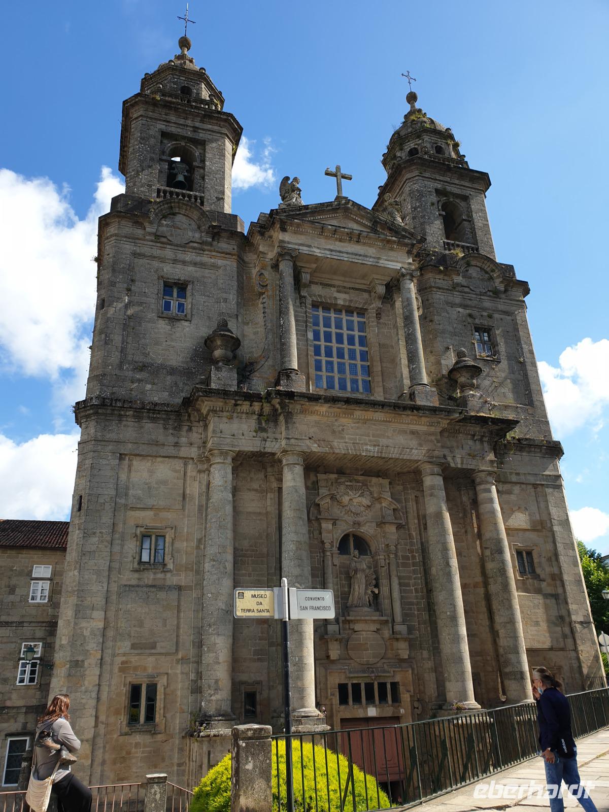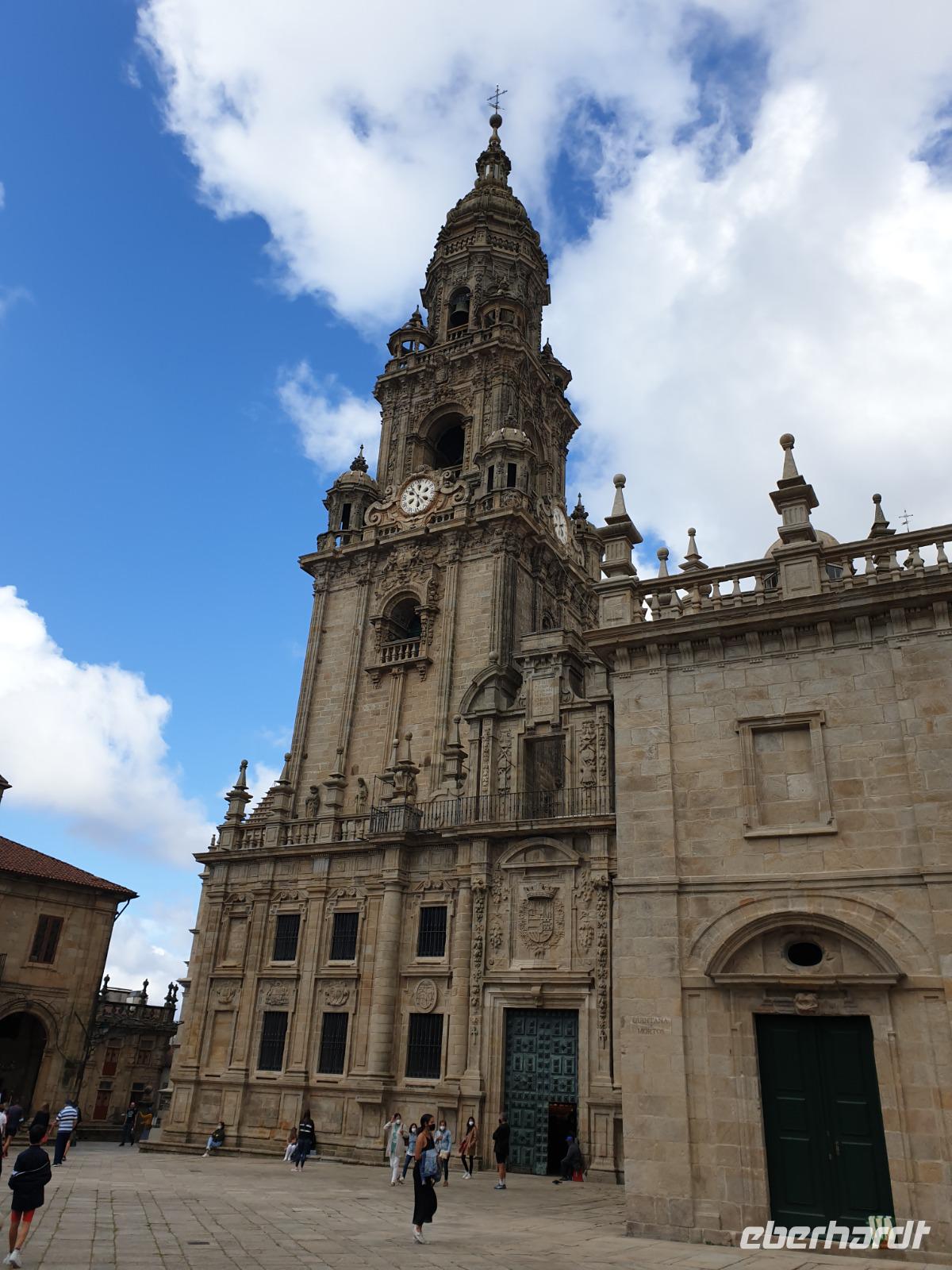Wir haben unser Ziel erreicht und hören schon die Glocken läuten. 12 Uhr hören wir der Pilgermesse zu. Heute ist die Pilgermesse wegen Corona auf weniger als 300 Plätze drinnen beschränkt. Wir besichtigen auch San Francisco Kirche. Nach mehr als 2 Jahre ist Baustelle in der Kathedrale schon fertig und können in alle Ruhe sie besichtigen. Wegen Corona kann man nicht wie immer dem Aposteln umarmen aber sein Grab kann man immer noch sehen. Was für eine Ruhe hier. Später bei einer Stadtbesichtigung erkunden wir weiter die Altstadt von Santiago de Compostela, die neben der Kathedrale und dem Jakobsweg natürlich auch zum Weltkulturerbe der UNESCO gehört. Eberhardt Travel bietet auch heute wieder eine Überraschung und besorgt für alle Gäste ein Glas Ribeiro Wein um zu feiern, dass man es bis hier her geschafft hat.