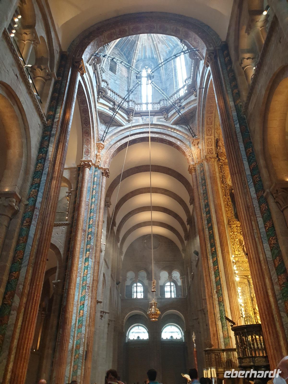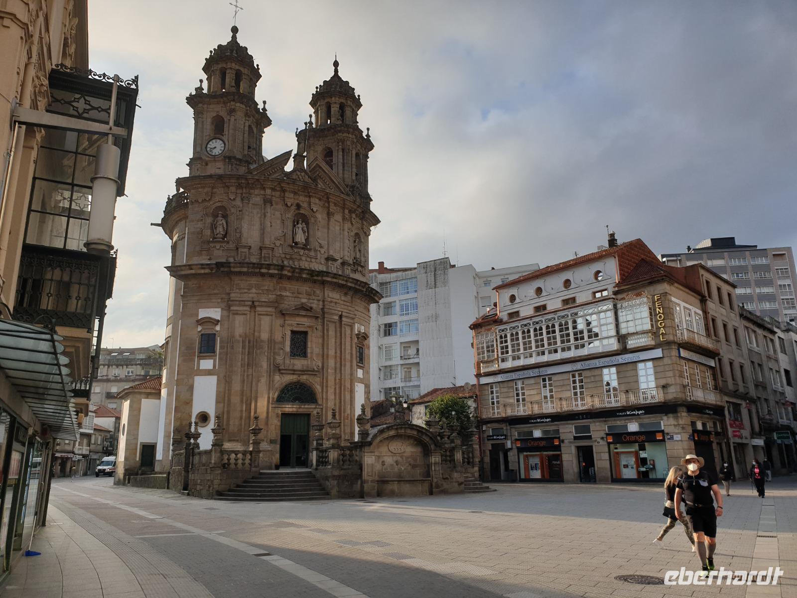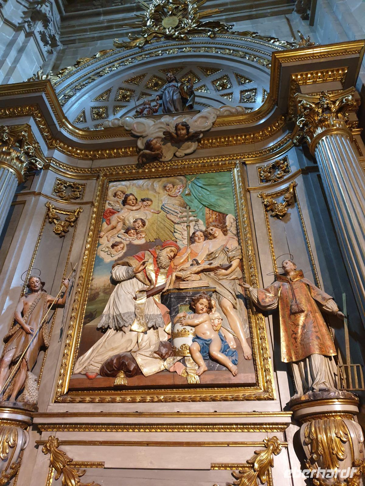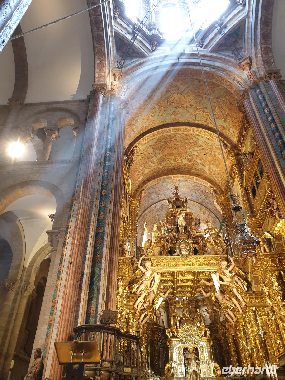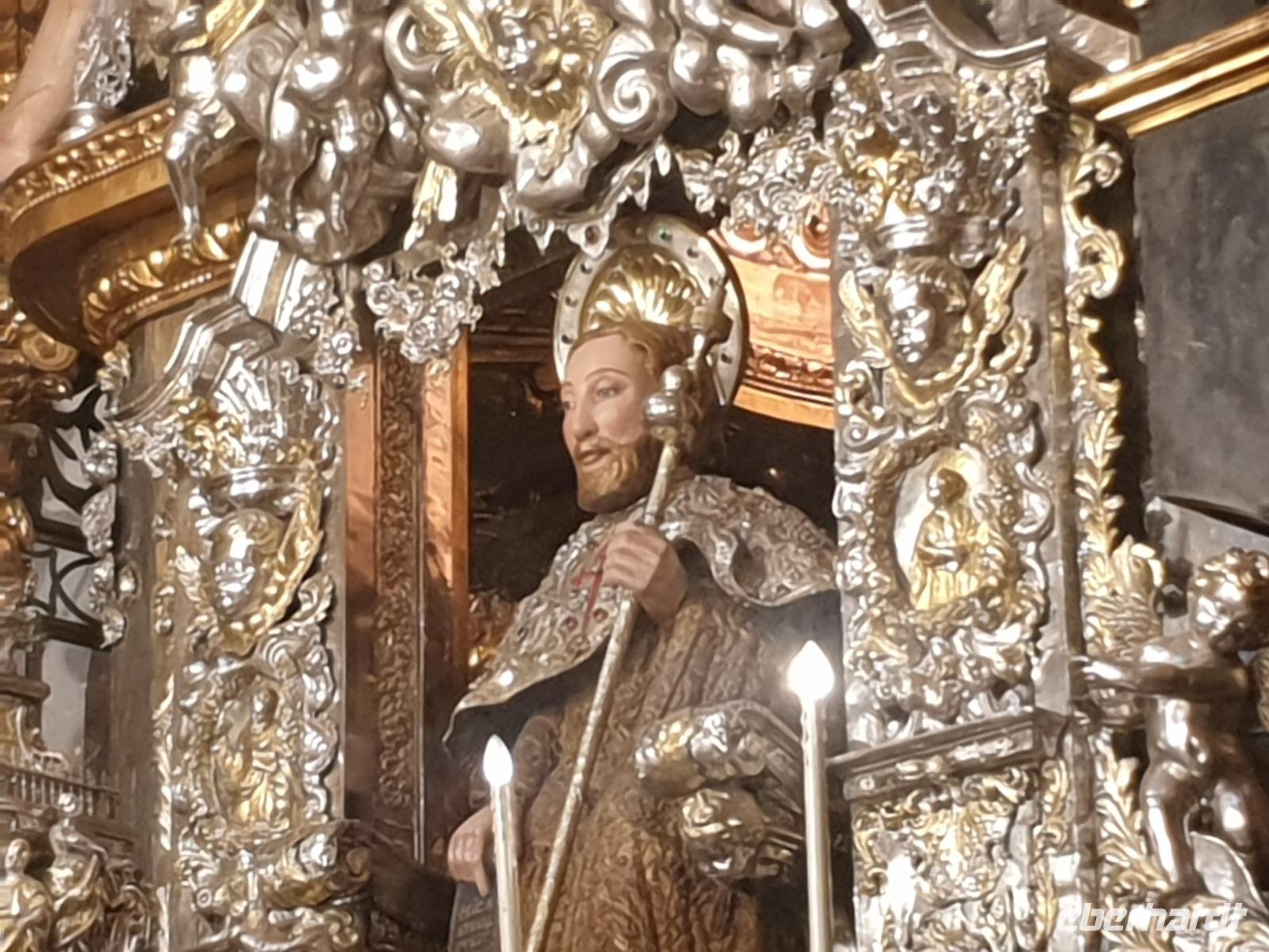 Wir haben unser Ziel erreicht und hören schon die Glocken läuten. 12 Uhr hören wir der Pilgermesse zu. Heute ist die Pilgermesse wegen Corona auf weniger als 300 Plätze drinnen beschränkt. Wir besichtigen auch San Francisco Kirche. Nach mehr als 2 Jahre ist Baustelle in der Kathedrale schon fertig und können in alle Ruhe sie besichtigen. Wegen Corona kann man nicht wie immer dem Aposteln umarmen aber sein Grab kann man immer noch sehen. Was für eine Ruhe hier. Später bei einer Stadtbesichtigung erkunden wir weiter die Altstadt von Santiago de Compostela, die neben der Kathedrale und dem Jakobsweg natürlich auch zum Weltkulturerbe der UNESCO gehört. Eberhardt Travel bietet auch heute wieder eine Überraschung und besorgt für alle Gäste ein Glas Ribeiro Wein um zu feiern, dass man es bis hier her geschafft hat.
