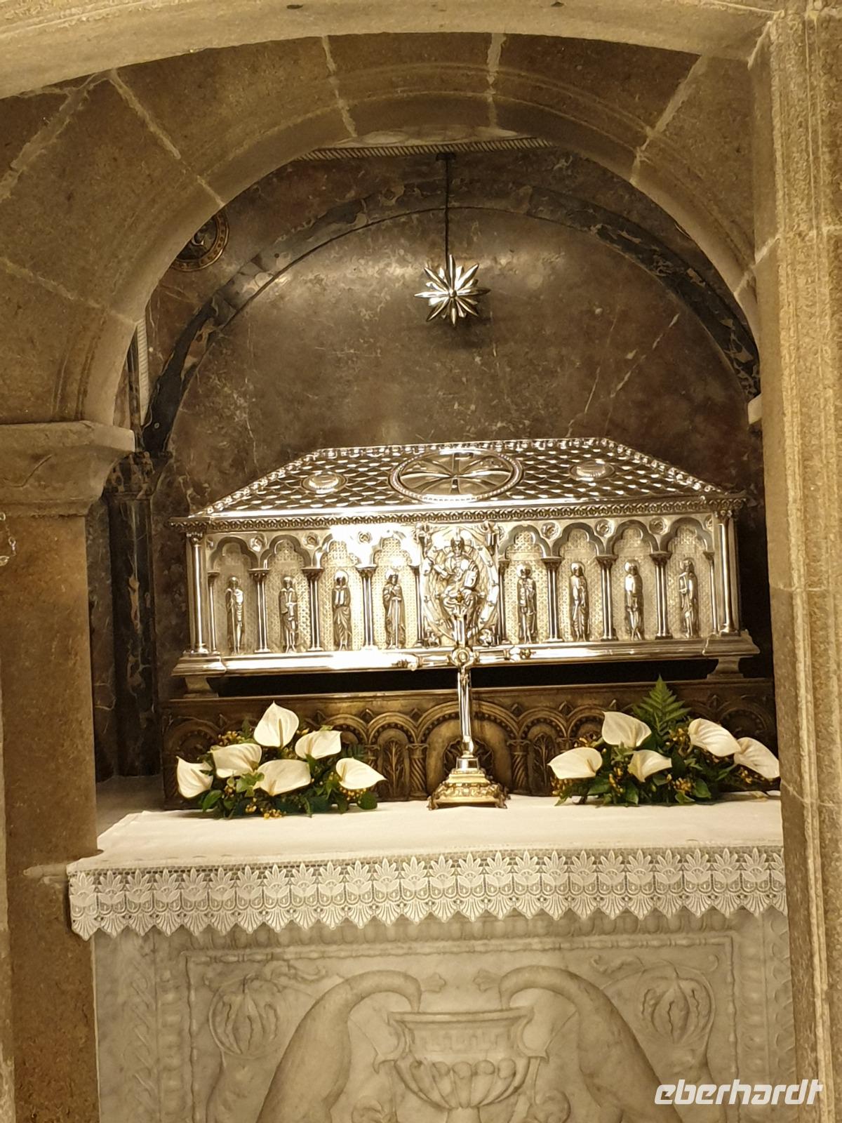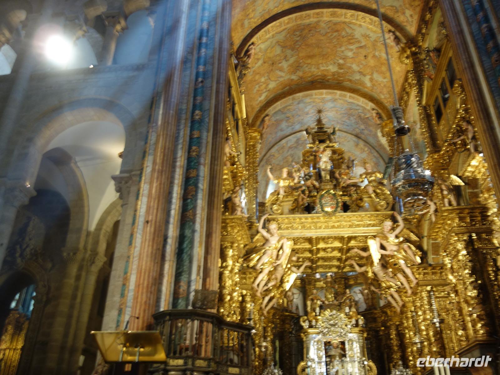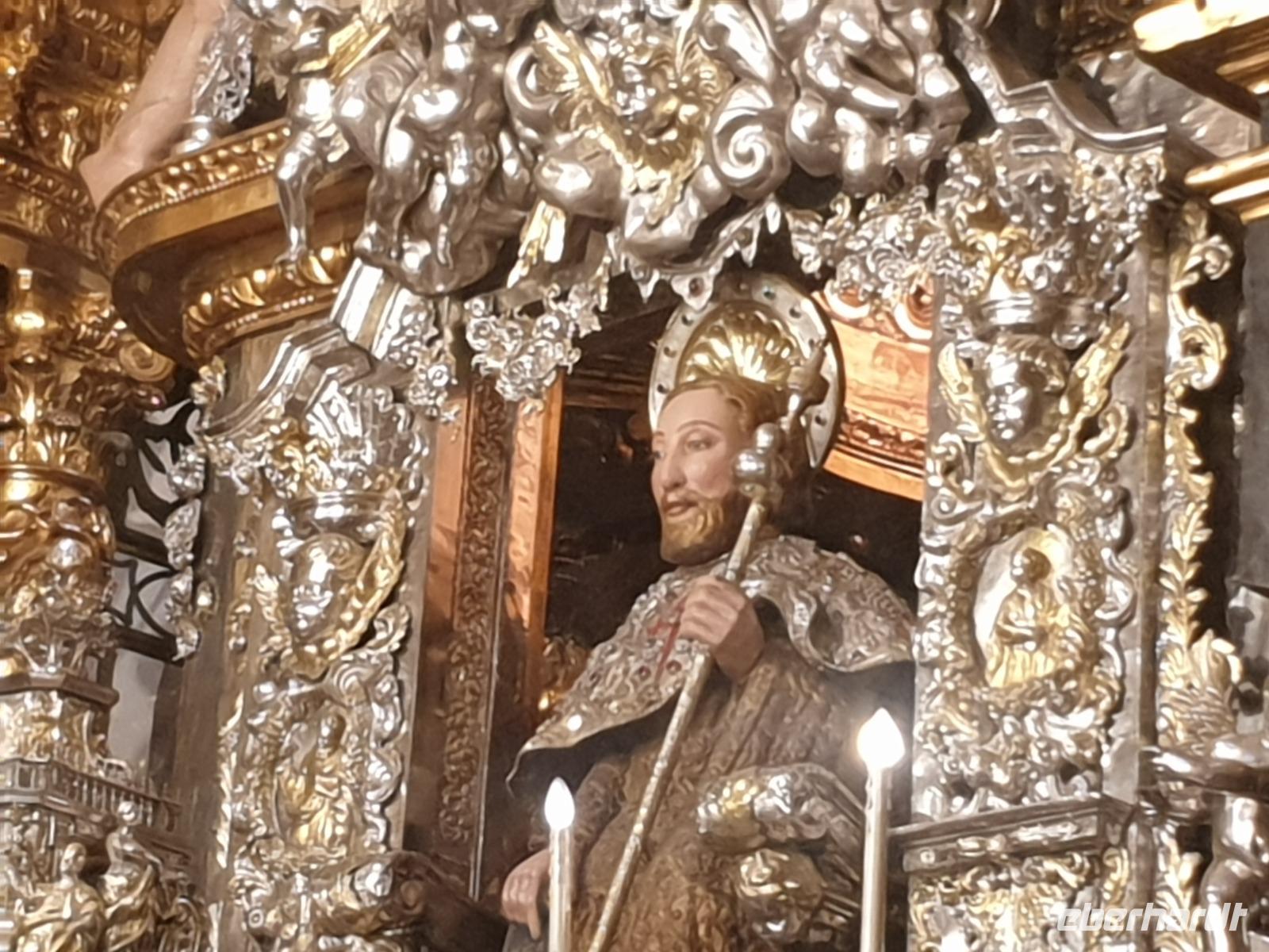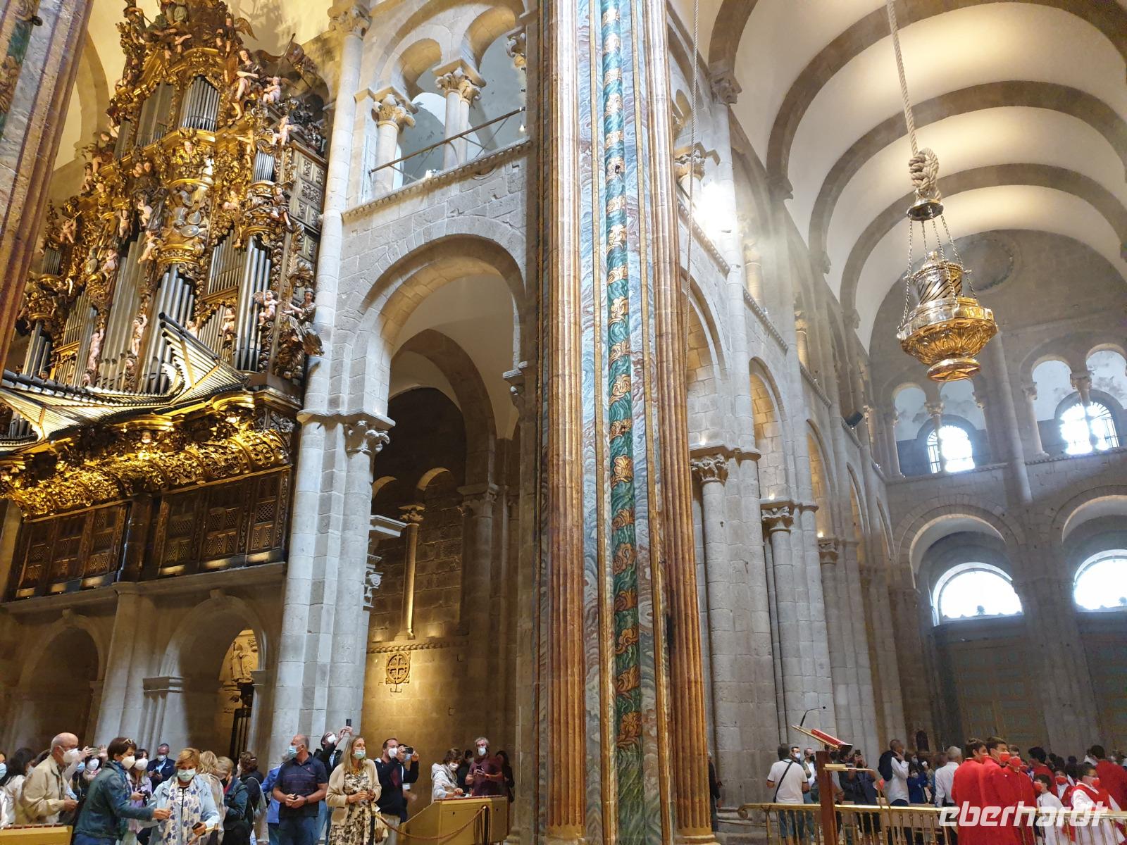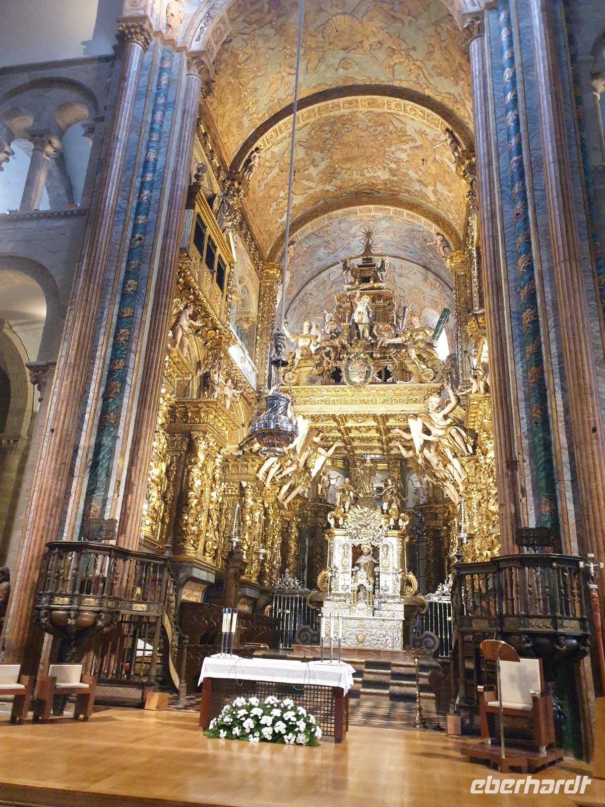 Wir haben unser Ziel erreicht und hören schon die Glocken läuten. 12 Uhr hören wir der Pilgermesse zu. Heute ist die Pilgermesse wegen Corona auf weniger als 300 Plätze drinnen beschränkt. Wir besichtigen auch San Francisco Kirche. Nach mehr als 2 Jahre ist Baustelle in der Kathedrale schon fertig und können in alle Ruhe sie besichtigen. Wegen Corona kann man nicht wie immer dem Aposteln umarmen aber sein Grab kann man immer noch sehen. Was für eine Ruhe hier. Später bei einer Stadtbesichtigung erkunden wir weiter die Altstadt von Santiago de Compostela, die neben der Kathedrale und dem Jakobsweg natürlich auch zum Weltkulturerbe der UNESCO gehört. Eberhardt Travel bietet auch heute wieder eine Überraschung und besorgt für alle Gäste ein Glas Ribeiro Wein um zu feiern, dass man es bis hier her geschafft hat.
