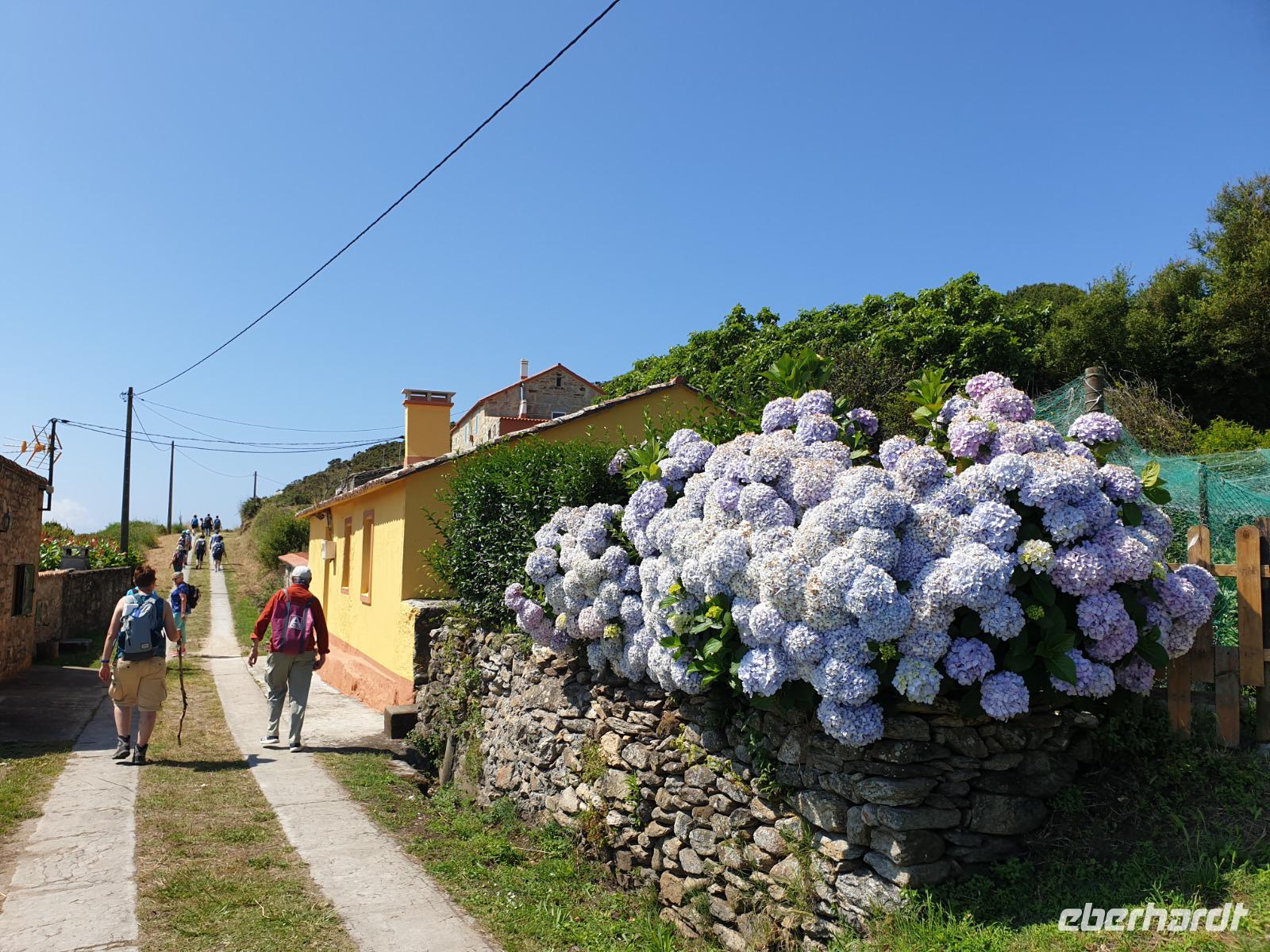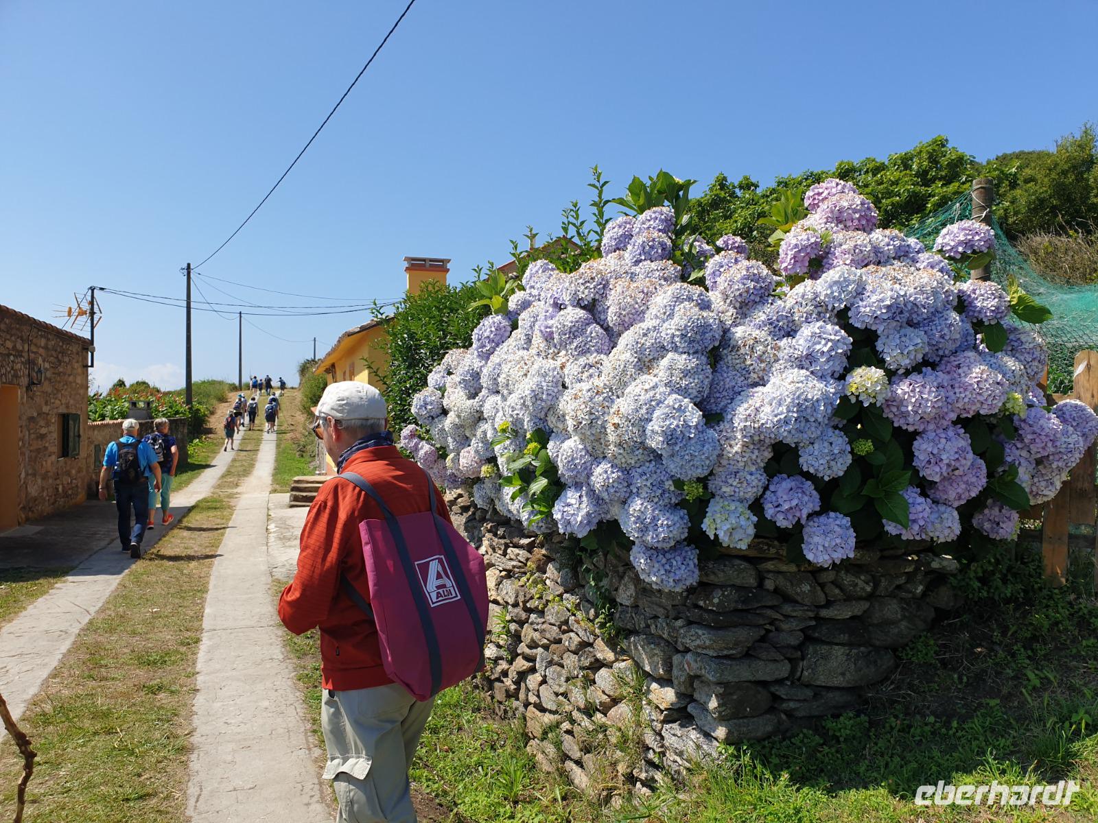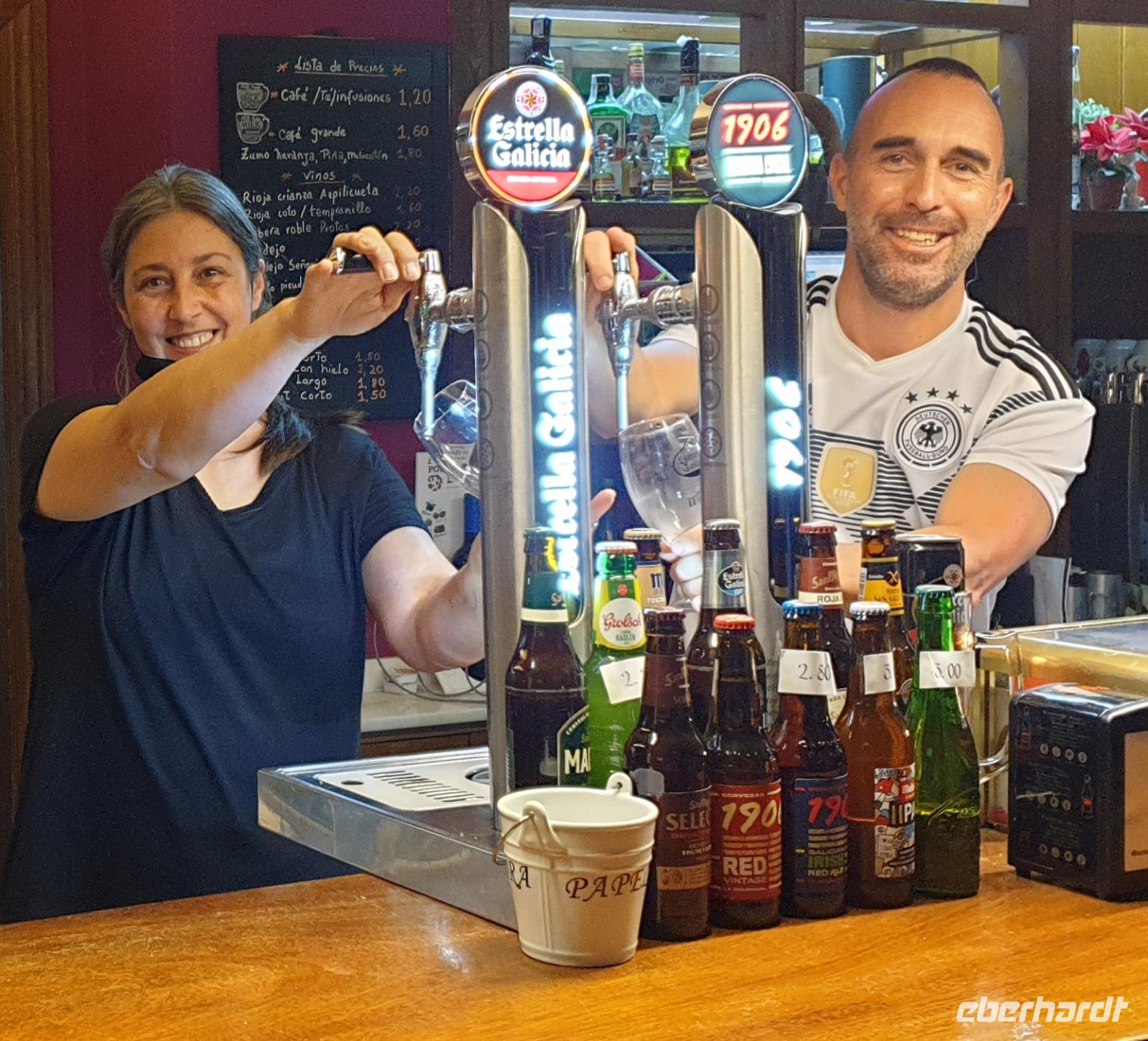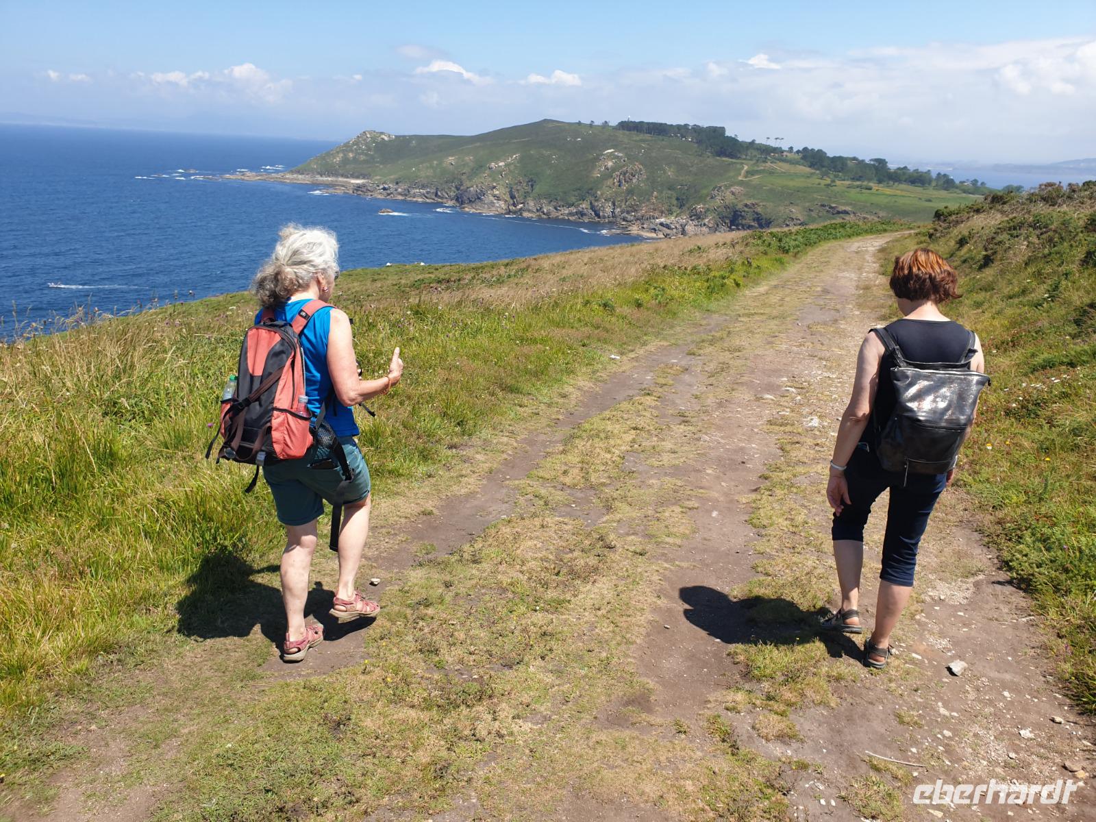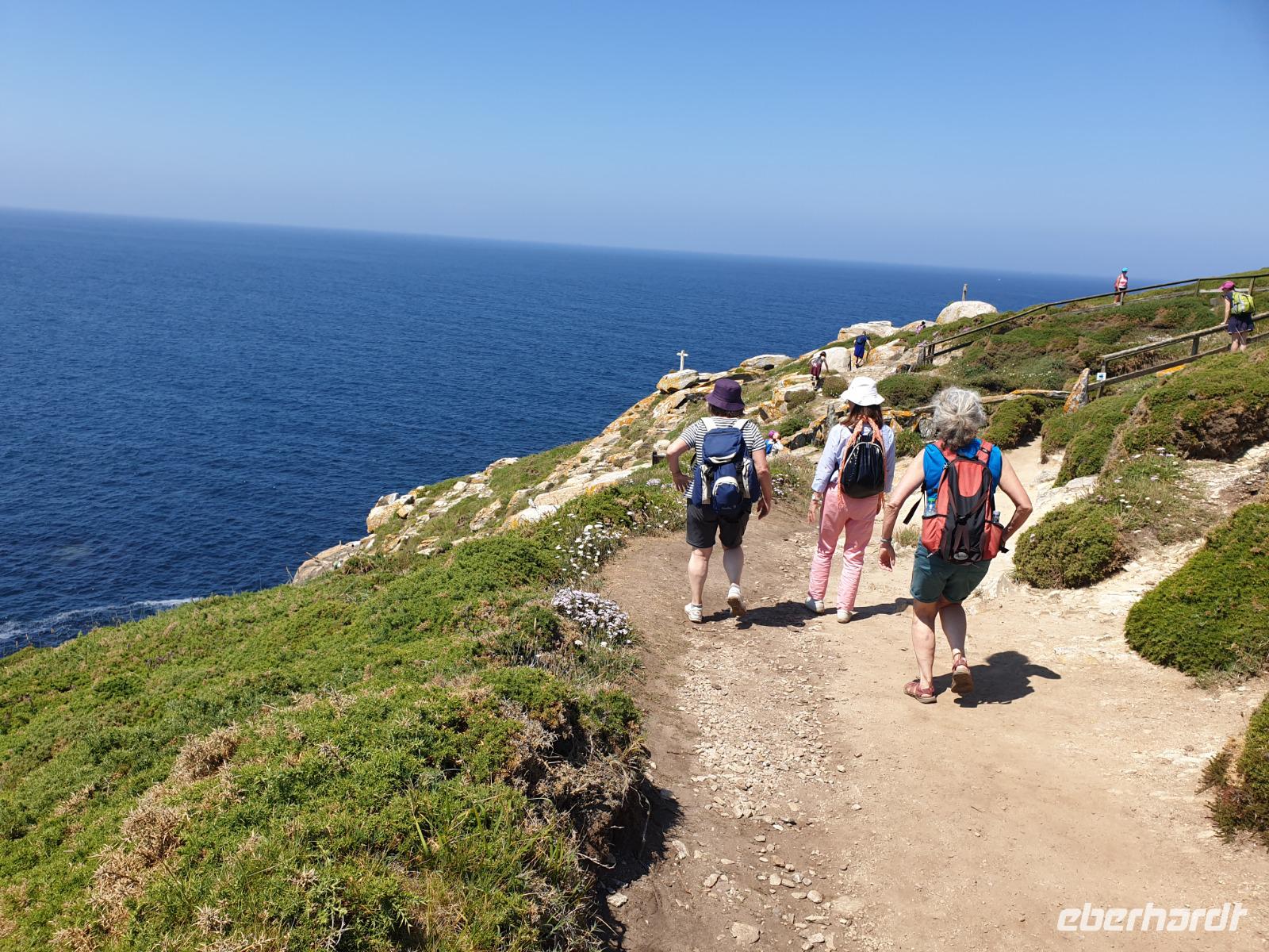 Neben seinem guten Rindfleisch ist Galicien vor allem berühmt für seinen guten frischen Fisch und die Meerersfrüchte wie Tintenfische oder Oktopus, die wir mittags verkosten. Wieder ein leckeres Tapasessen. Am frühen Nachmittag holt uns Octavio ab und bringt uns bis nach Poio an der Atlantik-Küste, wo unsere 3-Sterne Plus Villa Covelo am Meer liegt. Einige von uns gehen vor dem Abendessen ins Wasser. Es ist herrlich, die letzten zwei Nächte dieser unvergesslichen Wanderreise hier am Meer zu verbringen. Das Wasser ist noch bisschen kalt aber die Ostsee ist auch nicht wärmer, oder? Abendessen war heute wieder lecker. Man könnte sagen diese Reise ist eine gastronomische Reise.