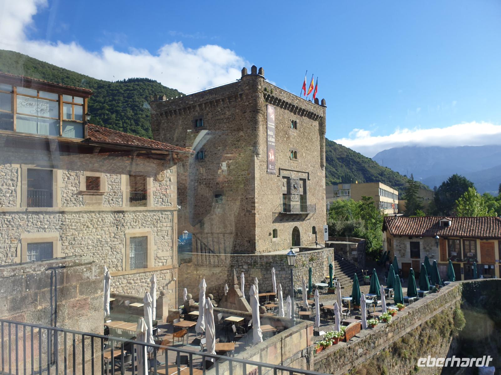 In Santillana del Mar zu spazieren und seine romanischen Kloster zu besichtigten, hat uns sehr sehr gut gefallen. Weiter fahren wir zu unserem Hotel Villa de Cabrales in Arenas de Cabrales, vor den Türen des Nationalparks Picos de Europa. Dieser Nationalpark ist unbekannt für viele, aber immerhin einer der meistbesuchtesten Nationalparks Spaniens. Wir werden genug Zeit in den nächsten Tagen haben um es zu erkunden. In wenigen Minuten ändert sich die Landschaft total. Vor 25 Minuten waren wir am Meer und plötzlich sind wir in einer tollen alpinen Bergwelt. Gegenüber vom Hotel haben wir heute ein langes und herrliches Tapas-Abendessen. Asturien, wo wir heute sind, ist eine spanische Region, die bekannt ist für ihre Fabes oder Fabadas (Weiße Bohnen mit Wurst) und ihr gutes Essen im Allgemeinen. Das konnten wir wohl nach dem tollen Tapas-Abendessen bestätigen. Unterdessen verkosten wir auch Cabrales Käse, einen Blau-Edelschimmelkäse oder „Ensaladilla rusa" (russischen Salat). Lecker. Um das alles zu verdauen spazieren anschließend einige von uns durch das schöne Dorf. Wir freuen uns schon sehr auf die erste richtige Wanderung morgen durch die Cares Schlucht.