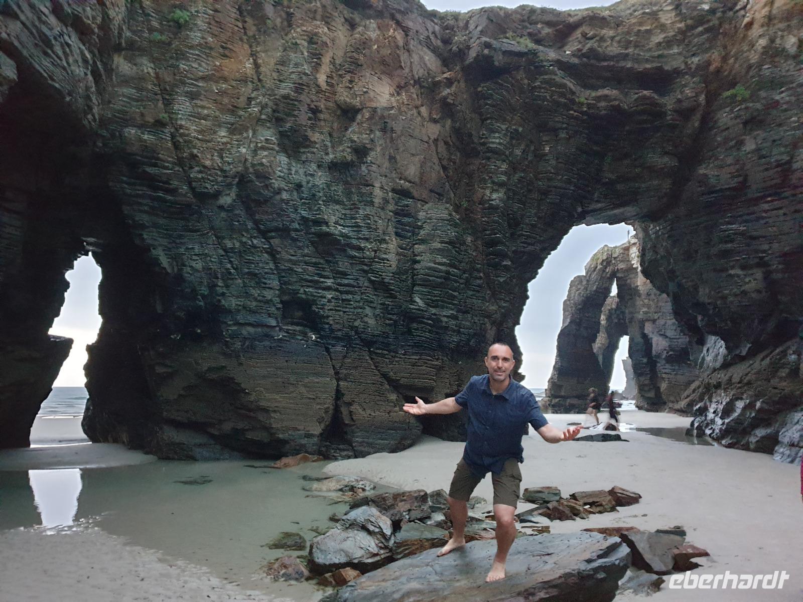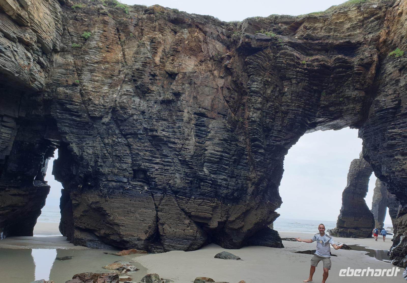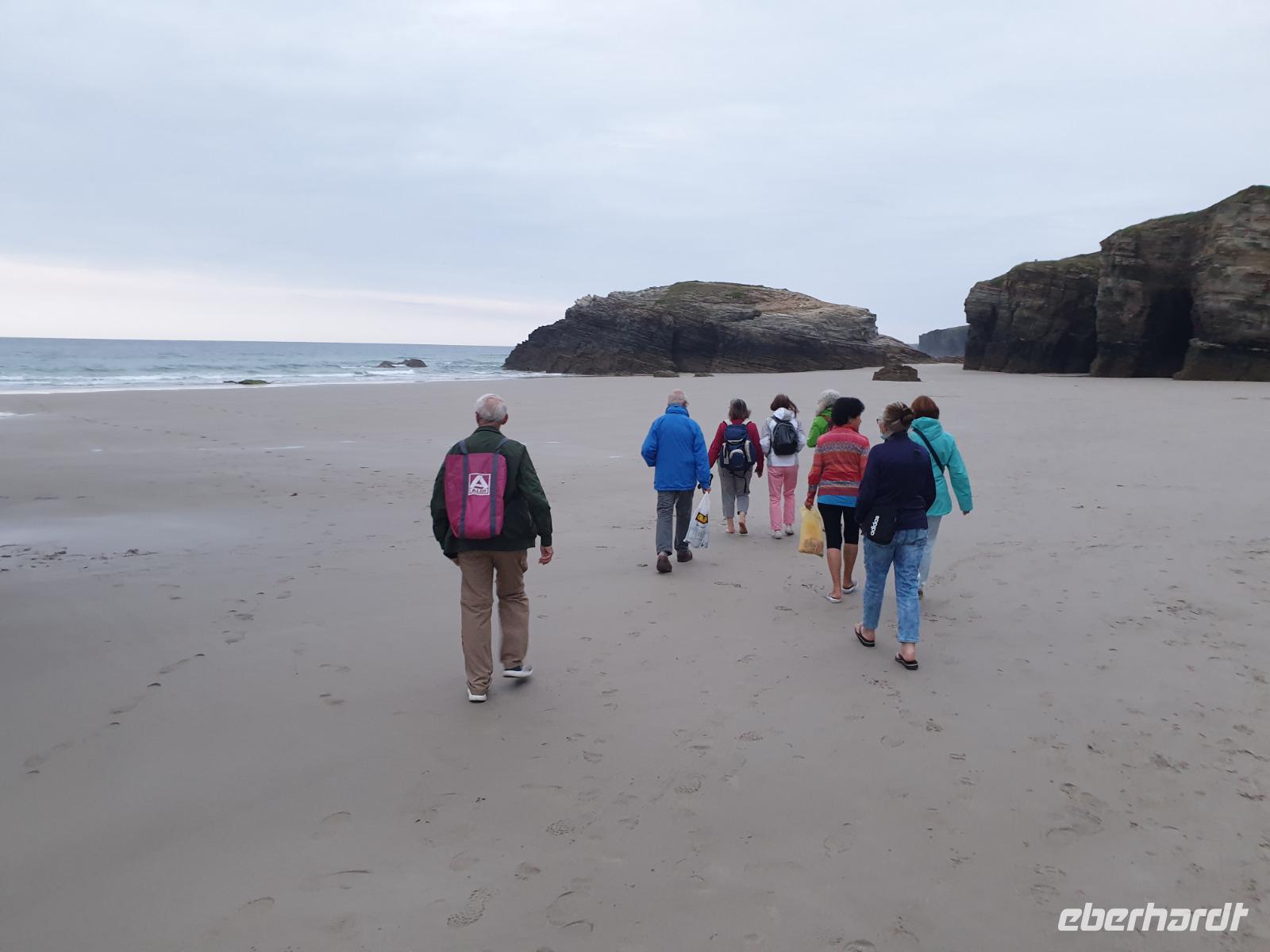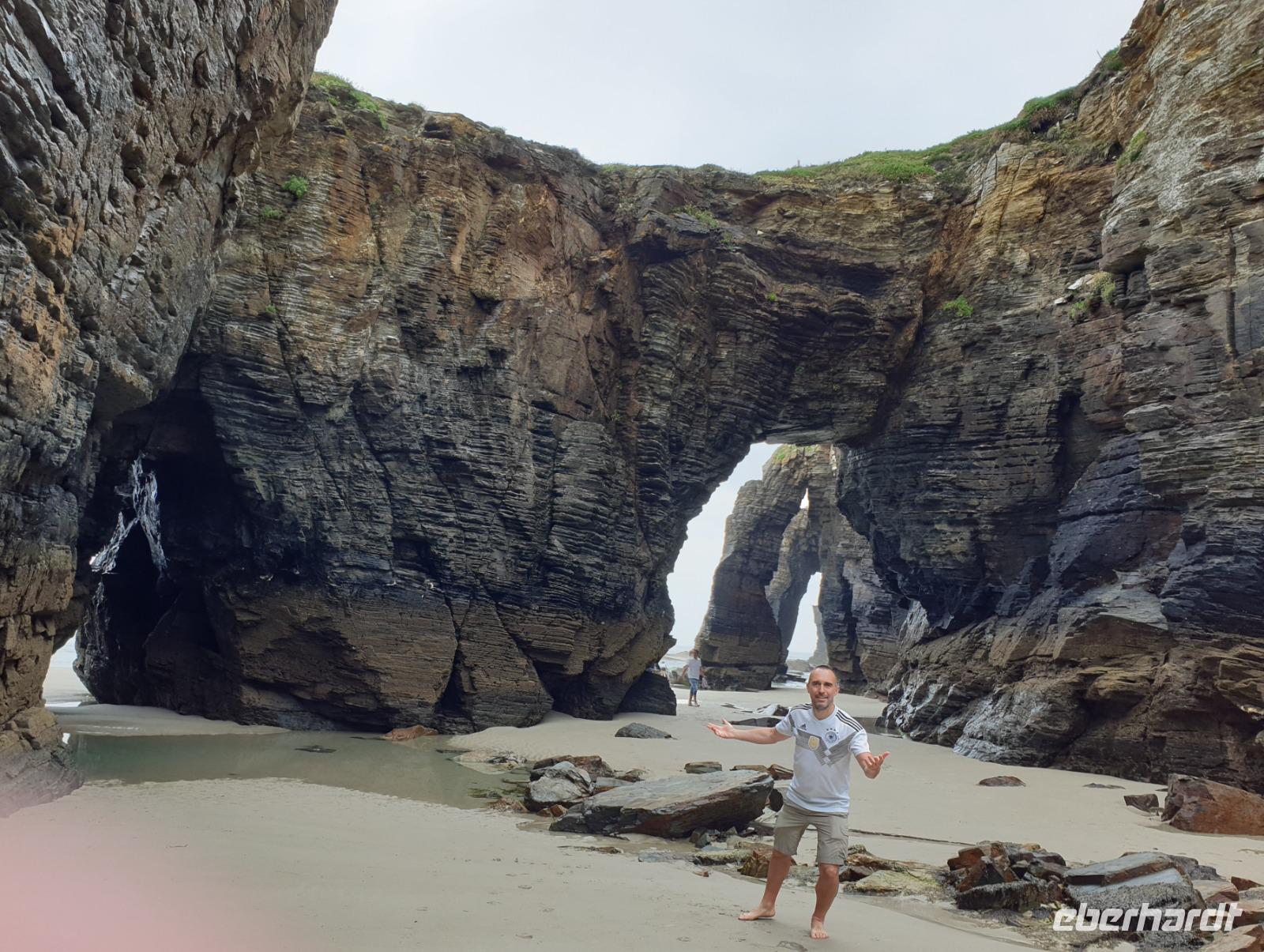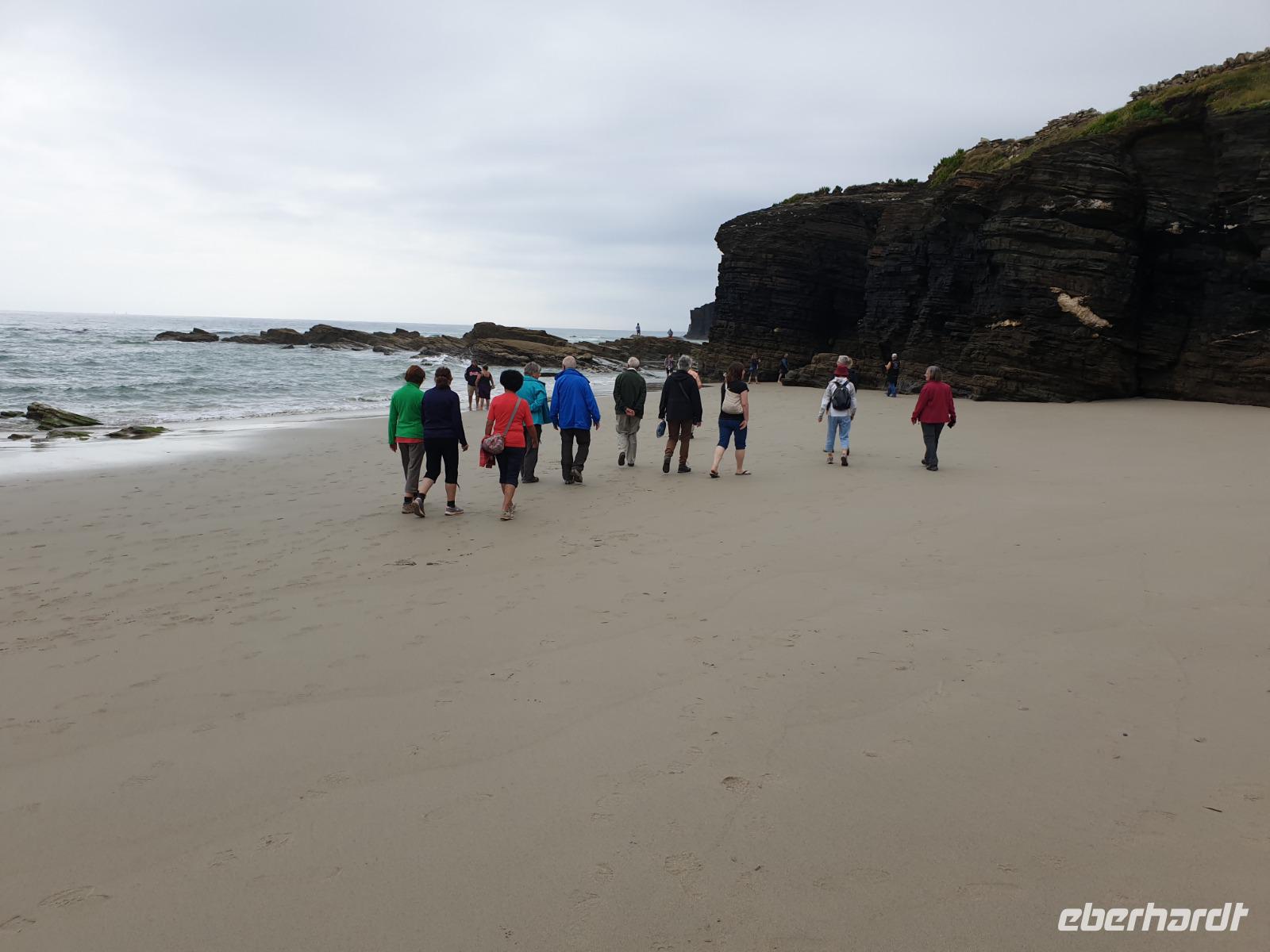 Heute früh bevor wir Richtung Jakobsweg Etappe fahren, zeigt uns noch Alejandro den Leuchturm von Isla Pancha. Nach dem Frühstück im Hotel Voar in Ribadeo zeigt uns Alejandro nochmals den Kathedralenstrand Praia a Catedrais, wieder mit Ebbe. Wir sind uns einig: einem der spektakulärsten Strände Europas. Hier verabschieden wir uns von Alejandro da wir morgen ein neuer Busfahrer bekommen.