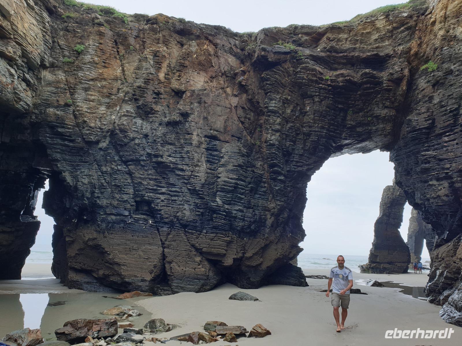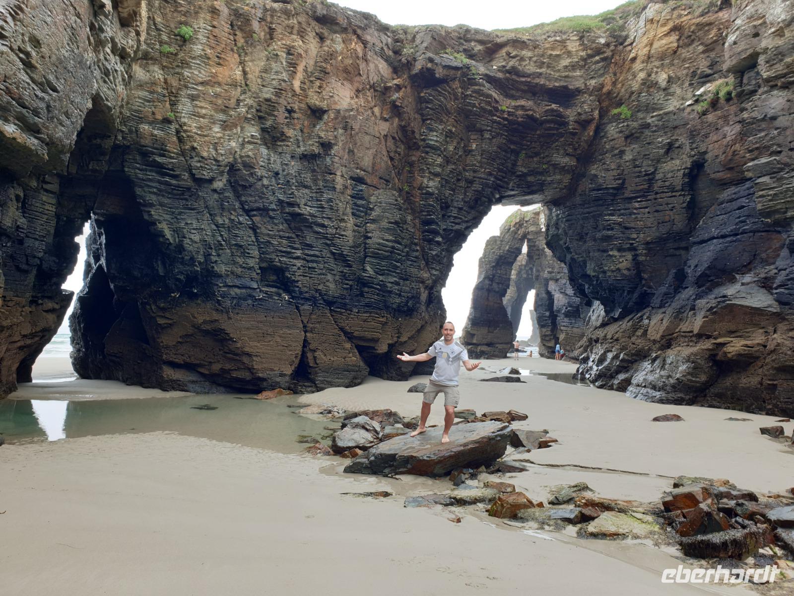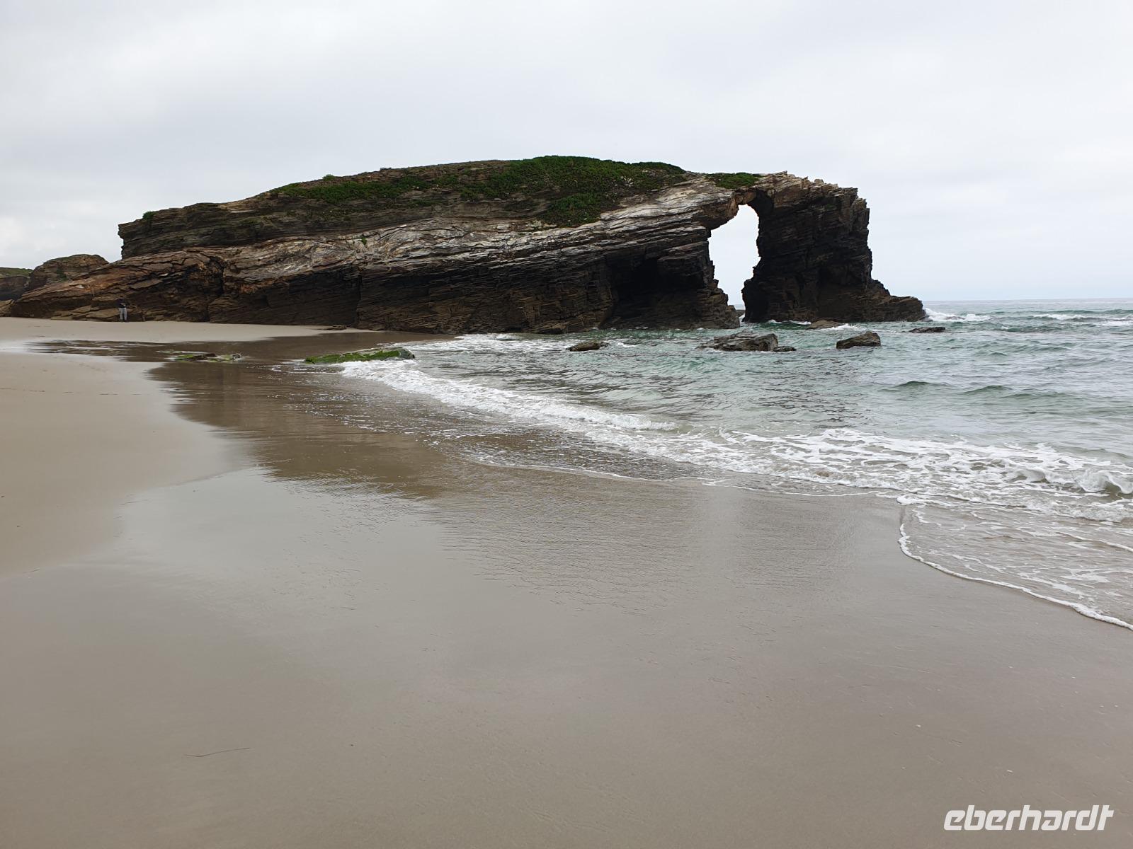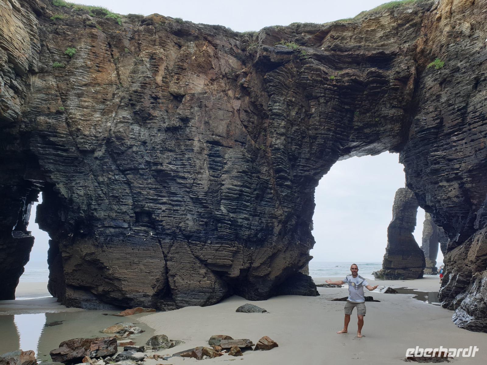 Heute früh bevor wir Richtung Jakobsweg Etappe fahren, zeigt uns noch Alejandro den Leuchturm von Isla Pancha. Nach dem Frühstück im Hotel Voar in Ribadeo zeigt uns Alejandro nochmals den Kathedralenstrand Praia a Catedrais, wieder mit Ebbe. Wir sind uns einig: einem der spektakulärsten Strände Europas. Hier verabschieden wir uns von Alejandro da wir morgen ein neuer Busfahrer bekommen.