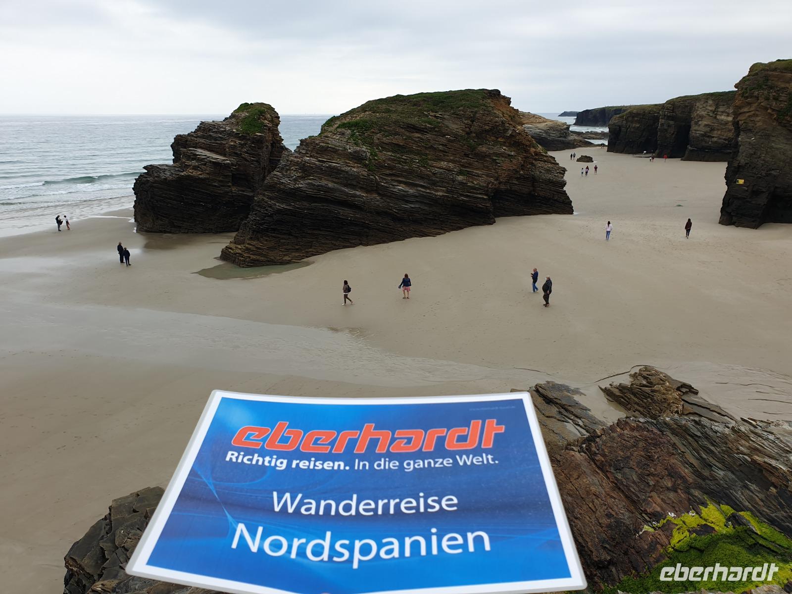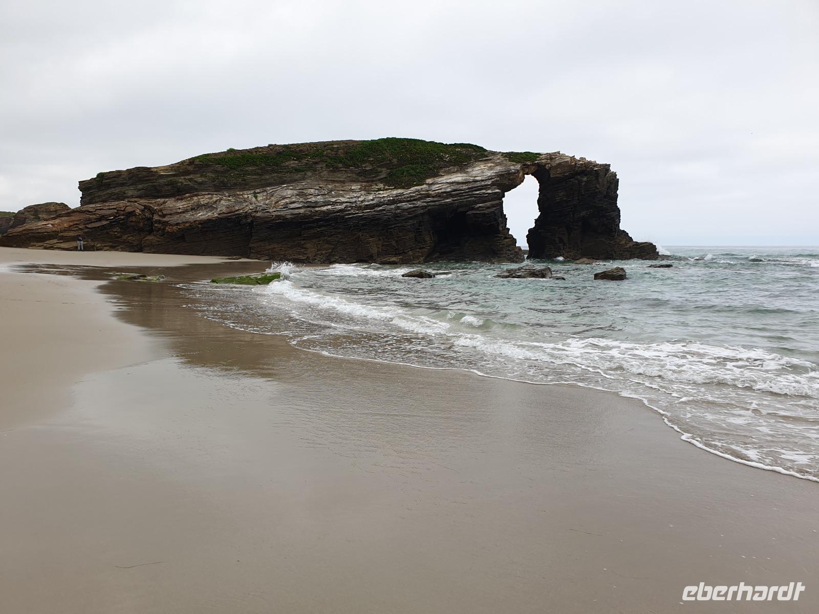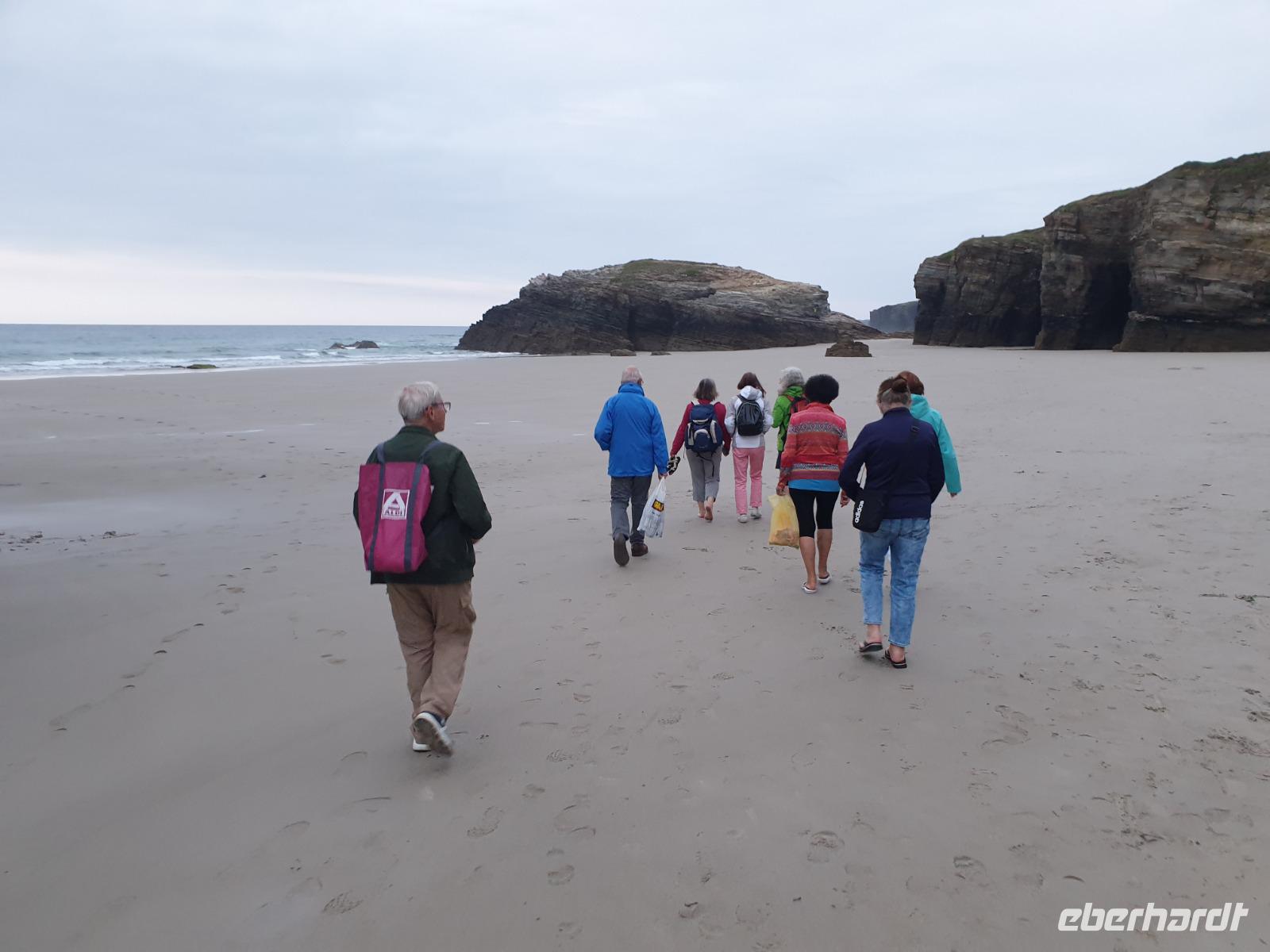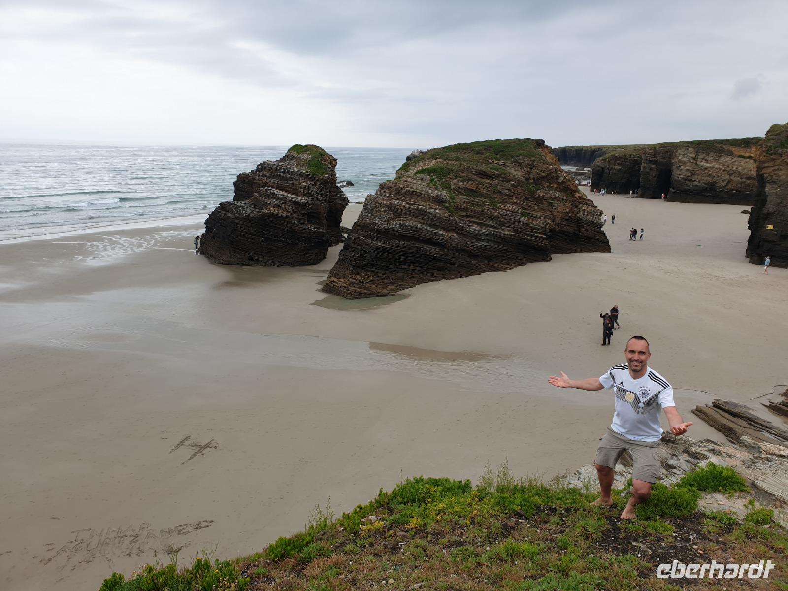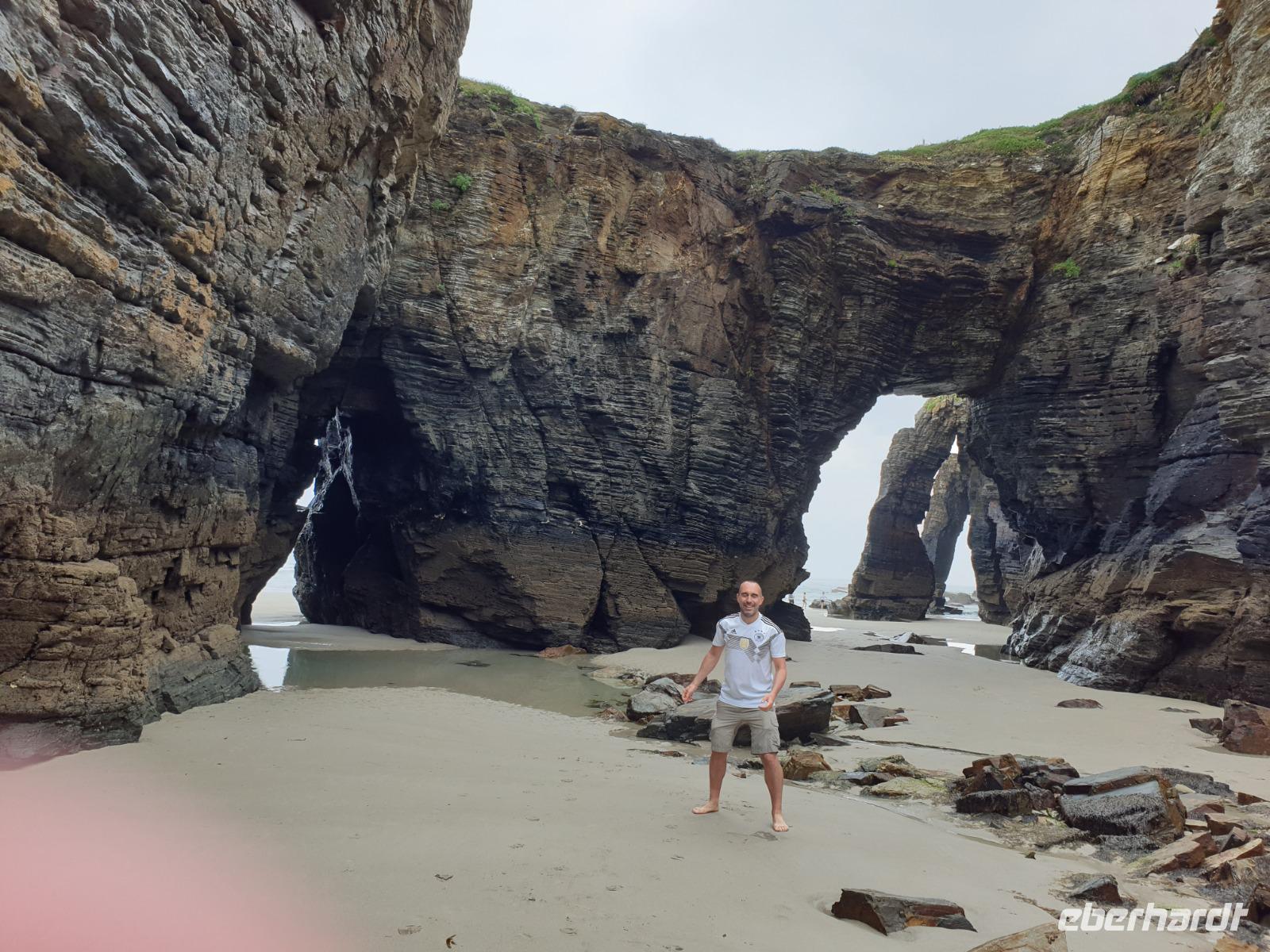 Heute früh bevor wir Richtung Jakobsweg Etappe fahren, zeigt uns noch Alejandro den Leuchturm von Isla Pancha. Nach dem Frühstück im Hotel Voar in Ribadeo zeigt uns Alejandro nochmals den Kathedralenstrand Praia a Catedrais, wieder mit Ebbe. Wir sind uns einig: einem der spektakulärsten Strände Europas. Hier verabschieden wir uns von Alejandro da wir morgen ein neuer Busfahrer bekommen.