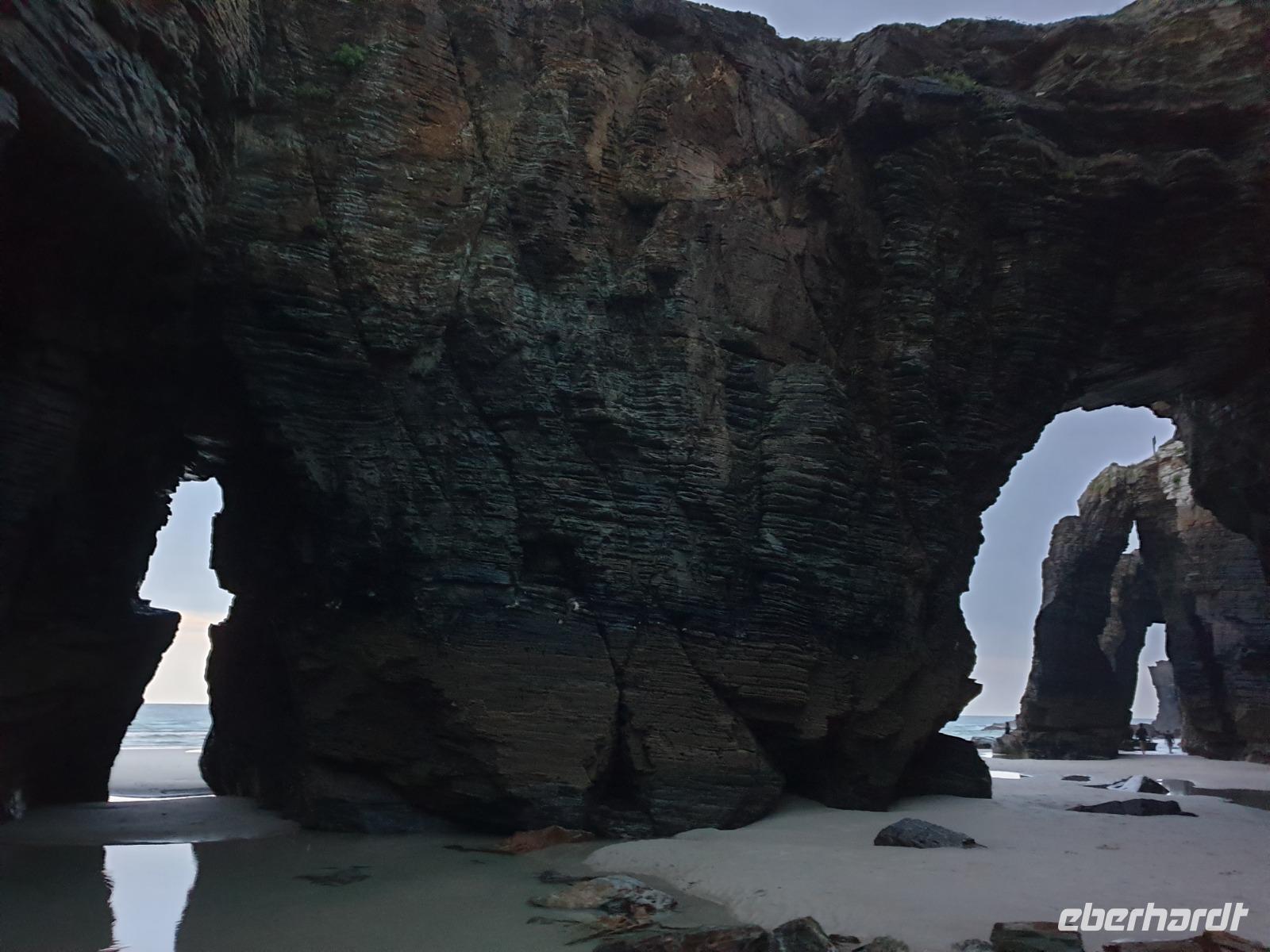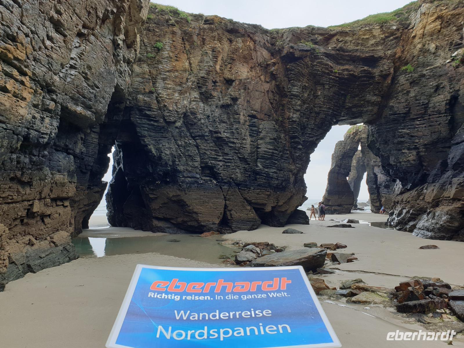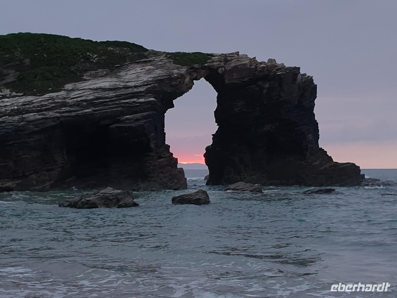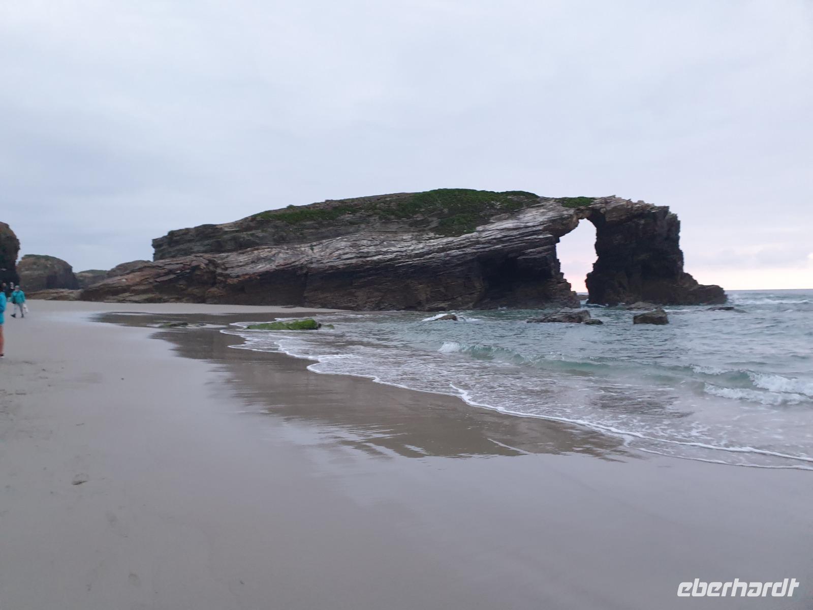 Am früh Nachmittag fahren wir dann weiter nach Ribadeo (schon in Galizien) an der Atlantik-Küste, wo sich der Kathedralenstrand Praia a Catedrais befindet. Auf dem Weg machen wir auch einen kurzen Stopp in Cangas de Onis um seine berühmte romanische Brücke aus dem Mittelalter zu Fuß zu überqueren. Heute kurz vor Mitternacht fahren wir nach dem Abendessen am Kathedralen-Strand da Ebbe um 23.30 Uhr ist und so werden wir heute und morgen dieses Highlight auch nicht verpassen. Einer der spektakulärsten Strände Europas. Da heute um 23.30 Uhr Ebbe ist, fahren wir nach dem Abendessen um diesen tollen unvergesslichen Strand bei Ebbe zu bestaunen. Warum sieht man bei Ebbe am Besten? Bei Ebbe bietet dieser Strand mit seinen skurrilen Felsformationen ein wahres Naturschauspiel. Einige von uns gehen baden und alle bestaunen wir gemeinsam die verschiedenen Steinbögen dieses Strandes. Herrlich und unvergesslich.