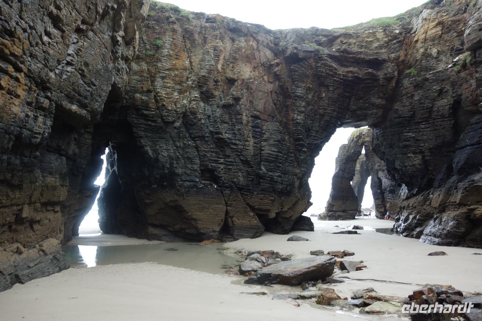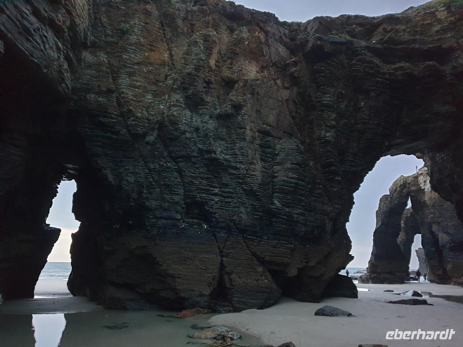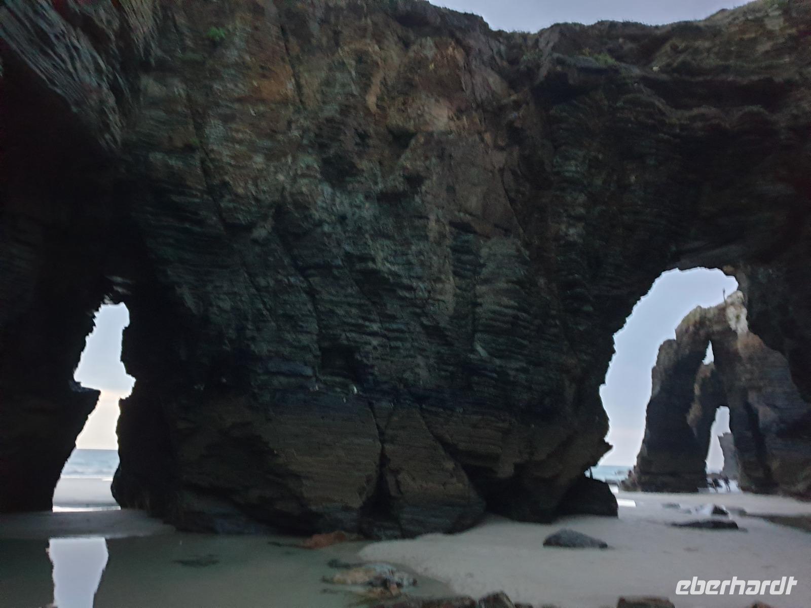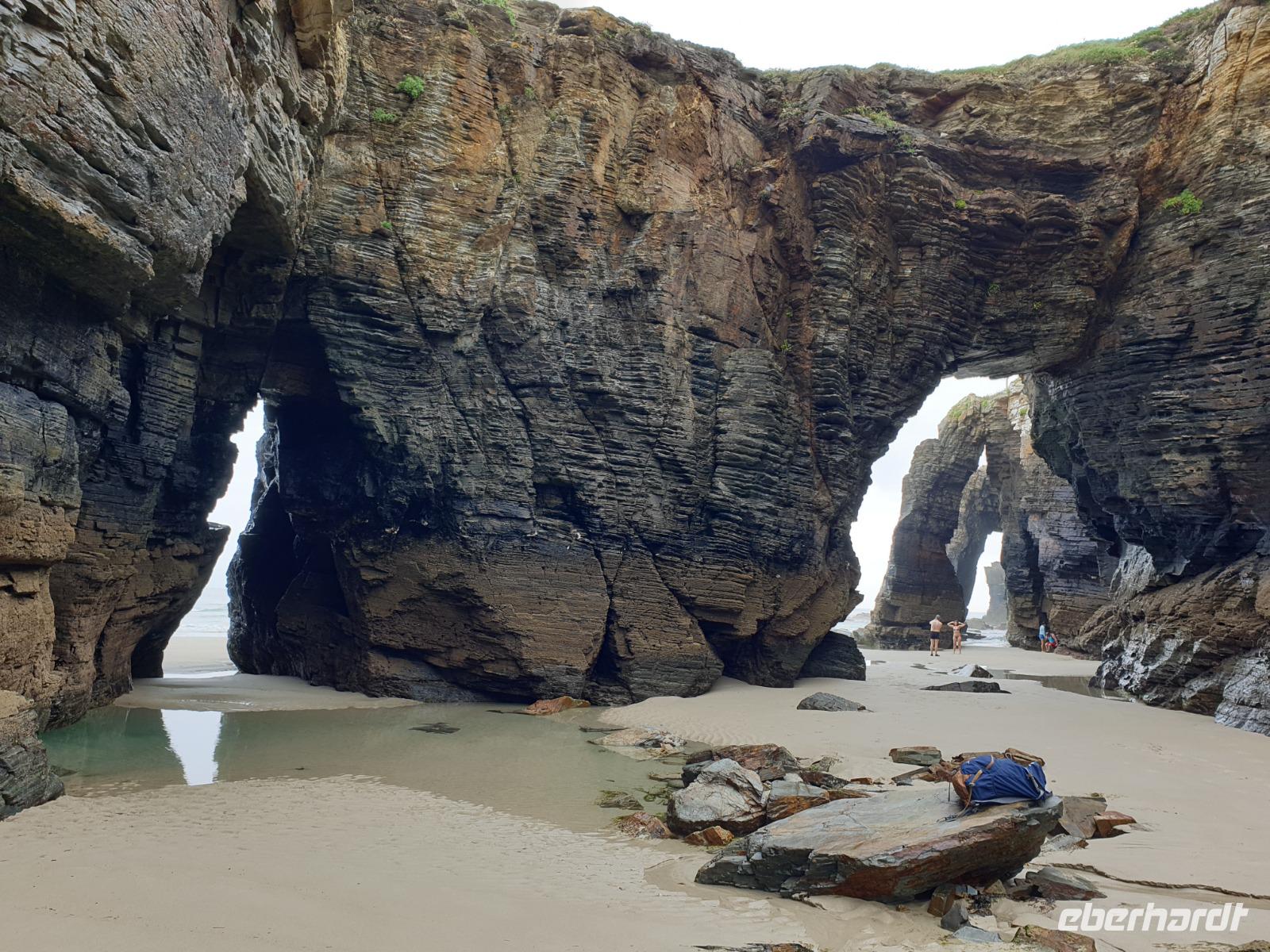 Am früh Nachmittag fahren wir dann weiter nach Ribadeo (schon in Galizien) an der Atlantik-Küste, wo sich der Kathedralenstrand Praia a Catedrais befindet. Auf dem Weg machen wir auch einen kurzen Stopp in Cangas de Onis um seine berühmte romanische Brücke aus dem Mittelalter zu Fuß zu überqueren. Heute kurz vor Mitternacht fahren wir nach dem Abendessen am Kathedralen-Strand da Ebbe um 23.30 Uhr ist und so werden wir heute und morgen dieses Highlight auch nicht verpassen. Einer der spektakulärsten Strände Europas. Da heute um 23.30 Uhr Ebbe ist, fahren wir nach dem Abendessen um diesen tollen unvergesslichen Strand bei Ebbe zu bestaunen. Warum sieht man bei Ebbe am Besten? Bei Ebbe bietet dieser Strand mit seinen skurrilen Felsformationen ein wahres Naturschauspiel. Einige von uns gehen baden und alle bestaunen wir gemeinsam die verschiedenen Steinbögen dieses Strandes. Herrlich und unvergesslich.
