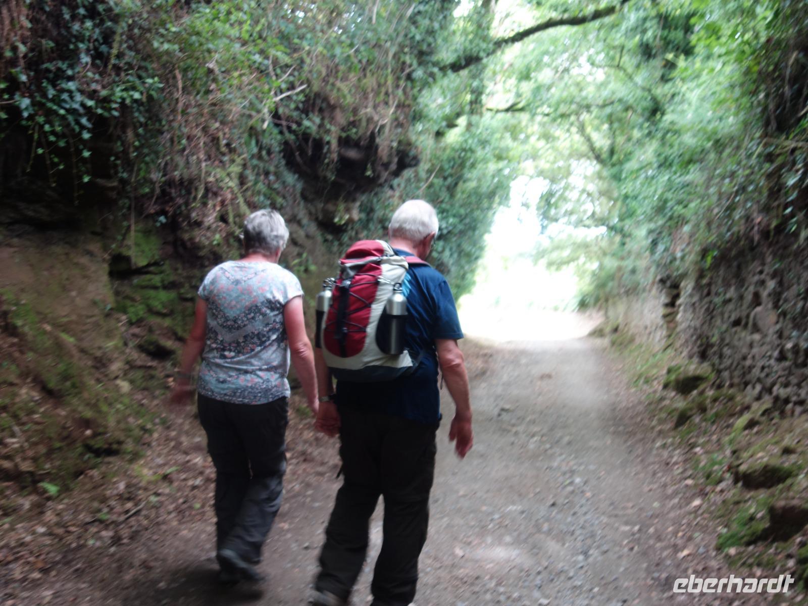 Anschließend fahren wir ca. zwei Stunden mit dem Bus bis zum Ausgangspunkt unserer Jakobsweg- Wanderungsetappe. Wir fühlen uns heute wie ein wahrer Wallfahrer, der, wie damals der Apostel Jakob, nach Santiago de Compostela gepilgert ist. Mit dem tollen Blick vom Kathedralen-Strand von heute morgen in Ribadeo noch im Herzen, fangen wir bei Arzua -in der galizischen Provinz A Coruna- unsere heutige ca. 20 Kilometer Wanderung an. Dieses kleine Dorf Arzua gilt als eines der letzten Etappenziele für die Jakobsweg-Pilgerer vor Santiago de Compostela. Hier treffen sich der französische Hauptweg und der Nordweg. Mit den richtigen Wanderschuhen gehen wir gemeinsam diese schöne Etappe bis nach Lavacolla, wo sich unser Hotel Ruta Jacobea direkt auf dem Hauptweg befindet. Für viele von uns war der Jakobsweg der Grund und das Ziel dieser Reise, um beim Wandern die Seele baumeln zu lassen und die spirituelle Atmosphäre zu genießen. Einige wollen ganz für sich allein sein, andere im Gespräch mit anderen Reisegästen. Heute ist das Abendessen ein deftiges Menü von der Vorspeise bis zur Nachspeise, die wir unter vier verschiedenen leckeren Gerichten und Tapas als Pilger auswählen können. Einfach Klasse!! Bevor das Abendessen hatten wir so mal kurz jeder gesagt was für uns den heutigen Tag war oder bedeutet hat. Jeder hatte was zu erzählen und die Tränen kamen auch als Zeichen von Liebe, Leben und Wahrheit.