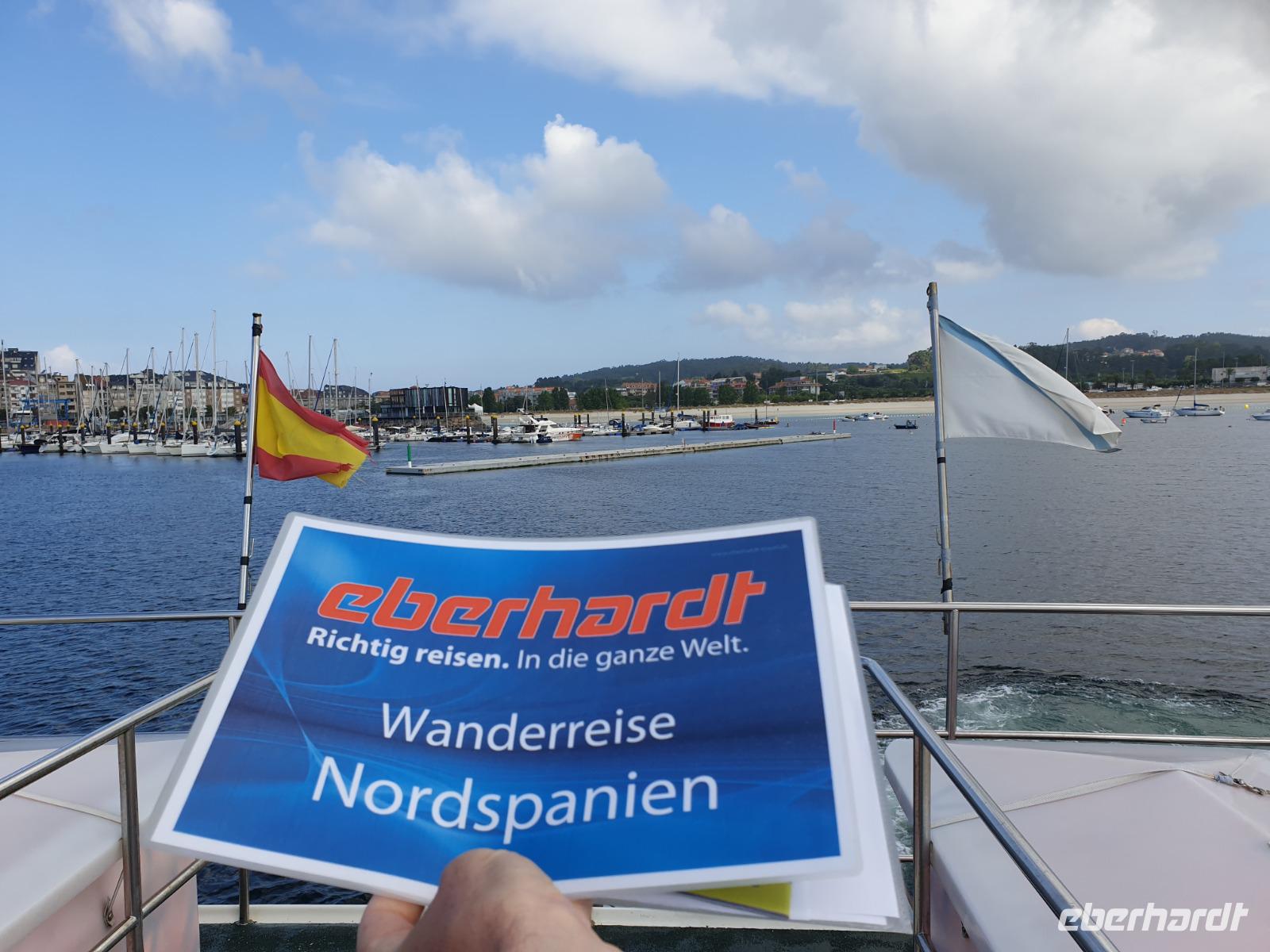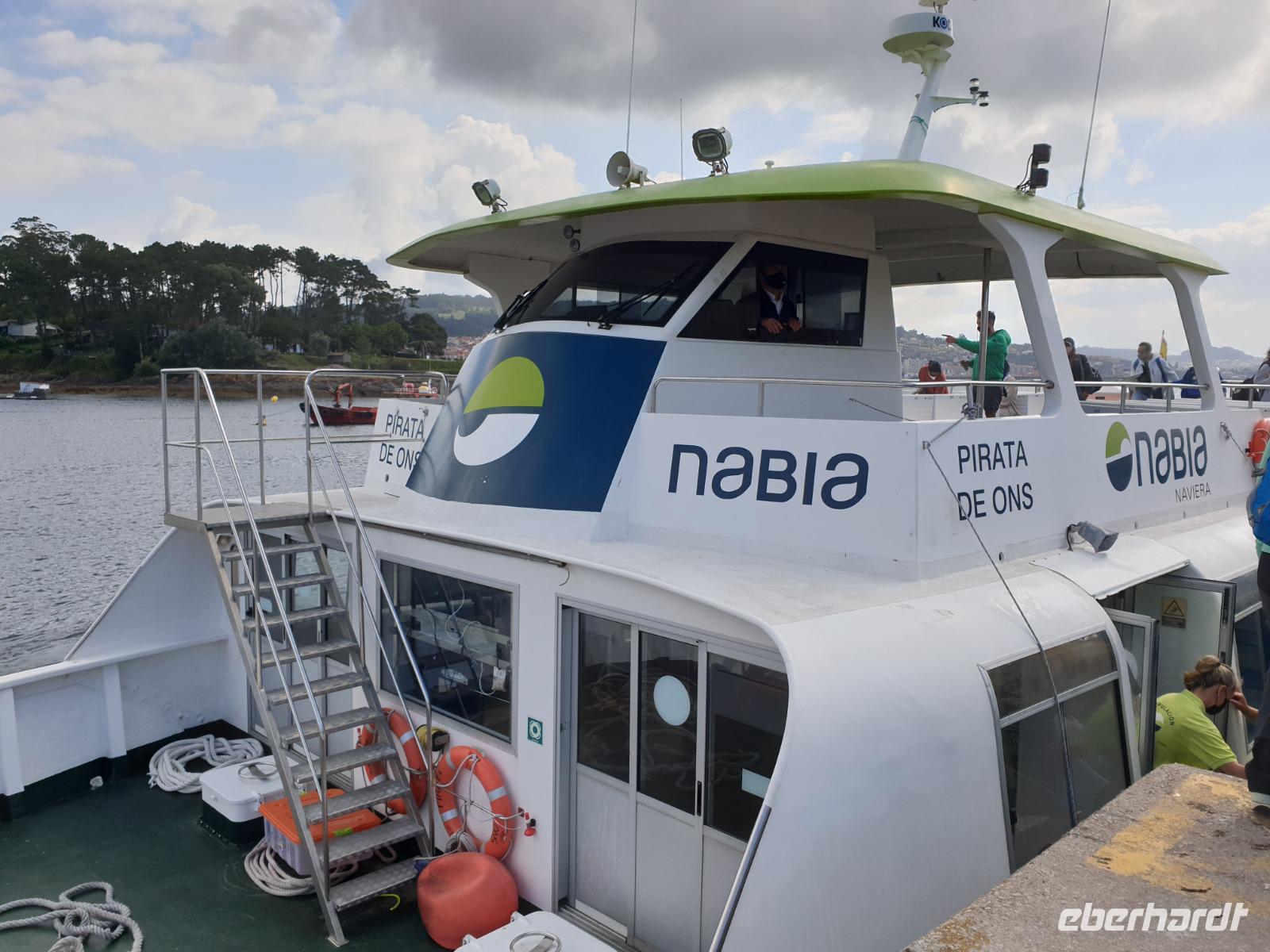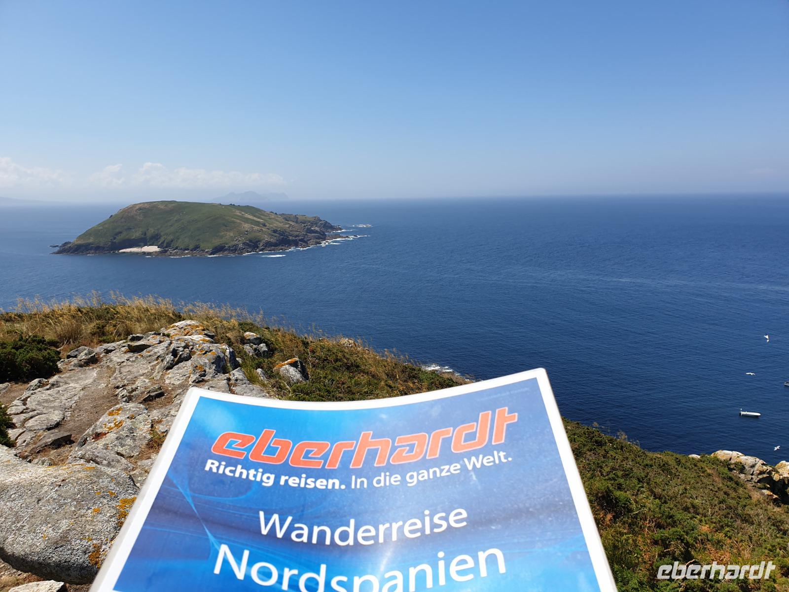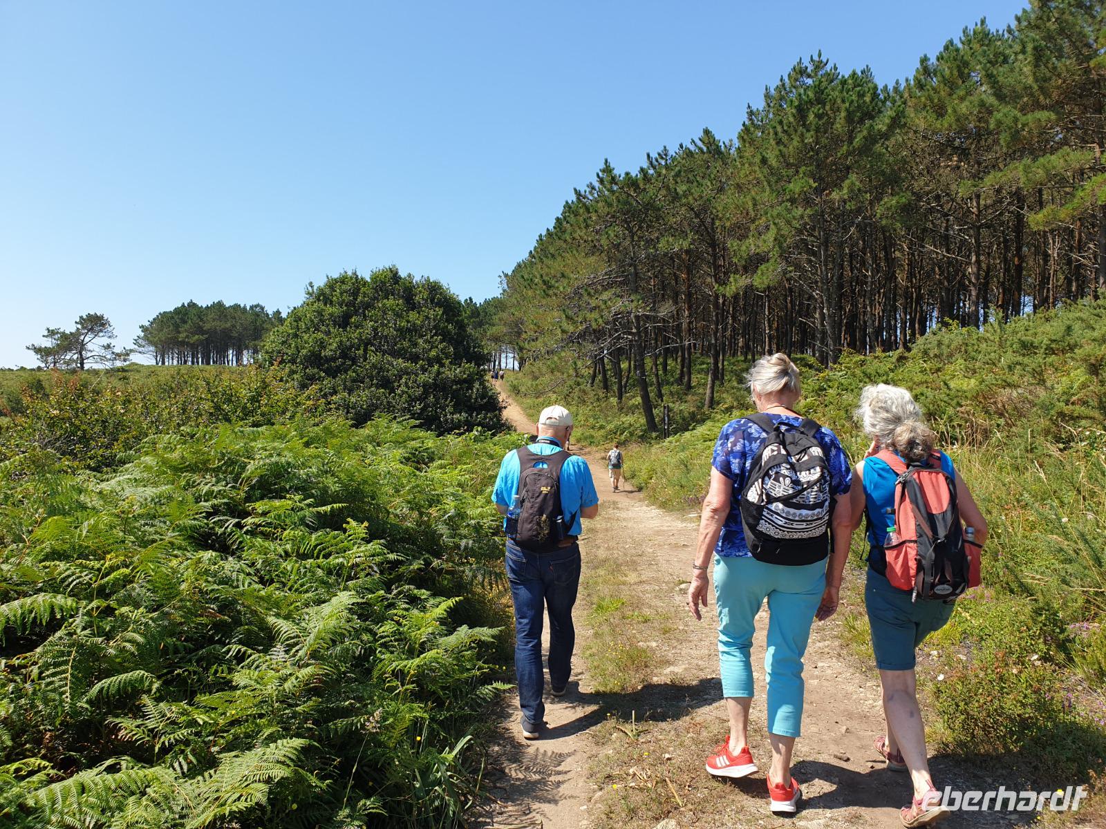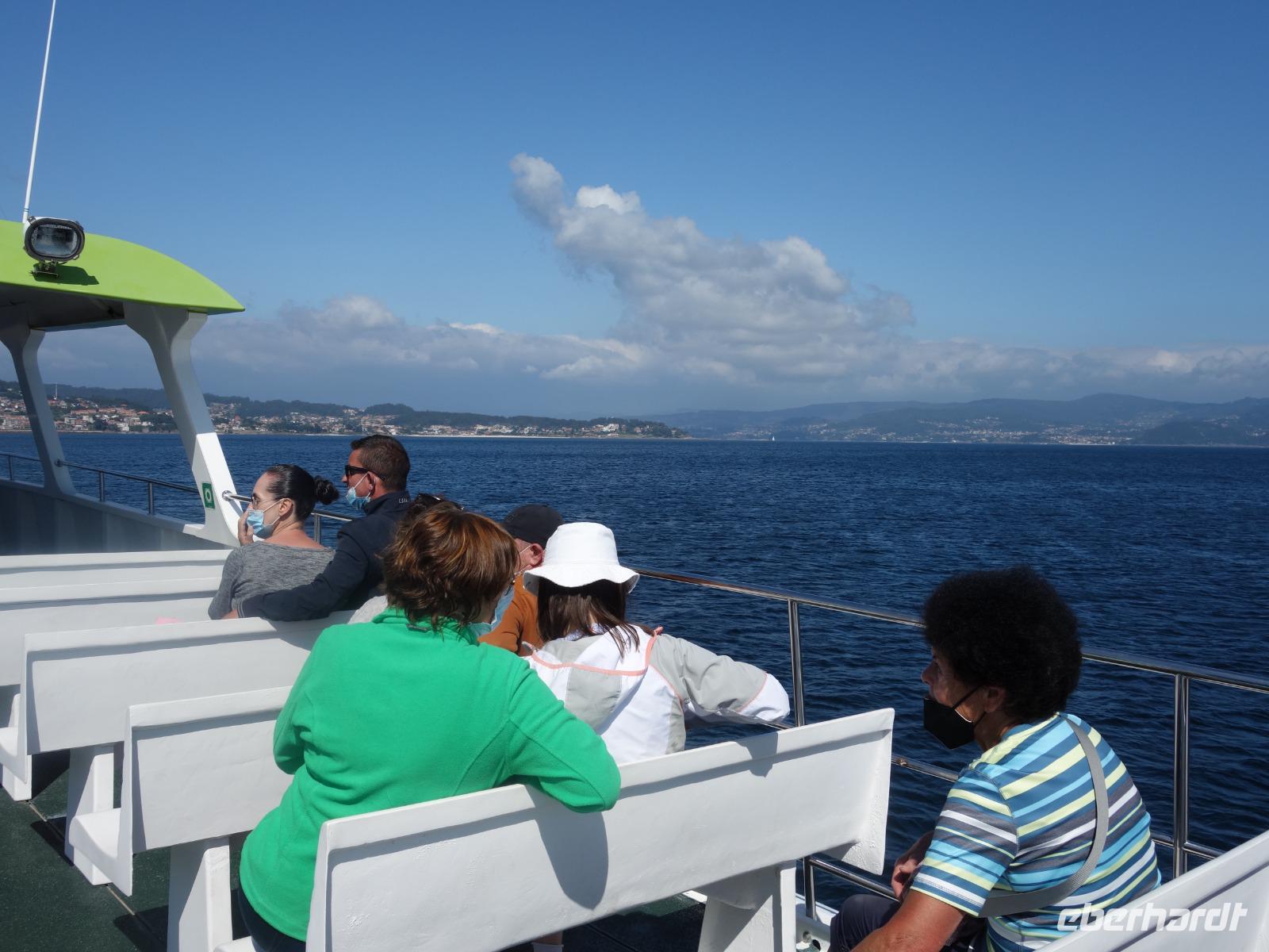 Heute früh fährt Benjamin kurz mit 3 Damen und Octavio nach Pontevedra um sich dort für Corona testen zu lassen. Positiv Nachrichten sind 3 mal negativ Wieder ins Hotel warte das Frühstück auf uns. Viele von uns nehmen bei dem fakultativen Tagesausflug mit Wanderung auf der Insel Ons im Nationalpark Illas Atlanticas teil. Wir fahren zu der Insel Ons. Es ist einfach toll diese neue Insel zu entdecken. Mit der Fähre "Piraten von Nabia" fahren wir 30 Minuten vom Hafen Portonovo auf die kleine Naturpark-Insel im Atlantik über. Sie gehört neben einigen anderen Inseln wie zum Beispiel Cies zum ältesten Nationalpark Galiciens. Der atlantische Nationalpark Illas Atlanticas beherbergt an Land ein reichhaltiges Ökosystem und das Wasser mit Dünen, Riffen, Felsenküsten und Wäldern umfasst über 8.000 Hektar. Bekannt ist die Insel Ons beispielsweise als Vogelreservat mit Komoranen, Reihern und Möwen. Gemeinsam und bei Kaiserwetter unternehmen wir eine tolle 2 stündige Wanderung. Uns gefällt es sehr, die Vogelwelt zu beobachten und nach dem Mittagessen einfach am Strand entlang zu spazieren oder zu baden. Das Meer ist herrlich, wie in der Karibik. Die Farbe des Wasser ist traumhaft. In einem Restaurant hatten wir auch ein leckeres Essen mit Reis typisch von hier, eine Art Paella mit frischem Fisch -und Meeresfrüchten. Lecker! Am Nachmittag verlassen wir mit der Fähre dieses kleine Paradies und kehren nach Poio auf das Festland von Nordspanien zurück. Noch vor unserem letzten gemeinsamen Abendessen gehen einige von uns an den wunderschönen weißen Sandstrand gegenüber dem Hotel und andere treffen sich auf der Terrasse vom Hotel mit anderen Gästen auf ein Plauderstündchen bei Kaffee, Kuchen oder Bier. Beim Essen lassen wir unsere erlebnisreiche Rundreise gemütlich ausklingen. Vorher hatte Eberhardt noch eine Überraschung auf der Terrasse vom Hotel oben um die ganze Reise im Kopf nochmal durchzugehen und mit Apfelwein zum letztes Mal anzustoßen.