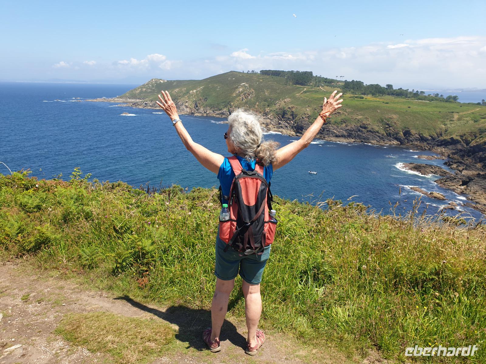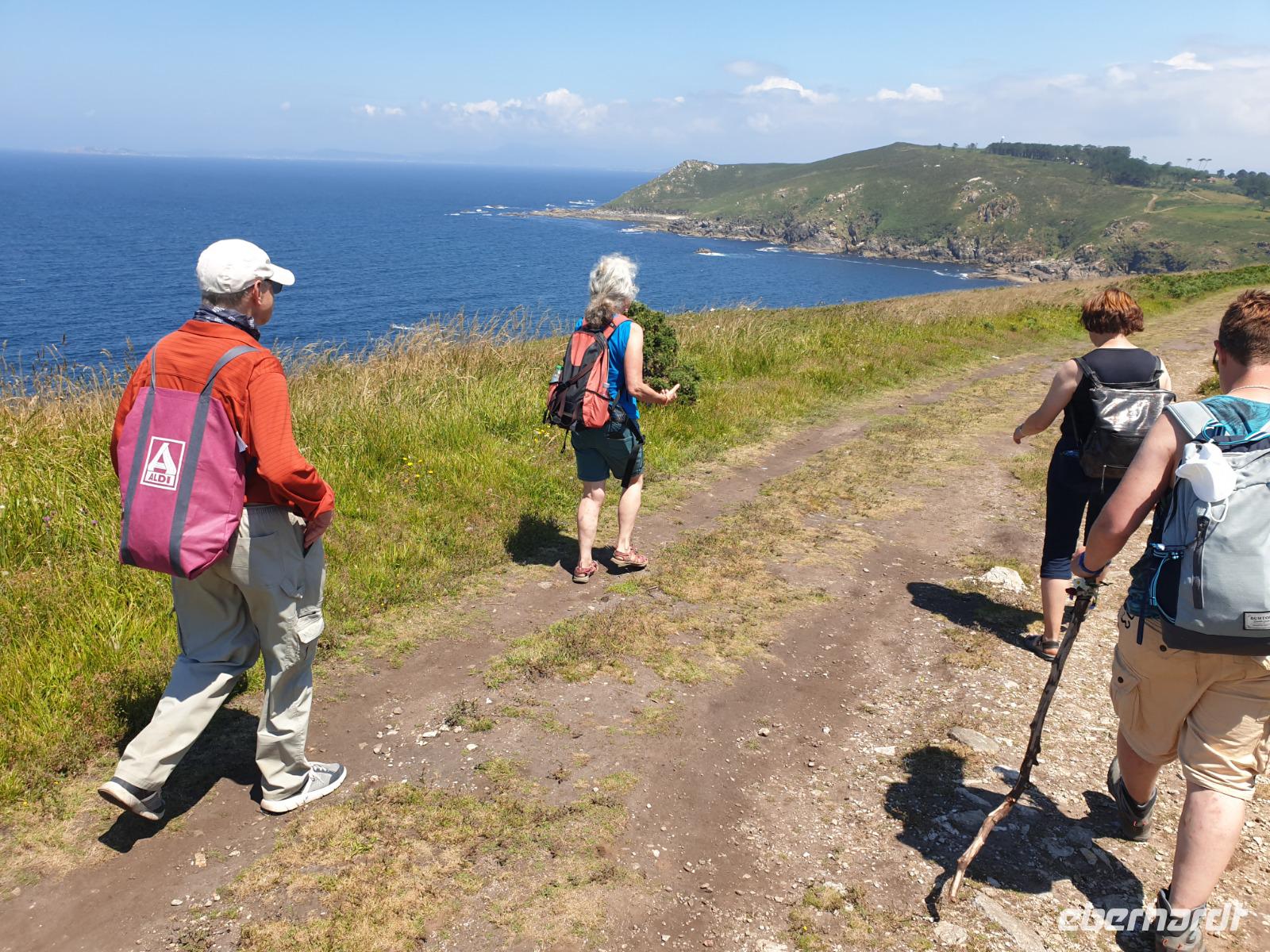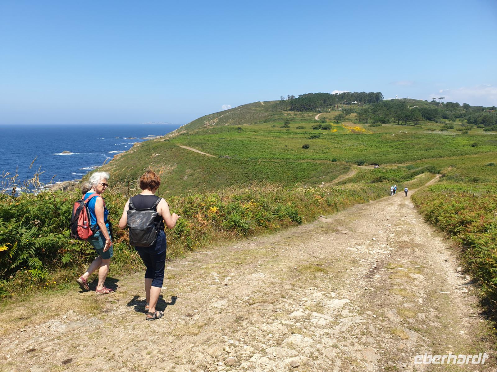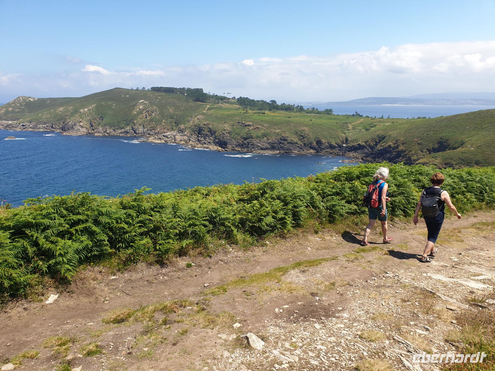 Heute früh fährt Benjamin kurz mit 3 Damen und Octavio nach Pontevedra um sich dort für Corona testen zu lassen. Positiv Nachrichten sind 3 mal negativ Wieder ins Hotel warte das Frühstück auf uns. Viele von uns nehmen bei dem fakultativen Tagesausflug mit Wanderung auf der Insel Ons im Nationalpark Illas Atlanticas teil. Wir fahren zu der Insel Ons. Es ist einfach toll diese neue Insel zu entdecken. Mit der Fähre "Piraten von Nabia" fahren wir 30 Minuten vom Hafen Portonovo auf die kleine Naturpark-Insel im Atlantik über. Sie gehört neben einigen anderen Inseln wie zum Beispiel Cies zum ältesten Nationalpark Galiciens. Der atlantische Nationalpark Illas Atlanticas beherbergt an Land ein reichhaltiges Ökosystem und das Wasser mit Dünen, Riffen, Felsenküsten und Wäldern umfasst über 8.000 Hektar. Bekannt ist die Insel Ons beispielsweise als Vogelreservat mit Komoranen, Reihern und Möwen. Gemeinsam und bei Kaiserwetter unternehmen wir eine tolle 2 stündige Wanderung. Uns gefällt es sehr, die Vogelwelt zu beobachten und nach dem Mittagessen einfach am Strand entlang zu spazieren oder zu baden. Das Meer ist herrlich, wie in der Karibik. Die Farbe des Wasser ist traumhaft. In einem Restaurant hatten wir auch ein leckeres Essen mit Reis typisch von hier, eine Art Paella mit frischem Fisch -und Meeresfrüchten. Lecker! Am Nachmittag verlassen wir mit der Fähre dieses kleine Paradies und kehren nach Poio auf das Festland von Nordspanien zurück. Noch vor unserem letzten gemeinsamen Abendessen gehen einige von uns an den wunderschönen weißen Sandstrand gegenüber dem Hotel und andere treffen sich auf der Terrasse vom Hotel mit anderen Gästen auf ein Plauderstündchen bei Kaffee, Kuchen oder Bier. Beim Essen lassen wir unsere erlebnisreiche Rundreise gemütlich ausklingen. Vorher hatte Eberhardt noch eine Überraschung auf der Terrasse vom Hotel oben um die ganze Reise im Kopf nochmal durchzugehen und mit Apfelwein zum letztes Mal anzustoßen.