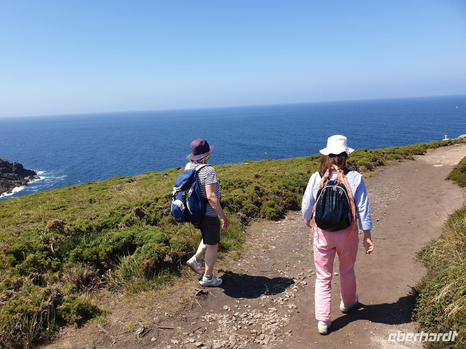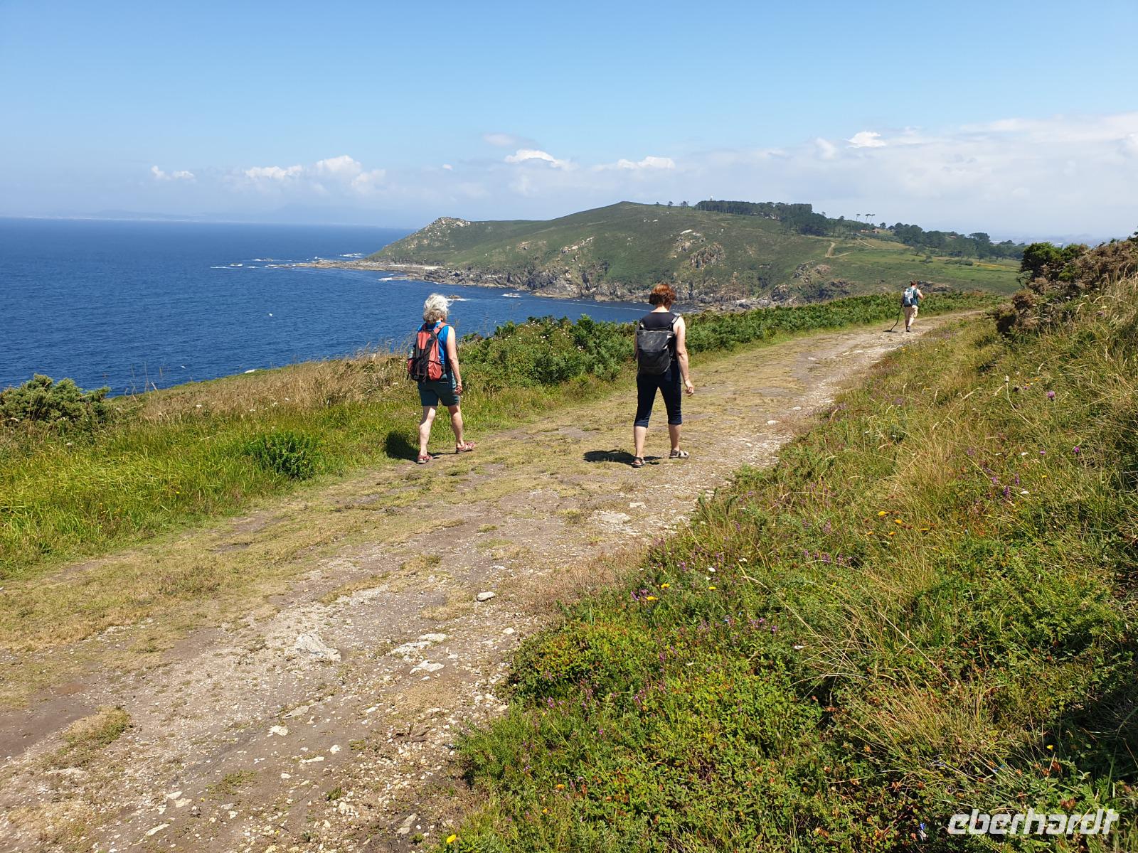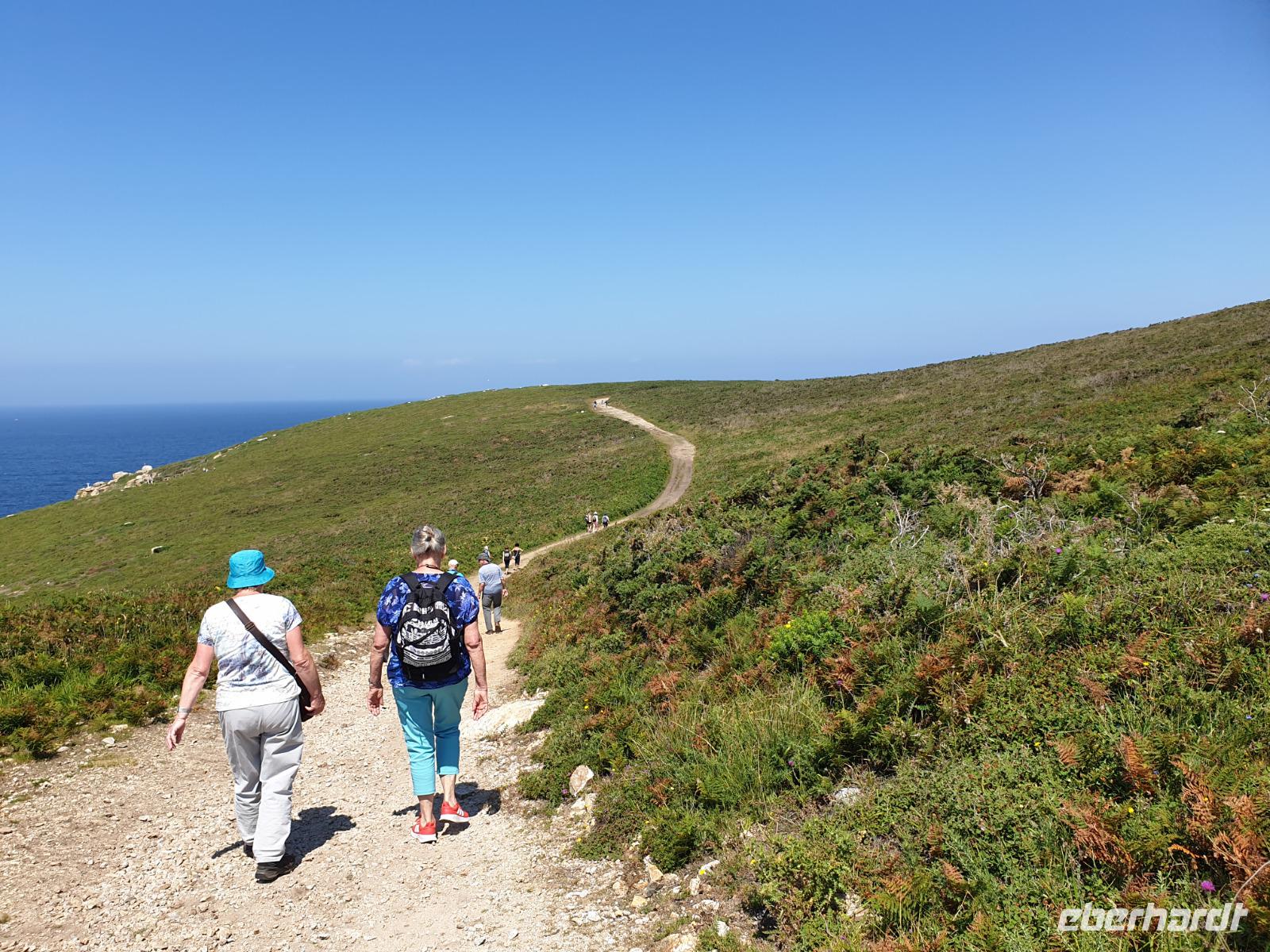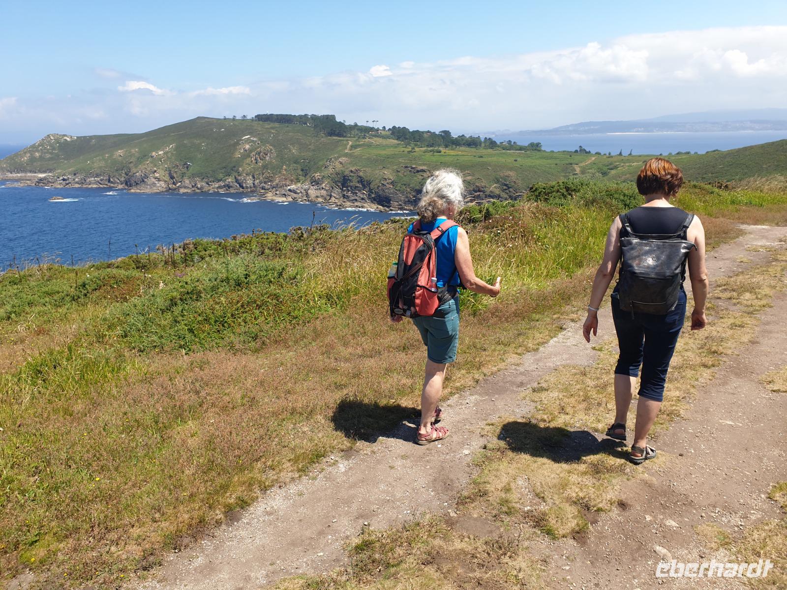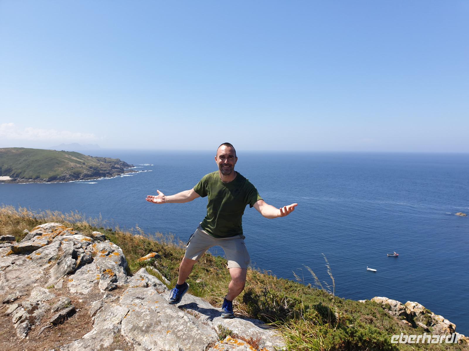 Heute früh fährt Benjamin kurz mit 3 Damen und Octavio nach Pontevedra um sich dort für Corona testen zu lassen. Positiv Nachrichten sind 3 mal negativ Wieder ins Hotel warte das Frühstück auf uns. Viele von uns nehmen bei dem fakultativen Tagesausflug mit Wanderung auf der Insel Ons im Nationalpark Illas Atlanticas teil. Wir fahren zu der Insel Ons. Es ist einfach toll diese neue Insel zu entdecken. Mit der Fähre "Piraten von Nabia" fahren wir 30 Minuten vom Hafen Portonovo auf die kleine Naturpark-Insel im Atlantik über. Sie gehört neben einigen anderen Inseln wie zum Beispiel Cies zum ältesten Nationalpark Galiciens. Der atlantische Nationalpark Illas Atlanticas beherbergt an Land ein reichhaltiges Ökosystem und das Wasser mit Dünen, Riffen, Felsenküsten und Wäldern umfasst über 8.000 Hektar. Bekannt ist die Insel Ons beispielsweise als Vogelreservat mit Komoranen, Reihern und Möwen. Gemeinsam und bei Kaiserwetter unternehmen wir eine tolle 2 stündige Wanderung. Uns gefällt es sehr, die Vogelwelt zu beobachten und nach dem Mittagessen einfach am Strand entlang zu spazieren oder zu baden. Das Meer ist herrlich, wie in der Karibik. Die Farbe des Wasser ist traumhaft. In einem Restaurant hatten wir auch ein leckeres Essen mit Reis typisch von hier, eine Art Paella mit frischem Fisch -und Meeresfrüchten. Lecker! Am Nachmittag verlassen wir mit der Fähre dieses kleine Paradies und kehren nach Poio auf das Festland von Nordspanien zurück. Noch vor unserem letzten gemeinsamen Abendessen gehen einige von uns an den wunderschönen weißen Sandstrand gegenüber dem Hotel und andere treffen sich auf der Terrasse vom Hotel mit anderen Gästen auf ein Plauderstündchen bei Kaffee, Kuchen oder Bier. Beim Essen lassen wir unsere erlebnisreiche Rundreise gemütlich ausklingen. Vorher hatte Eberhardt noch eine Überraschung auf der Terrasse vom Hotel oben um die ganze Reise im Kopf nochmal durchzugehen und mit Apfelwein zum letztes Mal anzustoßen.