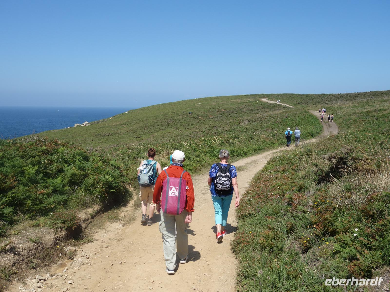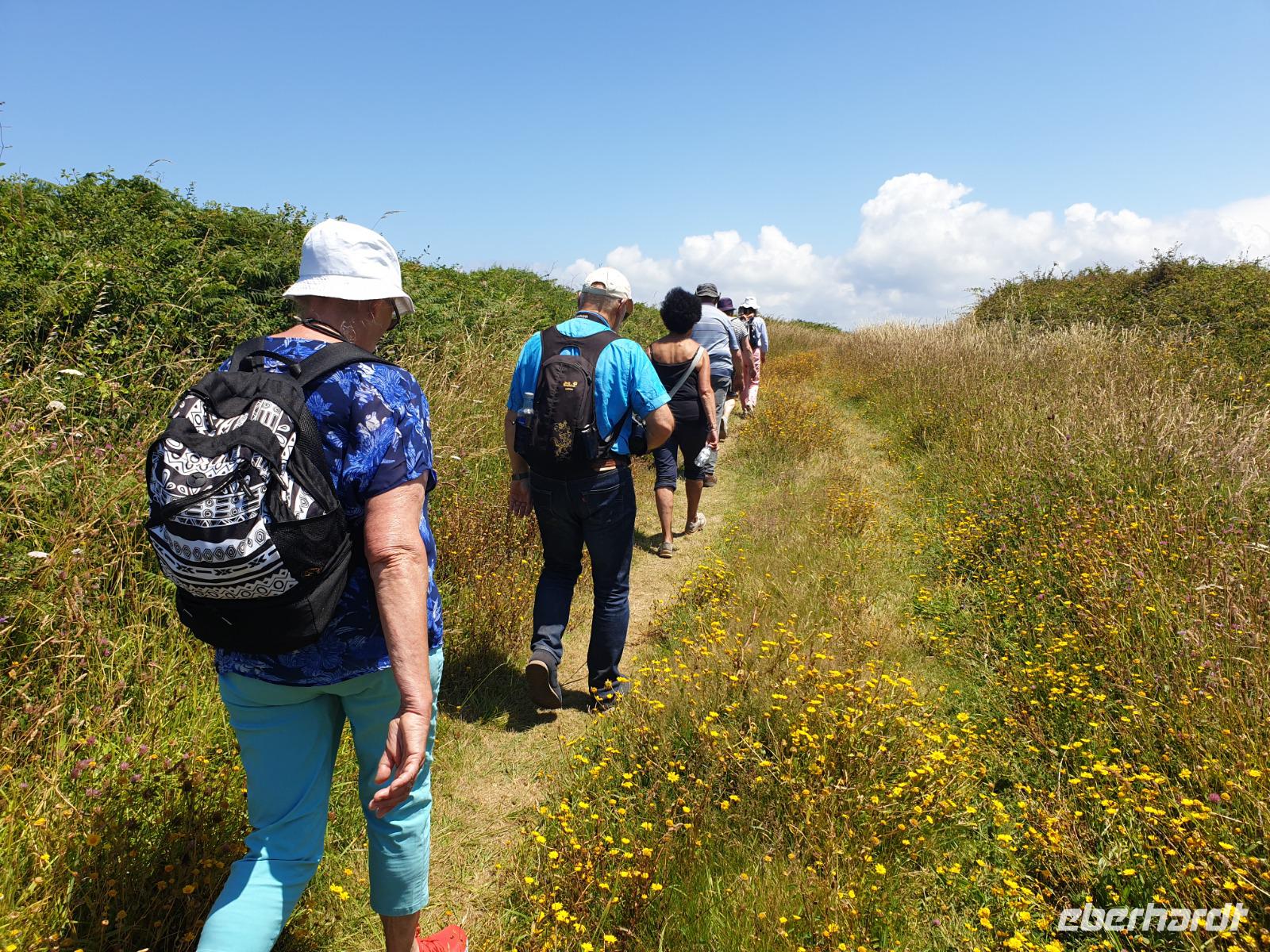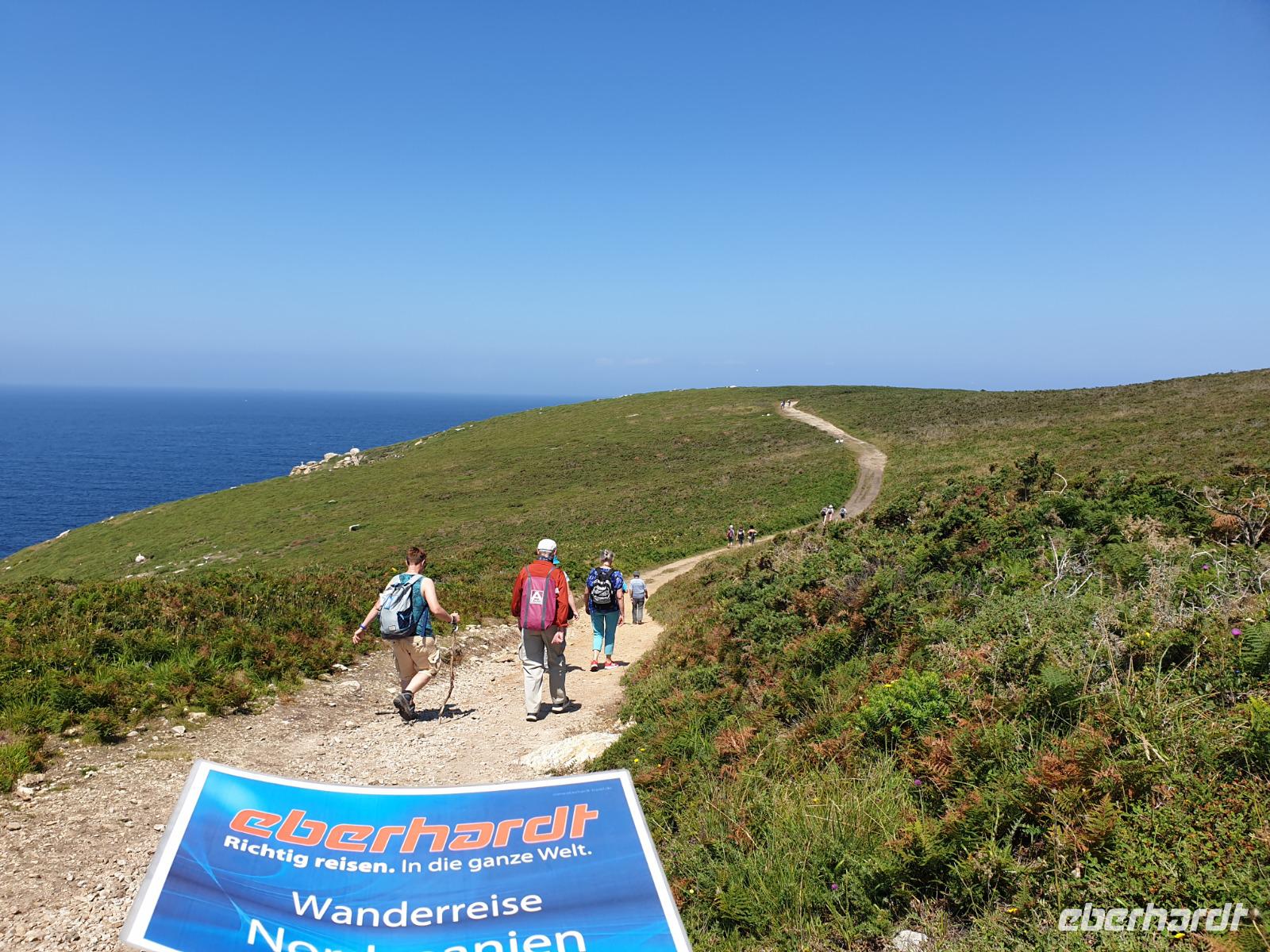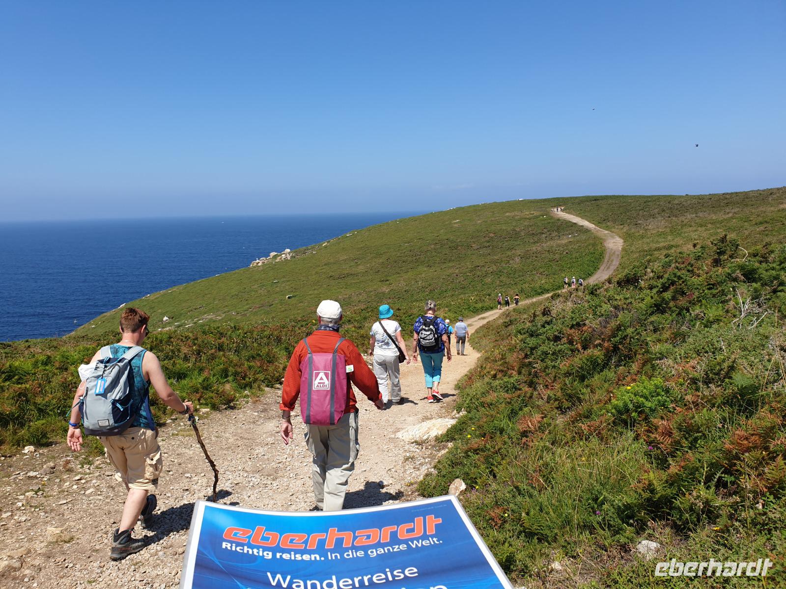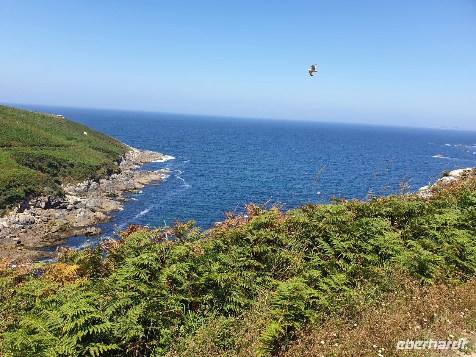 Heute früh fährt Benjamin kurz mit 3 Damen und Octavio nach Pontevedra um sich dort für Corona testen zu lassen. Positiv Nachrichten sind 3 mal negativ Wieder ins Hotel warte das Frühstück auf uns. Viele von uns nehmen bei dem fakultativen Tagesausflug mit Wanderung auf der Insel Ons im Nationalpark Illas Atlanticas teil. Wir fahren zu der Insel Ons. Es ist einfach toll diese neue Insel zu entdecken. Mit der Fähre "Piraten von Nabia" fahren wir 30 Minuten vom Hafen Portonovo auf die kleine Naturpark-Insel im Atlantik über. Sie gehört neben einigen anderen Inseln wie zum Beispiel Cies zum ältesten Nationalpark Galiciens. Der atlantische Nationalpark Illas Atlanticas beherbergt an Land ein reichhaltiges Ökosystem und das Wasser mit Dünen, Riffen, Felsenküsten und Wäldern umfasst über 8.000 Hektar. Bekannt ist die Insel Ons beispielsweise als Vogelreservat mit Komoranen, Reihern und Möwen. Gemeinsam und bei Kaiserwetter unternehmen wir eine tolle 2 stündige Wanderung. Uns gefällt es sehr, die Vogelwelt zu beobachten und nach dem Mittagessen einfach am Strand entlang zu spazieren oder zu baden. Das Meer ist herrlich, wie in der Karibik. Die Farbe des Wasser ist traumhaft. In einem Restaurant hatten wir auch ein leckeres Essen mit Reis typisch von hier, eine Art Paella mit frischem Fisch -und Meeresfrüchten. Lecker! Am Nachmittag verlassen wir mit der Fähre dieses kleine Paradies und kehren nach Poio auf das Festland von Nordspanien zurück. Noch vor unserem letzten gemeinsamen Abendessen gehen einige von uns an den wunderschönen weißen Sandstrand gegenüber dem Hotel und andere treffen sich auf der Terrasse vom Hotel mit anderen Gästen auf ein Plauderstündchen bei Kaffee, Kuchen oder Bier. Beim Essen lassen wir unsere erlebnisreiche Rundreise gemütlich ausklingen. Vorher hatte Eberhardt noch eine Überraschung auf der Terrasse vom Hotel oben um die ganze Reise im Kopf nochmal durchzugehen und mit Apfelwein zum letztes Mal anzustoßen.