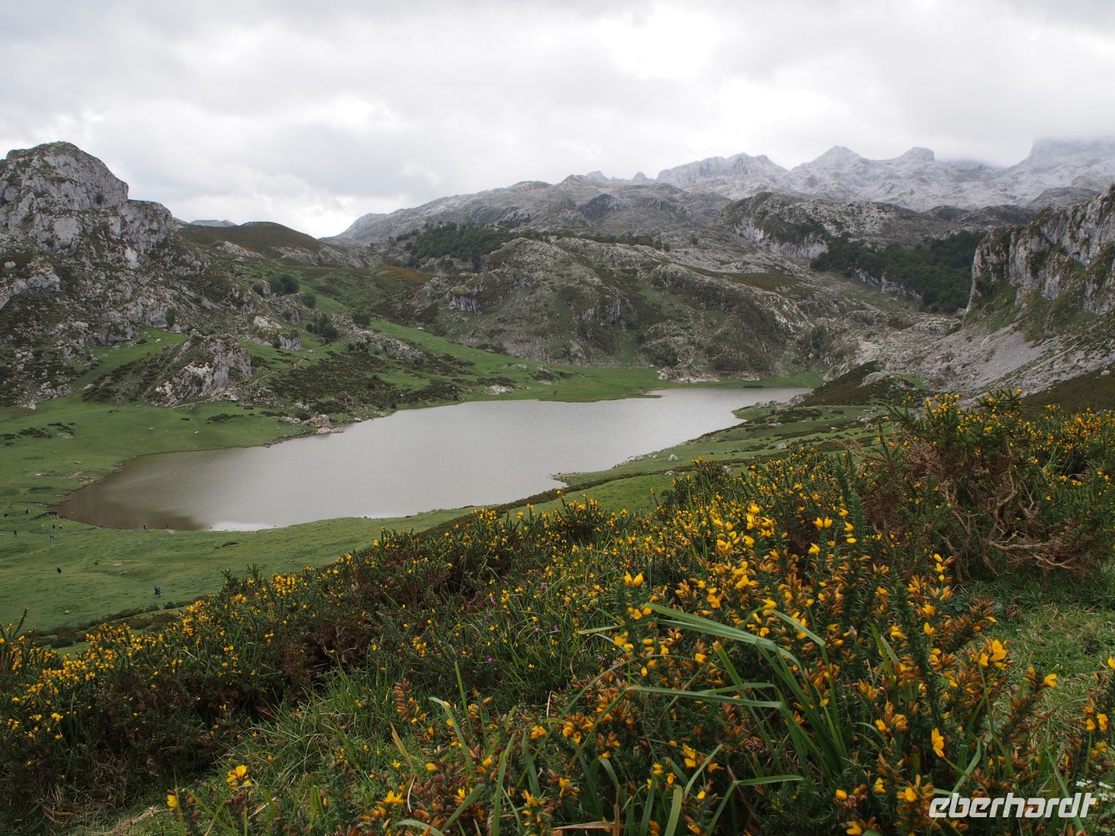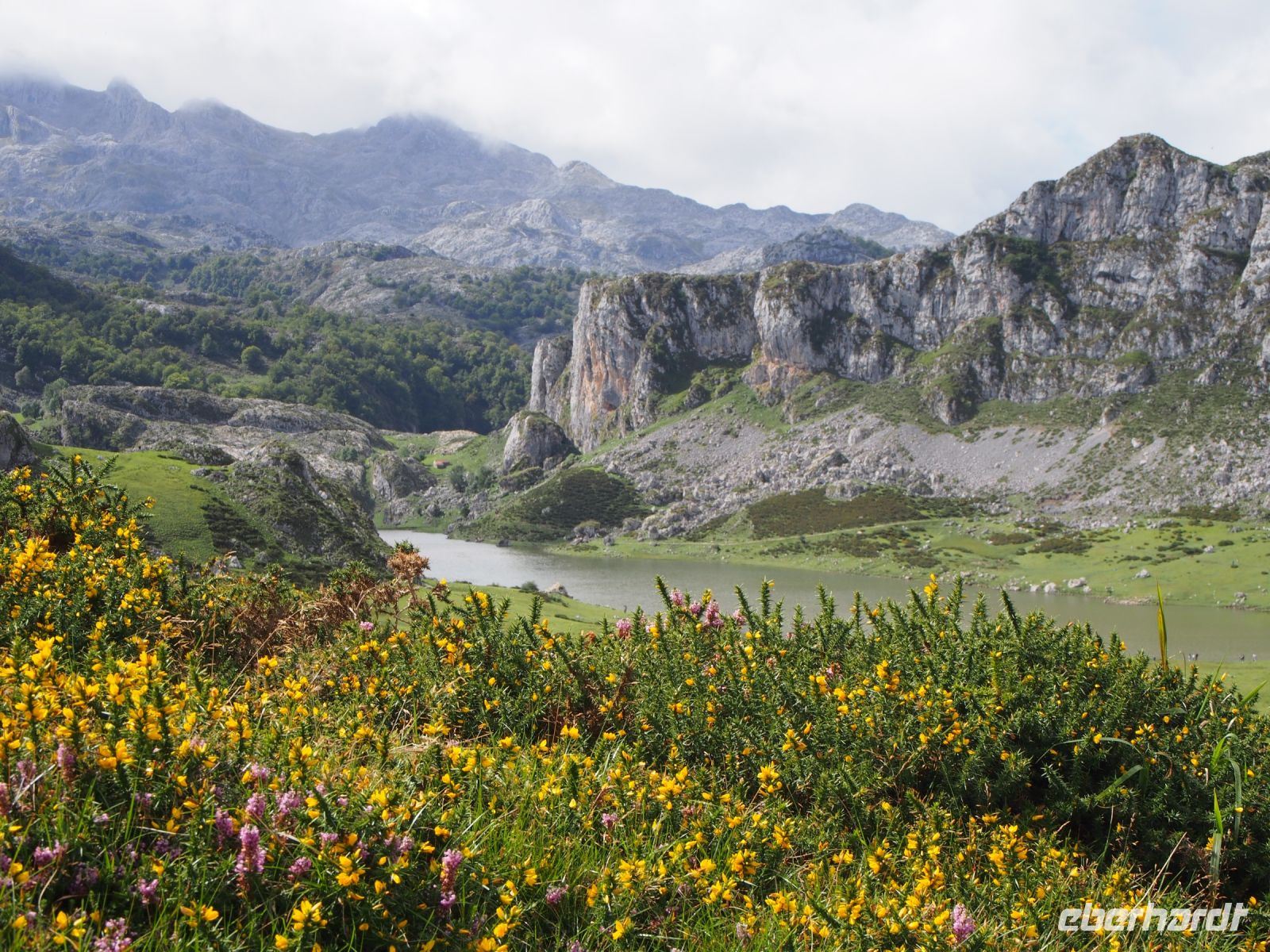 Das eigentliche Highlight folgt allerdings noch: im Kleinbus fahren wir die Serpentinenstraßen weiter hinauf bis auf 1.100 Meter. Dort, mitten im Nationalpark, liegen, getrennt durch einen kleinen Berg, pittoresk die beiden Seen Enol und Ercina, die durch Gletscherauswaschungen in der letzten Eiszeit entstanden sind.