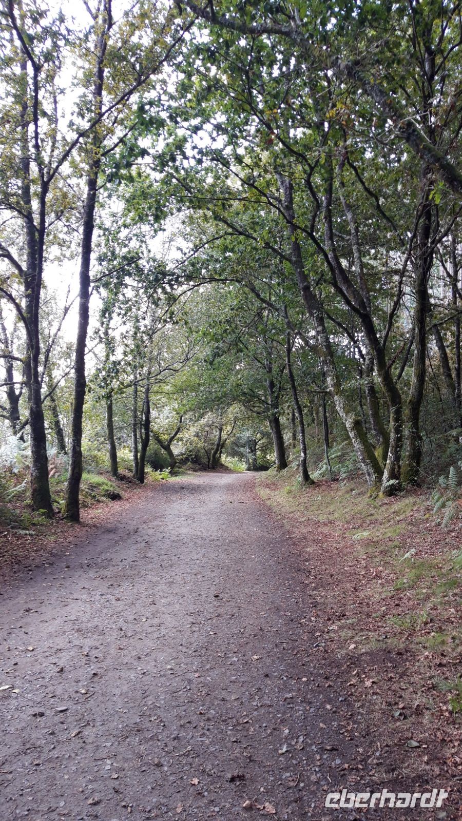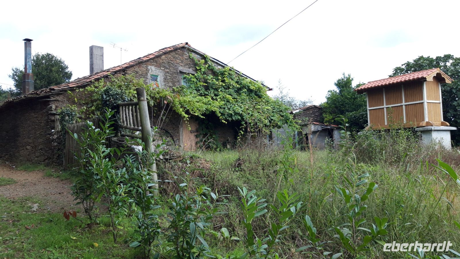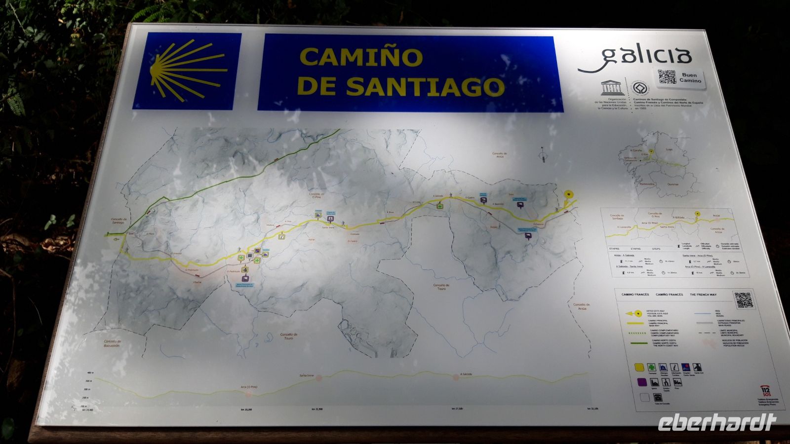 Also, so ganz echte Pilger sind wir nicht, aber trotzdem muss man sich ja ins Bild einfügen. Mit Rucksäcken und Funktionskleidung sind wir schon ausgestattet, auch Wanderstöcke haben schon einige dabei – also fehlt nur noch die Jakobsmuschel sowie eine Wegbeschreibung zum Hotel mit Streckenabschnitten, falls man das Bedürfnis hegt wieder auf die Gruppe zu treffen, und dann kann es auch schon losgehen: ¡Buen camino! In Arzúa verlassen wir den Bus (bis auf drei etwas müde Pilger, die beschlossen haben die Strecke zu halbieren), und folgen der Straße durch den Ort, bis wir schließlich links auf einen Feldweg abbiegen können und dort den ersten richtigen Kilometerstein finden. Noch 18 Kilometer. Der Weg lässt sich wirklich gut gehen und führt durch kleine Eichen- und Eukalyptuswälder, vorbei an Maisfeldern und durch kleine Dörfchen. Das Wetter spielt wunderbar mit, es herrschen angenehme 20 Grad und der Himmel ist leicht bewölkt. Der einzige Wermutstropfen ist, dass fast alle Pilgerherbergen geschlossen haben, und wir einige Kilometer zurücklegen müssen, bis wir eine Rast einlegen können. Erst kurz vor dem Ziel ereilt uns dann ein kurzer Regenguss, aber wir verbuchen das als Quotenregen, und legen die letzten Meter nun eben mit Regenjacke zurück.