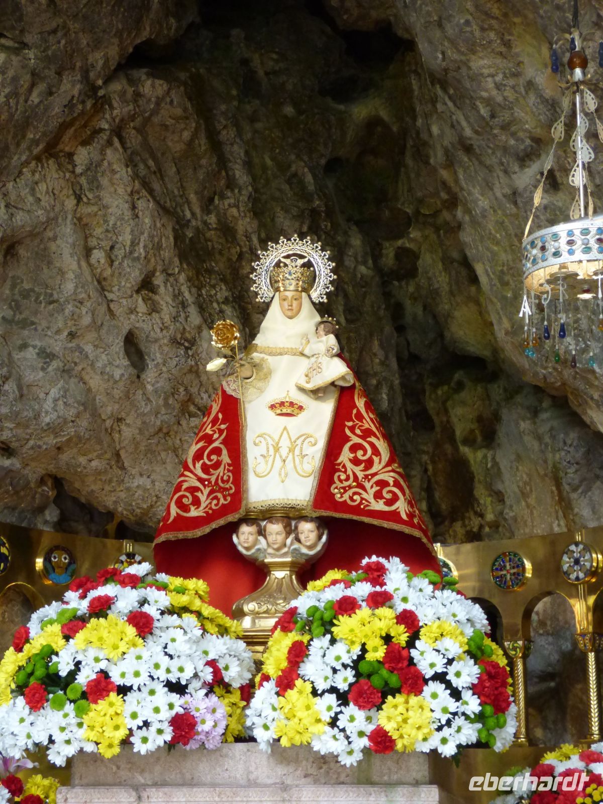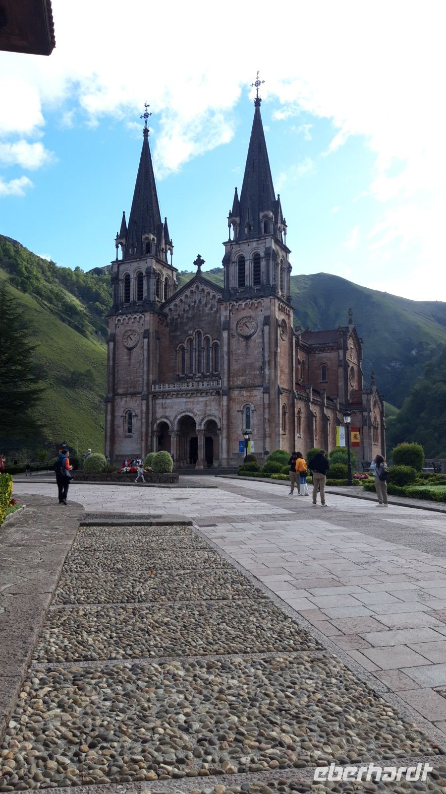 Dann geht es weiter nach Covadonga. Der Wallfahrtsort mitten in den Bergen ist schon seit Jahrhunderten wichtiger Anlaufpunkt der Jakobspilger auf dem Camino del Norte. Hier soll es zudem gewesen sein, wo der Gotenfürst Pelayo sich 722 erfolgreich gegen die maurischen Besatzer aufgelehnt hat und somit den Anfang der Reconquista, sowie das Königreich Asturien begründete. Wie sich die Begebenheit tatsächlich zugetragen hat, das kann heute keiner mehr nachvollziehen, sicher ist nur, dass sich die christliche und die maurische Version der Geschichte doch deutlich voneinander unterscheiden. Wie auch immer die Wahrheit gewesen sein mag, die wundertätige Jungfrauendarstellung wird auch von uns begutachtet, genauso wie die zugehörige neuromanische Kirche, die im 19. Jahrhundert aufgrund des erhöhten Pilgeraufkommens erbaut wurde.