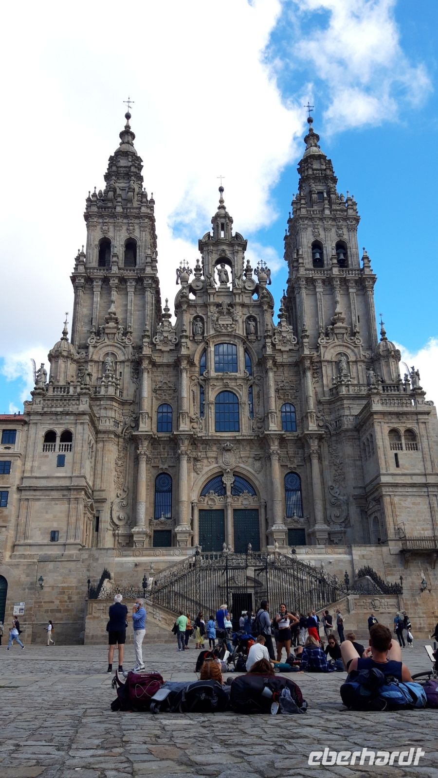 Auf dem Weg hat sich die Gruppe ungeplant wieder voneinander getrennt und so folgt zunächst einiges Suchen, bevor wir dann gemeinsam durch durch die Pilgerpforte die Praza do Obradorio vor der Kathedrale betreten. Und obwohl wir keine echten Pilger sind, ist das Gefühl Teil eines großen Ganzen zu sein doch sehr überwältigend.