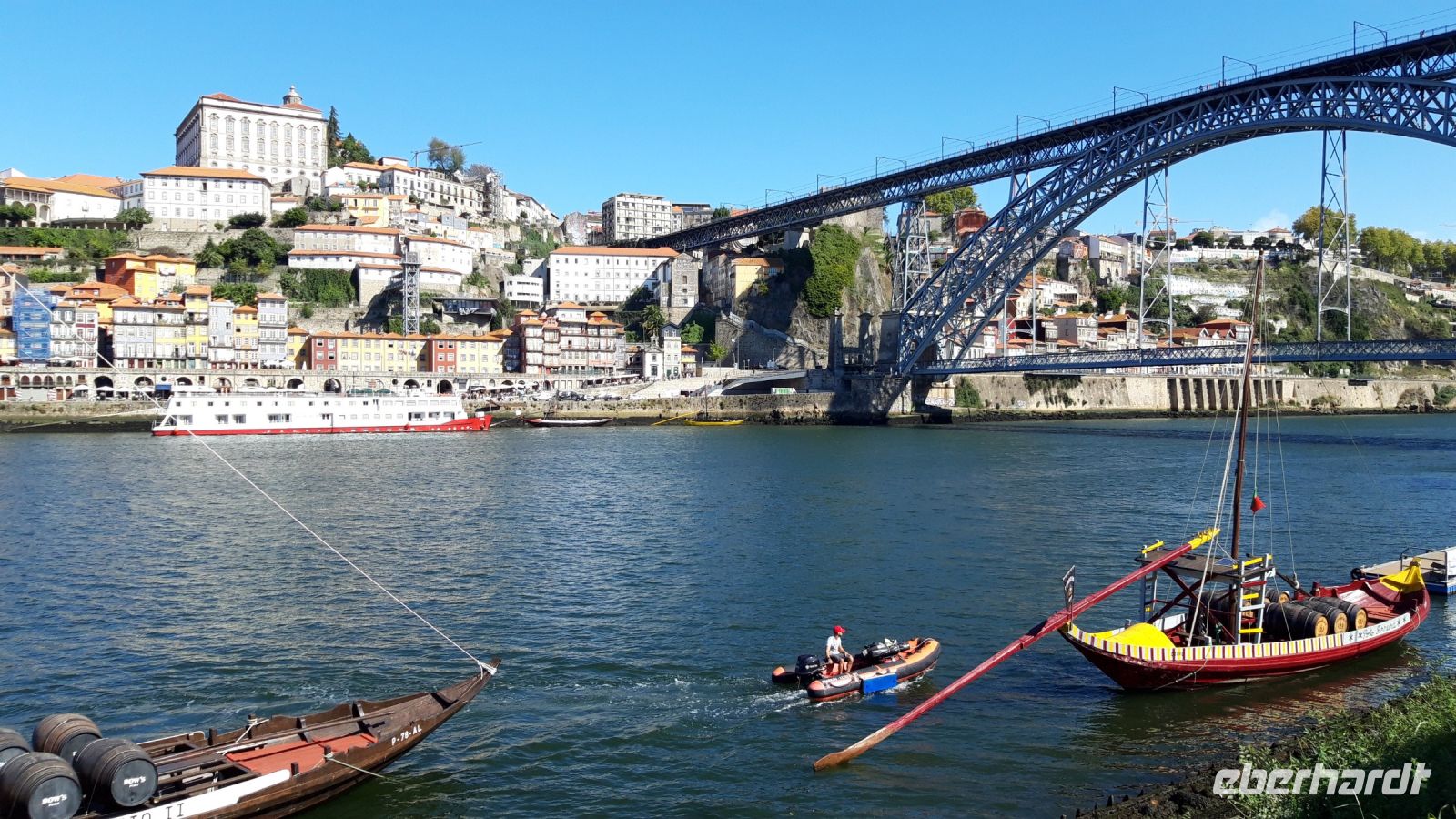 Die Hafenstadt am Fluss Duoro findet ihre Ursprünge in der Eisenzeit und wurde später sowohl von griechischen als auch von römischen Handelsflotten als Stützpunkt genutzt. Im 18. Jahrhundert wurde Porto durch den Portweinhandel mit England reich und mächtig. Bis heute reihen sich die Handelshäuser in Vila Nova de Gaia am Ufer des Duoro und auch wenn die Rabelo-Boote heute nicht mehr für den Transport benutzt werden, geben sie ein sehr schönes Fotomotiv ab.
