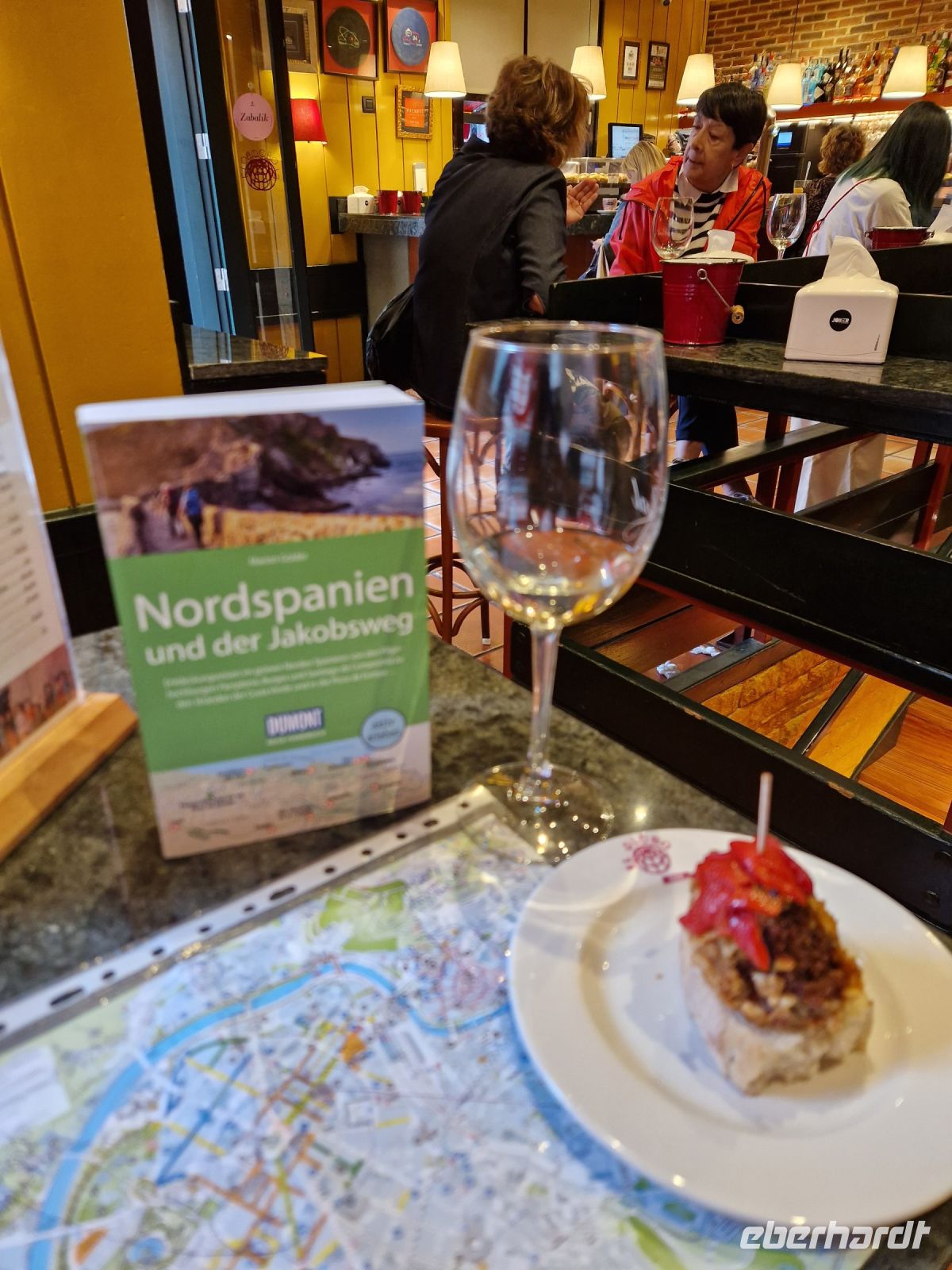 Zurück ins Hotel Conde Duque angekommen, gehen wir gemeinsam zu Fuß zum Restaurant nicht weit vom Hotel. Heute ist Wilkommensabendessen. Abends schlendern wir dann zusammen durch die Innenstadt und kehren zu einem typisch spanischen Abendessen mit Tapas und einem Glas Txacoli Wein ein. Natürlich guten Wein, der auf dieser Reise nicht fehlen wird;) Besonders hier ist dieser Txacoli Wein. Es handelt sich um einen tollen typischen Weißwein aus der Baskenland Region. Wir stoßen gemeinsam auf die Reise an.