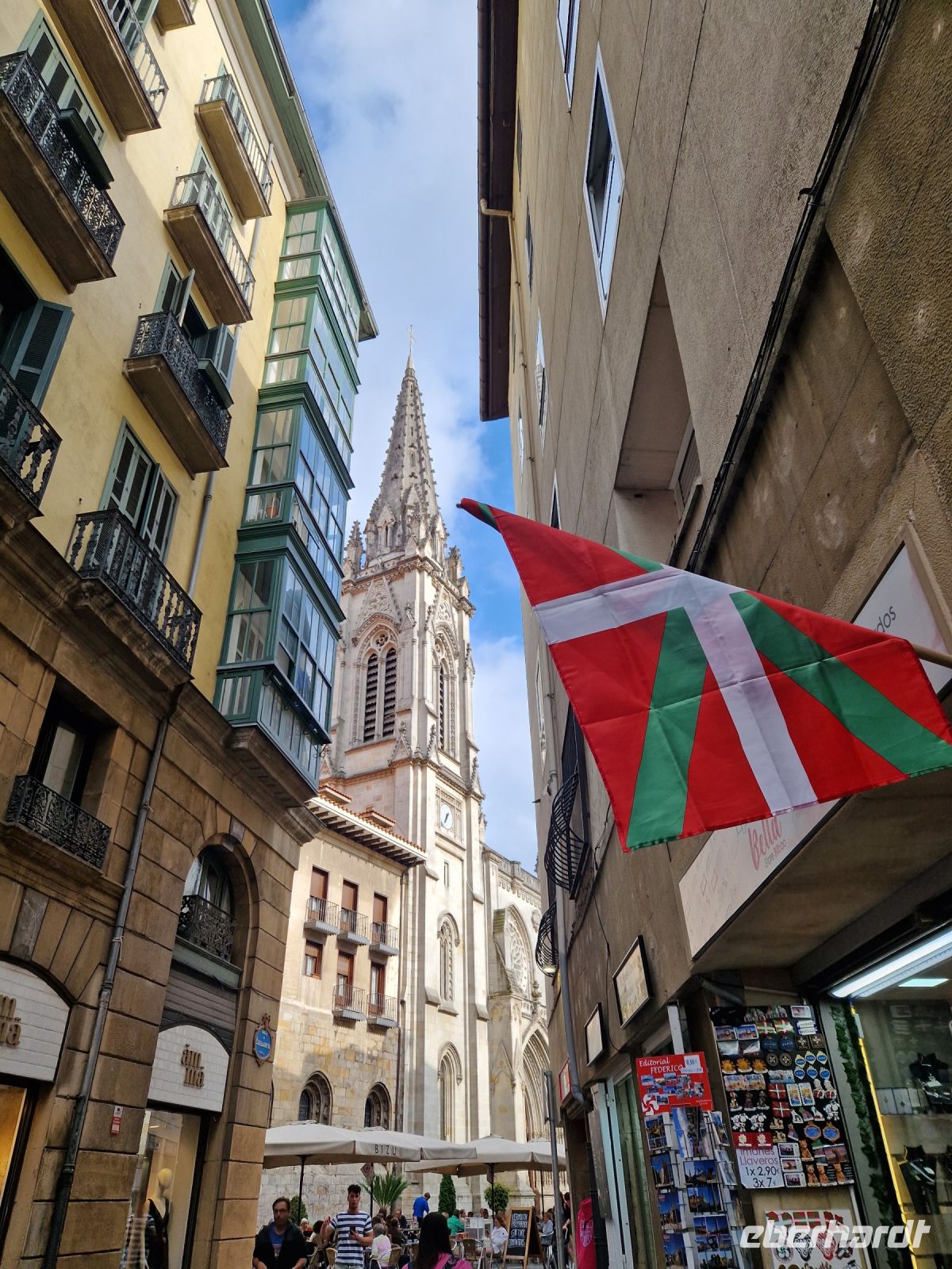 Dann in ehemaligen Kulturhauptstadt San Sebastian, werden wir in Ruhe uns die Altstadt erkunden. Hier in die Parte Vieja genannt gibt es viele bekannten Touristenattraktionen wie zum Beispiel Kongresshalle oder Kursaal, wo das Film-Festival und Preis-Verleihung jedes Jahr stattfindet. Letztes Jahr wurde San Sebastian zur Kulturhauptstadt Europas 2017 gewählt. In die Altstadt besichtigen wir 2 schöne Kirchen. Bei einer Kirche sang Benjamin ein paar Lieder für die Gruppe da hier die Akustik ist einfach top. Nach der Besichtigung der schönen Kirchen Santa Maria del Coro, San Vicente und die Markthalle „La Bretxa“ organisiert Benjamin ein Tapas-Picknick mit Käse, Schinken und Chorizo. Heute werden wir weiter sehen was Tapas und "picotear" bedeutet – zusammen mit Gazpacho. Lecker, oder? Und alles ans Meer. Unvergesslich.