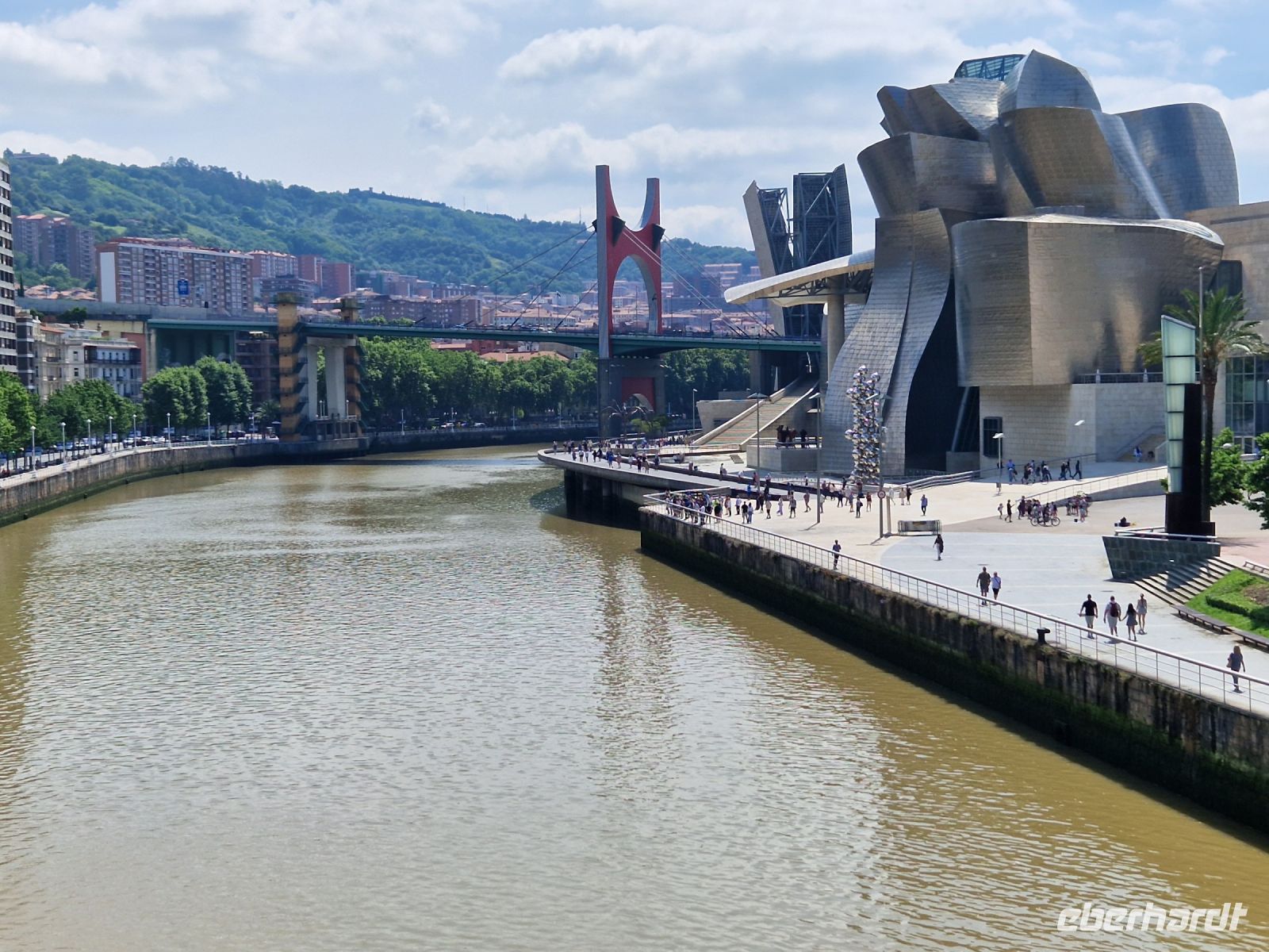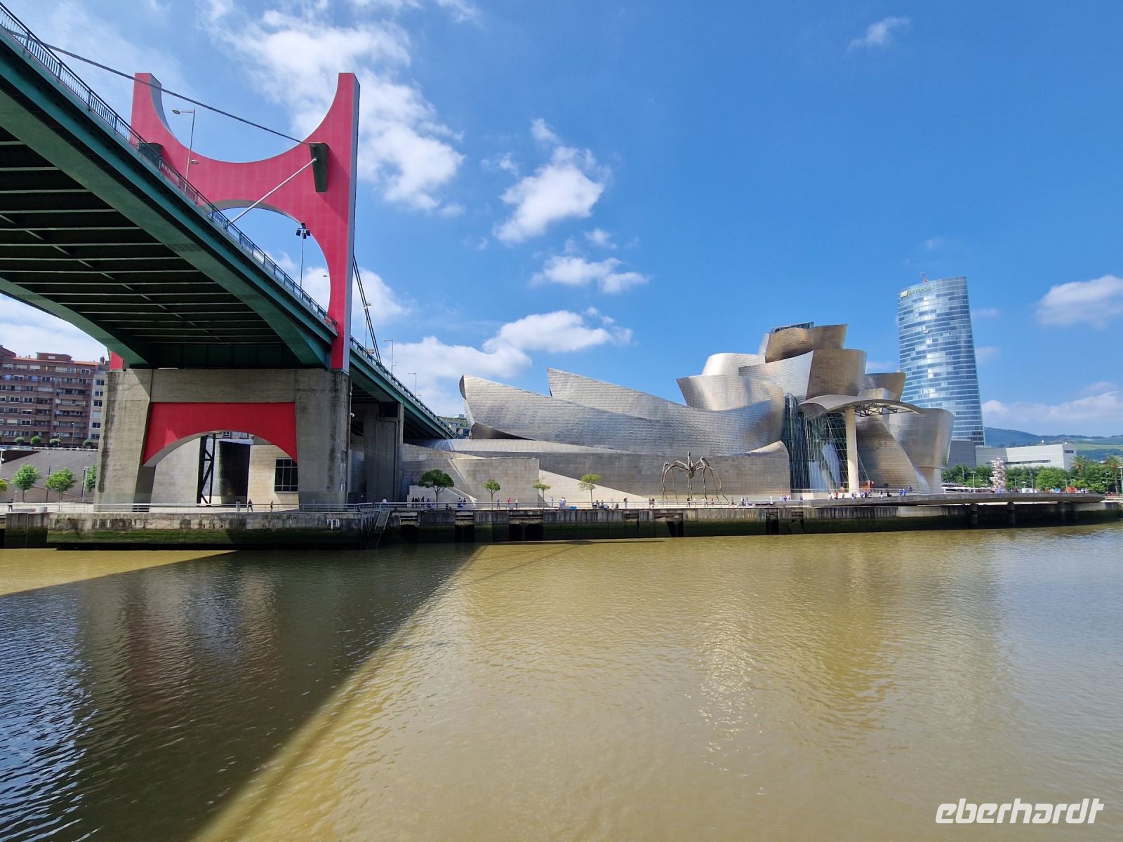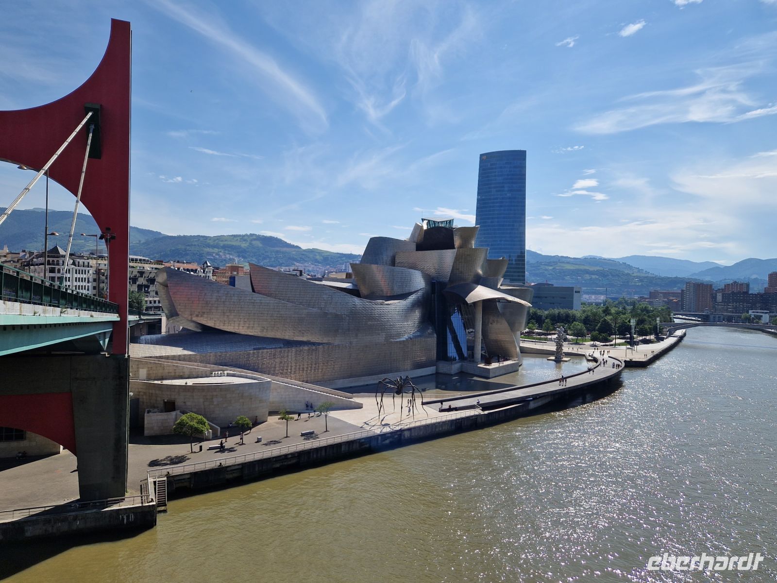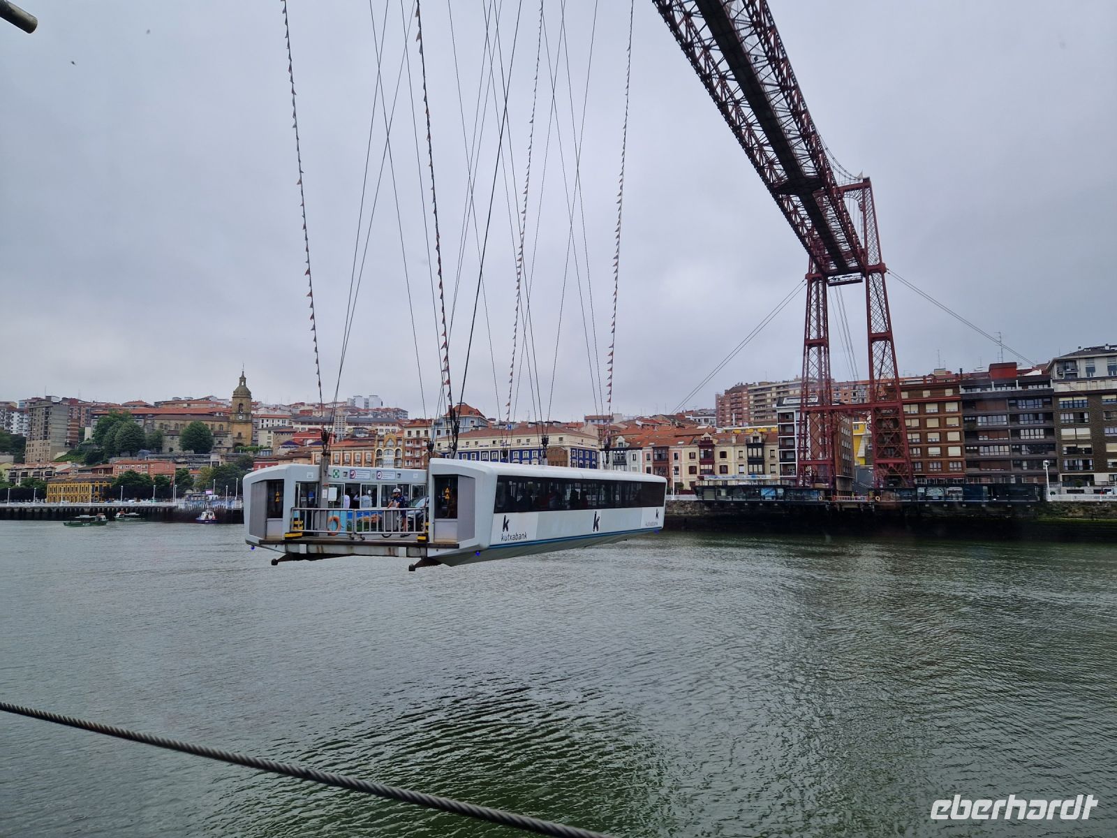 Nach dem Frühstück haben wir wieder eine Überraschung und bevor wir Bilbao verlassen, besichtigen wir die die älteste Schwebefähre der Welt, die Brücke von Biskaya (UNESCO Weltkulturerbe). Die wurde 1893 eingeweiht und ist heute noch voll in Betrieb ist und jedes Jahr an die sechs Millionen Reisende befördert. Diese Flussbrücke über den Nervión ist 160 m lang und 45 m hoch und verbindet die Ortschaften Getxo und Portugalete miteinander.