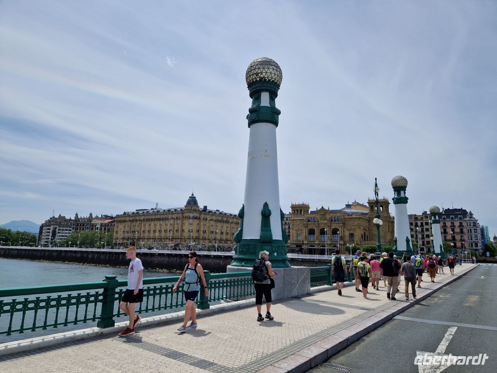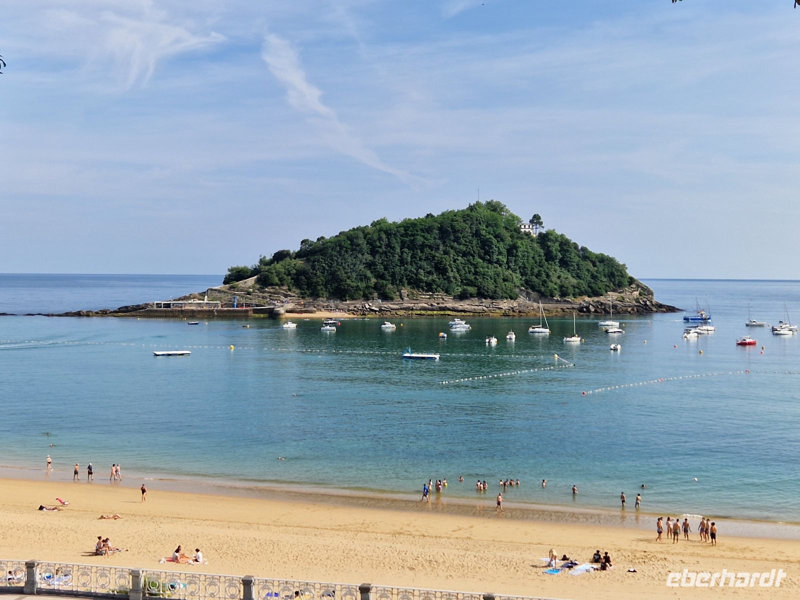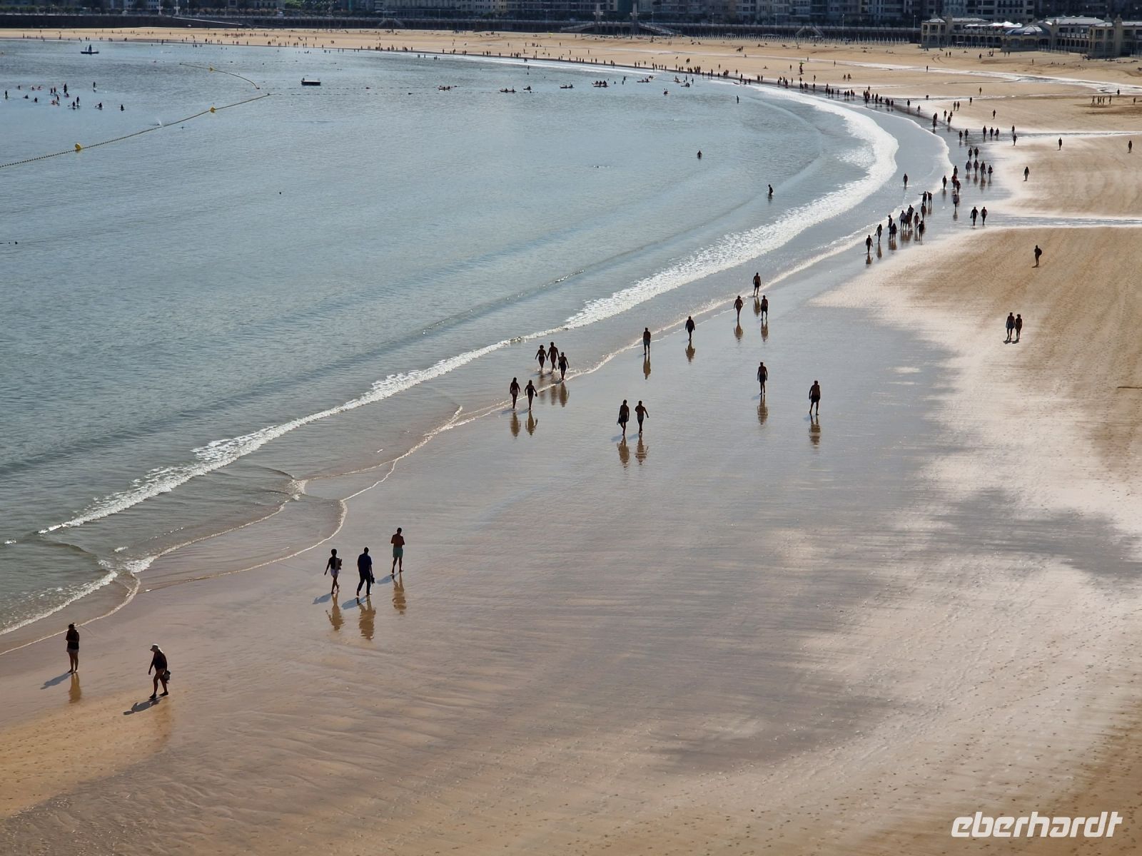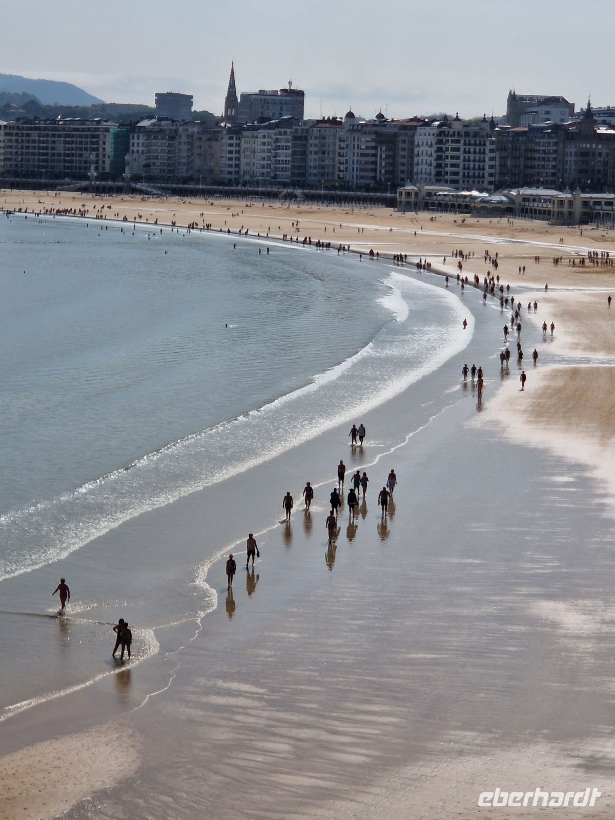 Bei dem ersten Spaziergang entlang dieses weitläufigen Bogens von der La Concha (oder Die Muschel) genannten Bucht mit der ca. 1.350 Meter langen Strandpromenade, gehen fast wir alle ohne Schuhe immer am Meer entlang. Wir gehen gemeinsam von links nach rechts den ganzen und einen der bekanntesten Stadtstrände in Europa entlang und lernten dabei so eine der schönsten spanischen Städte am Meer kennen.