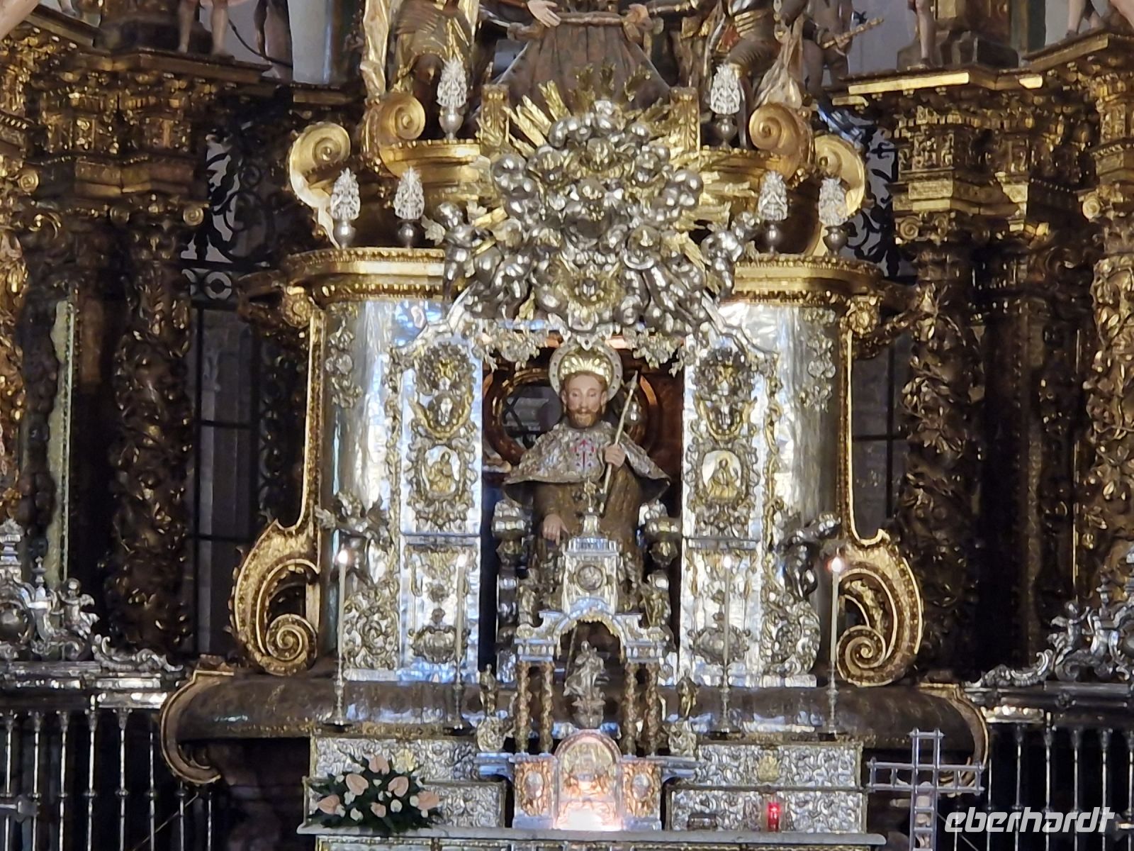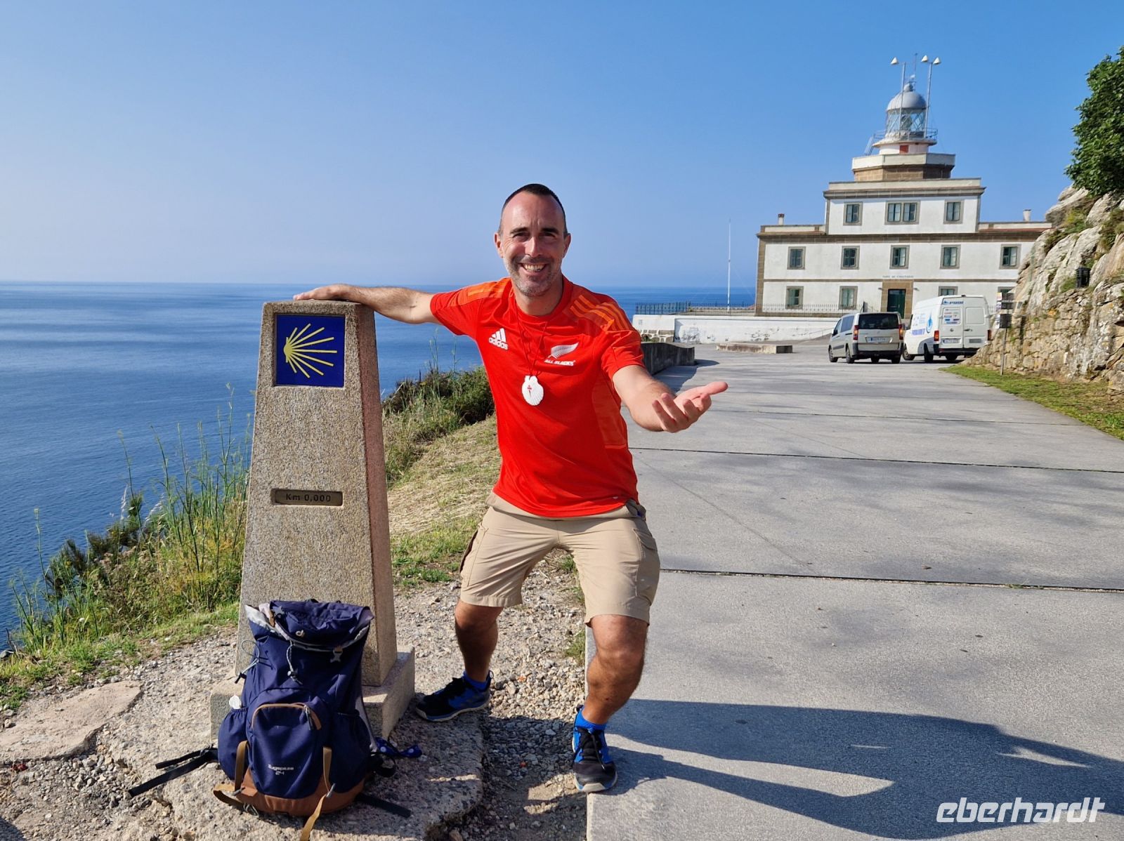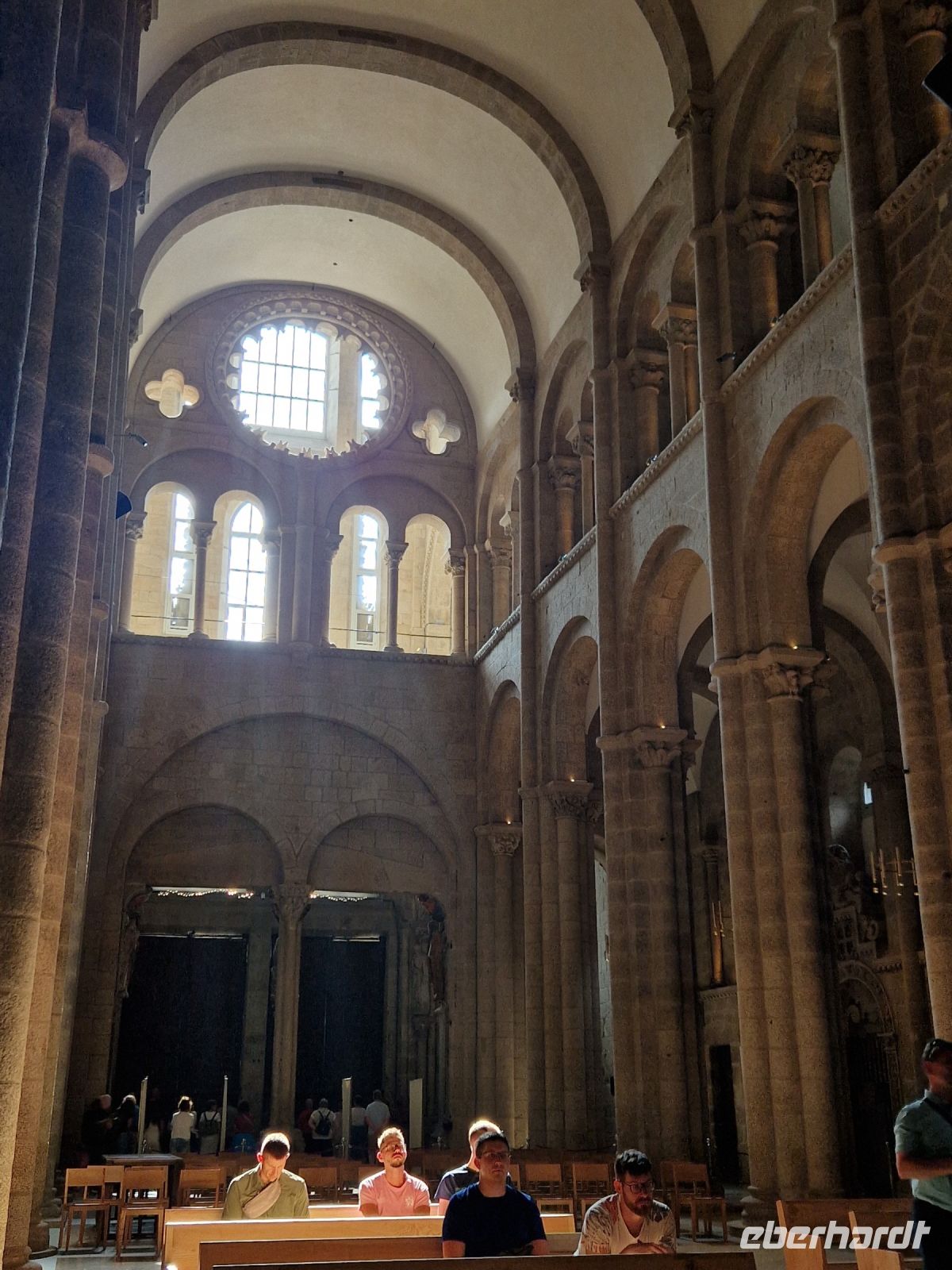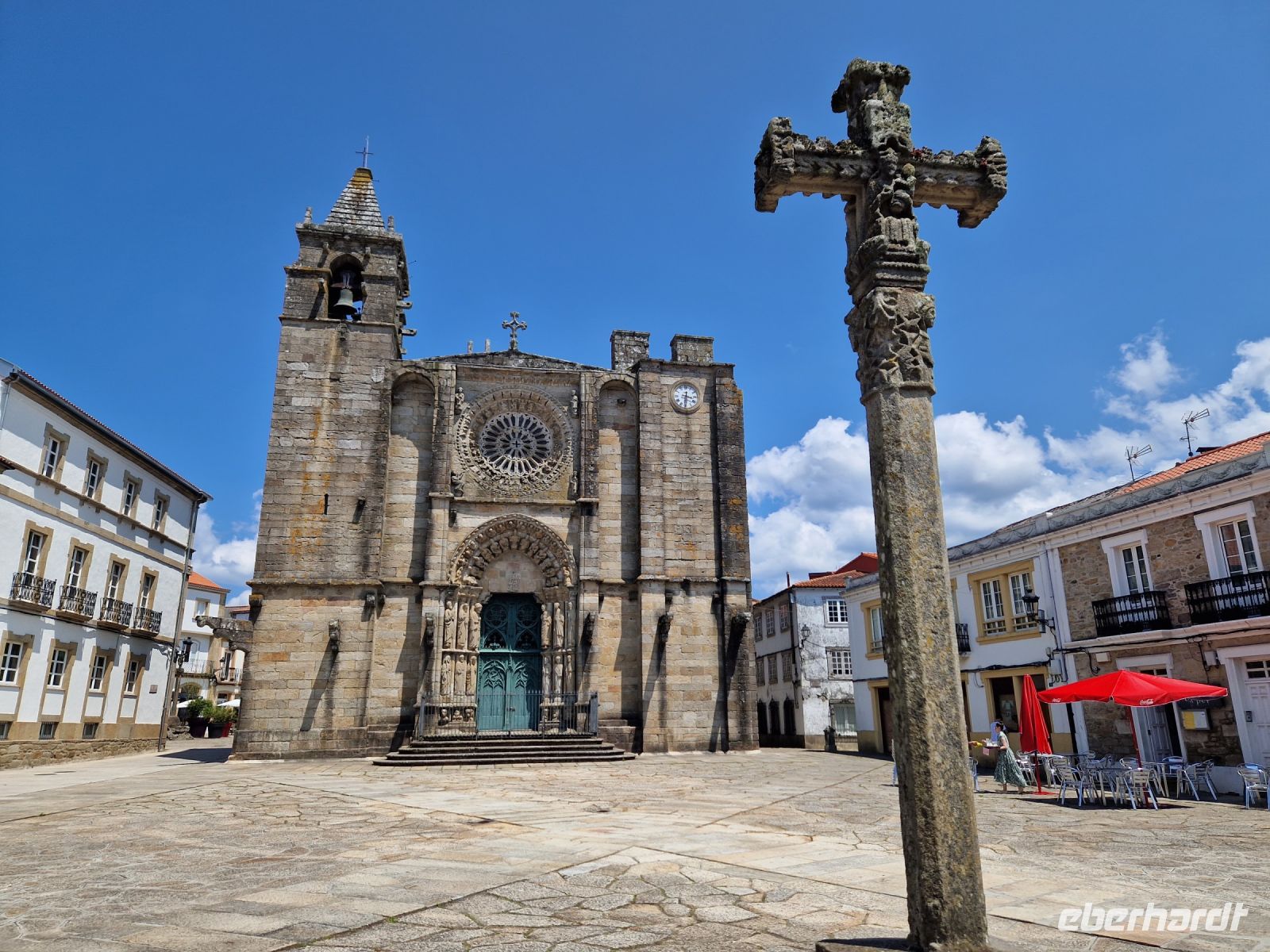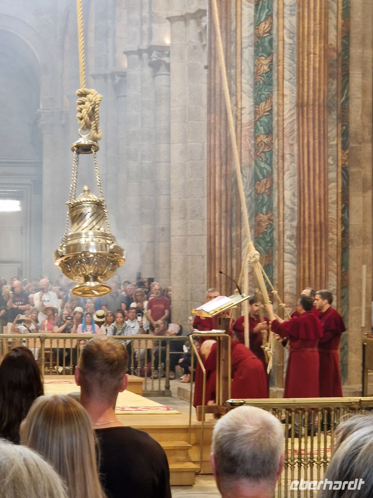 Wir haben unser Ziel erreicht und hören schon die Glocken der Kathedrale. Wir besichtigten die Kathedrale und umarmten den Apostel laut der Tradition und alle von uns bleiben um 12 Uhr da um die Pilgermesse zu hören. Wir hatten dieser Termin wieder Glück da heute am Ende der Messe an der Kathedrale von Santiago de Compostela können wir das größte Weihrauchfass der Welt, den Botafumeiro, erstaunen. Man hat weinend zugehört und Tränen gesehen, aber alle volle Freude und Zufriedenheit. Was für eine Ruhe hier. Später bei einer Stadtbesichtigung erkunden wir weiter auch die Altstadt von Santiago de Compostela, die neben der Kathedrale und dem Jakobsweg natürlich auch zum Weltkulturerbe der UNESCO gehört. Eberhardt Travel hat auch heute eine Überraschung und besorgte für alle Gäste einem Ribeiro Glas Weißwein um zu feiern, dass man bis hier her es geschaffen hat.