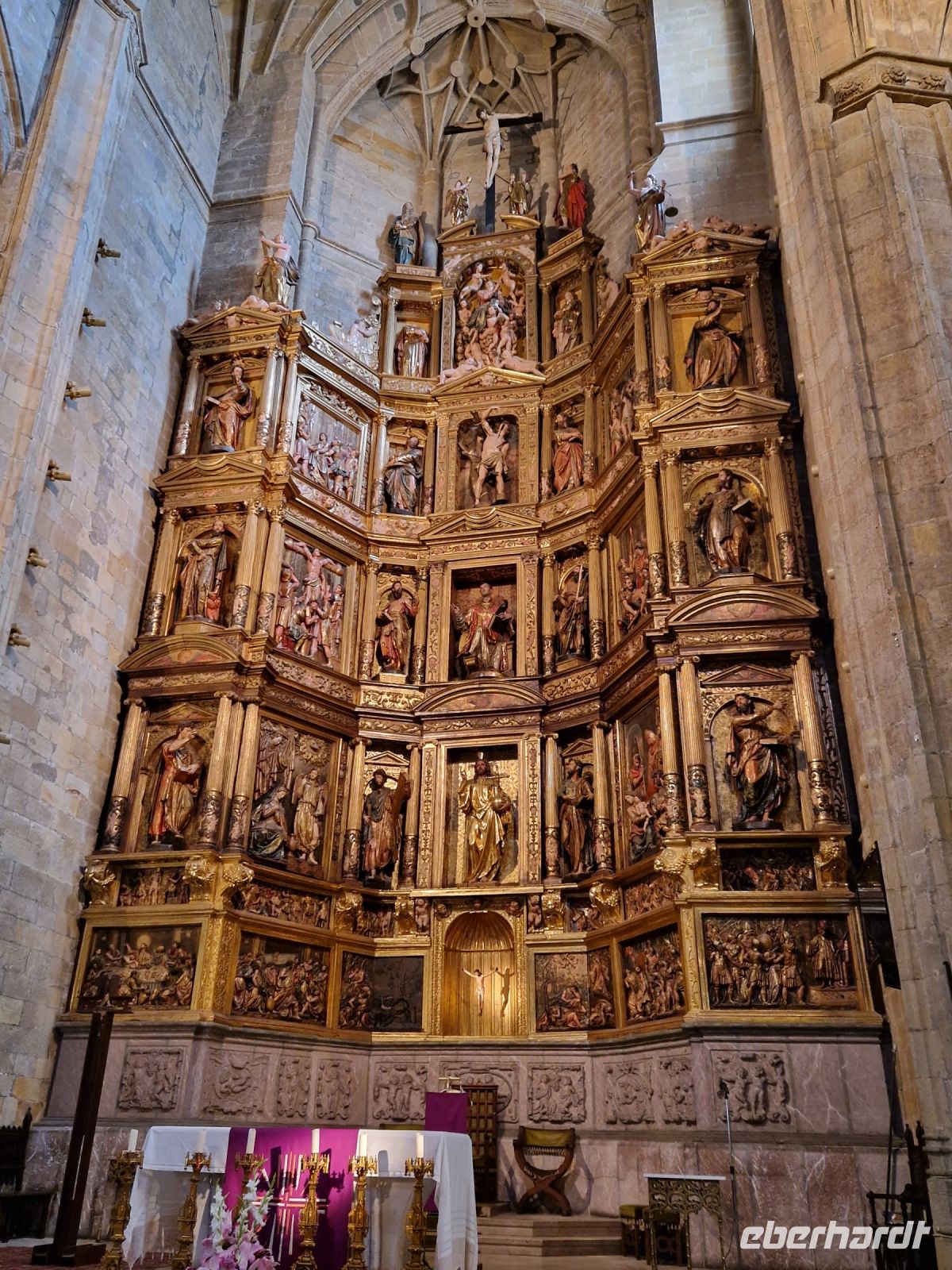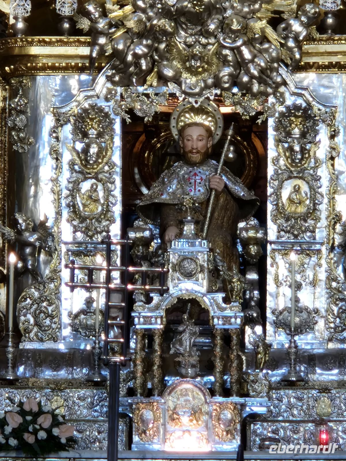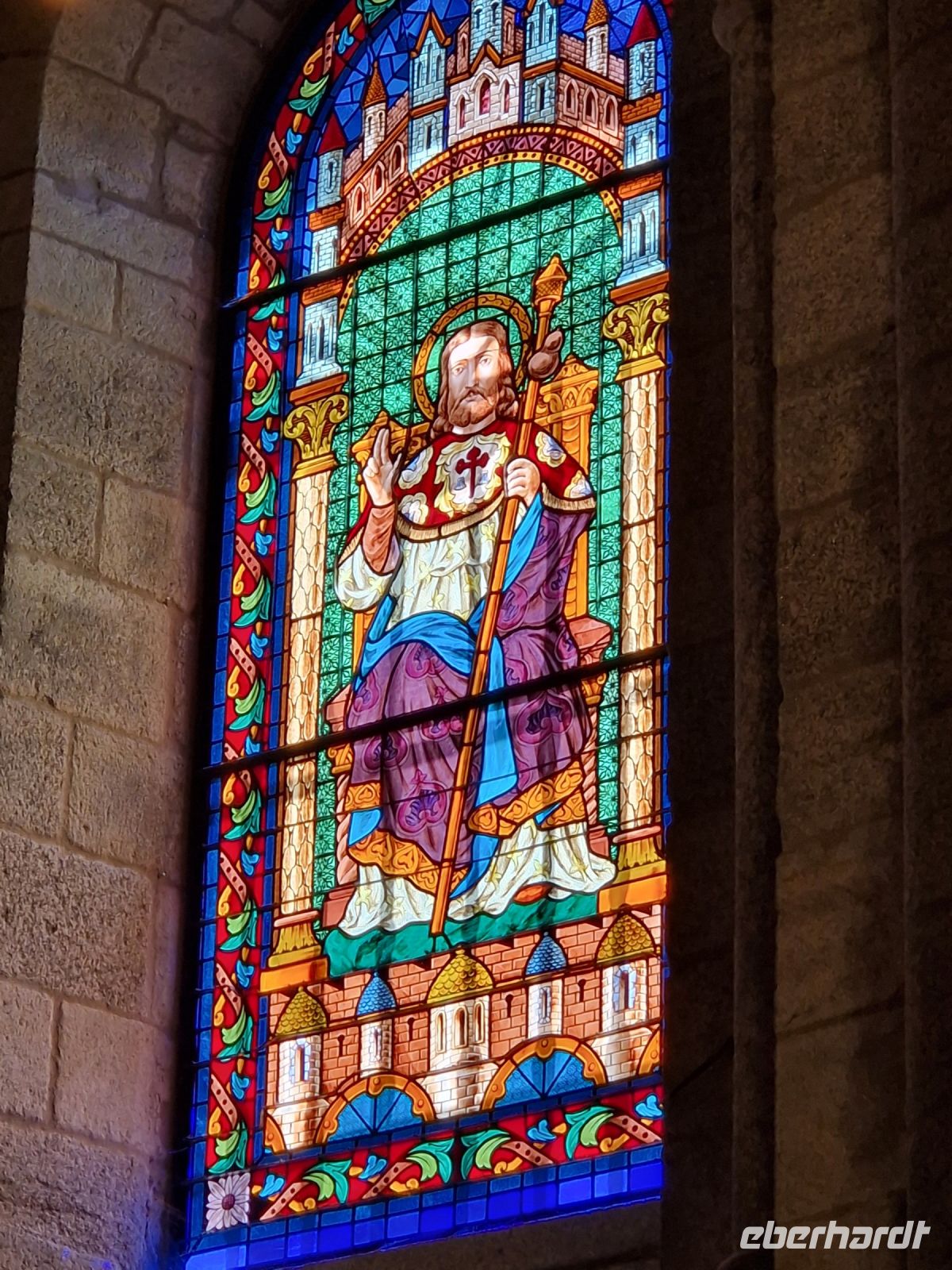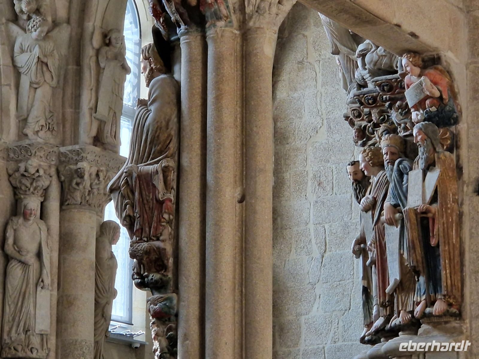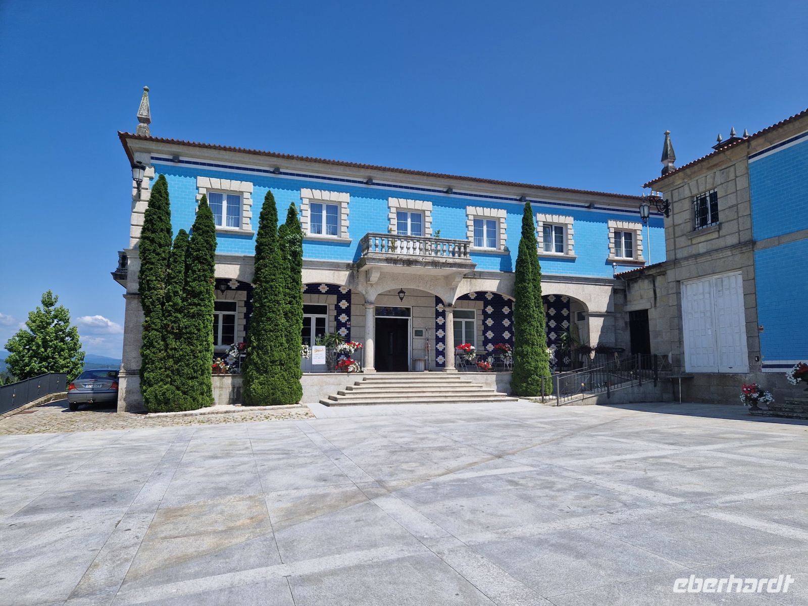 Wir haben unser Ziel erreicht und hören schon die Glocken der Kathedrale. Wir besichtigten die Kathedrale und umarmten den Apostel laut der Tradition und alle von uns bleiben um 12 Uhr da um die Pilgermesse zu hören. Wir hatten dieser Termin wieder Glück da heute am Ende der Messe an der Kathedrale von Santiago de Compostela können wir das größte Weihrauchfass der Welt, den Botafumeiro, erstaunen. Man hat weinend zugehört und Tränen gesehen, aber alle volle Freude und Zufriedenheit. Was für eine Ruhe hier. Später bei einer Stadtbesichtigung erkunden wir weiter auch die Altstadt von Santiago de Compostela, die neben der Kathedrale und dem Jakobsweg natürlich auch zum Weltkulturerbe der UNESCO gehört. Eberhardt Travel hat auch heute eine Überraschung und besorgte für alle Gäste einem Ribeiro Glas Weißwein um zu feiern, dass man bis hier her es geschaffen hat.