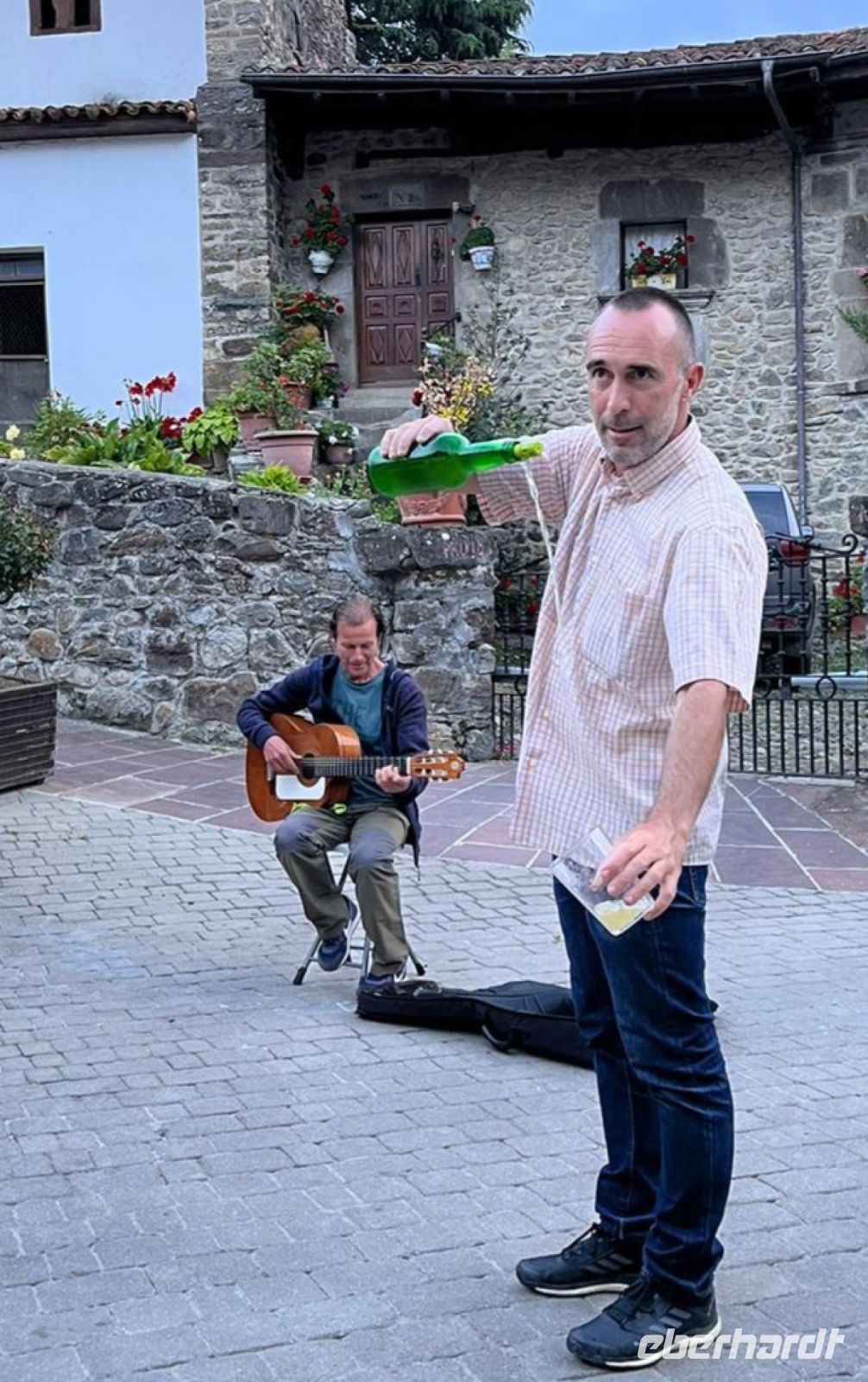 Schon wieder in Fuente Dé angekommen, verabschieden wir uns von Oscar und fuhren kurz nach Mogrovejo. Mogrovejo ist ein kleines Dorf der Gemeinde Camaleño in Kantabrien und hat weniger als 50 Einwohnern. Mogrovejo steht auf der Liste von schönsten Dorf Spaniens und hier werden wir mit Sonne Tapas essen. Viele von uns trinken zum ersten Mal ein Tinto de Verano (Mischung von Rot Wein und Sprite oder Fanta Lemon) mit Oliven als Tapas. Hier am Dorfplatz stoßen wir für die erste schöne Wanderung an.