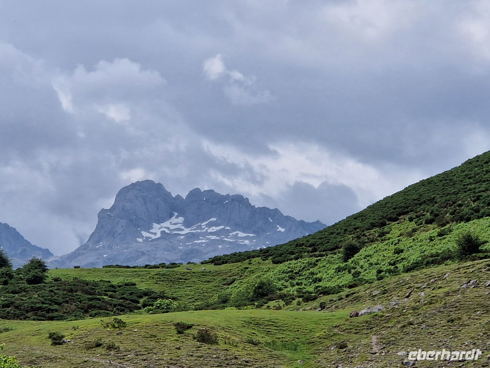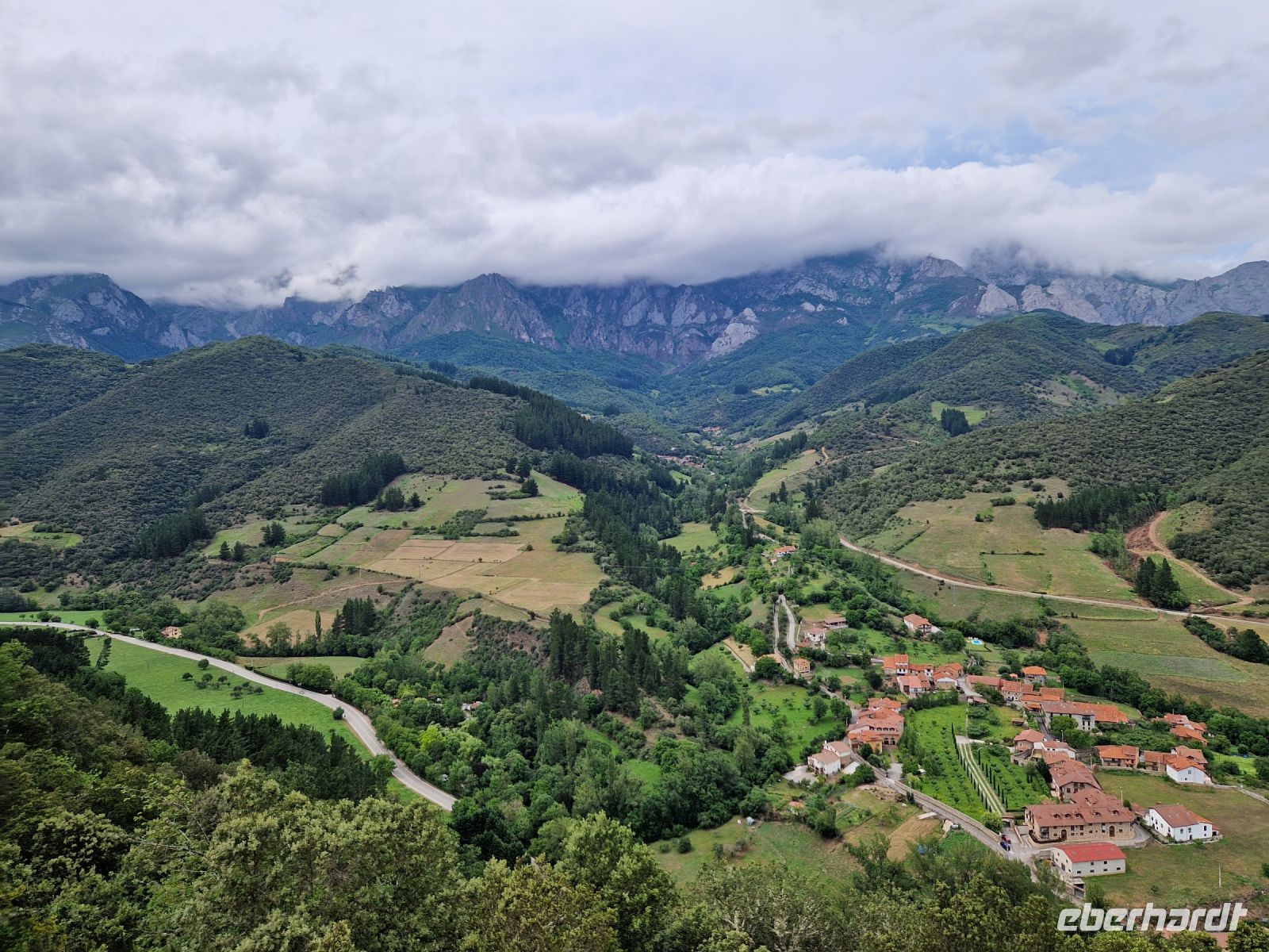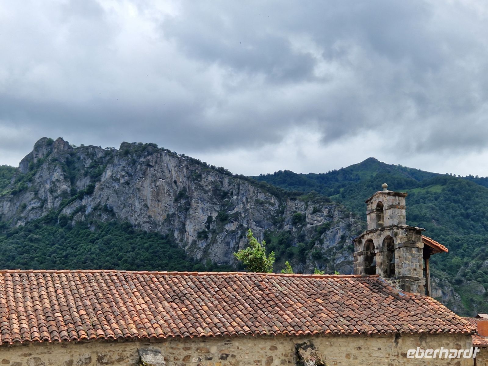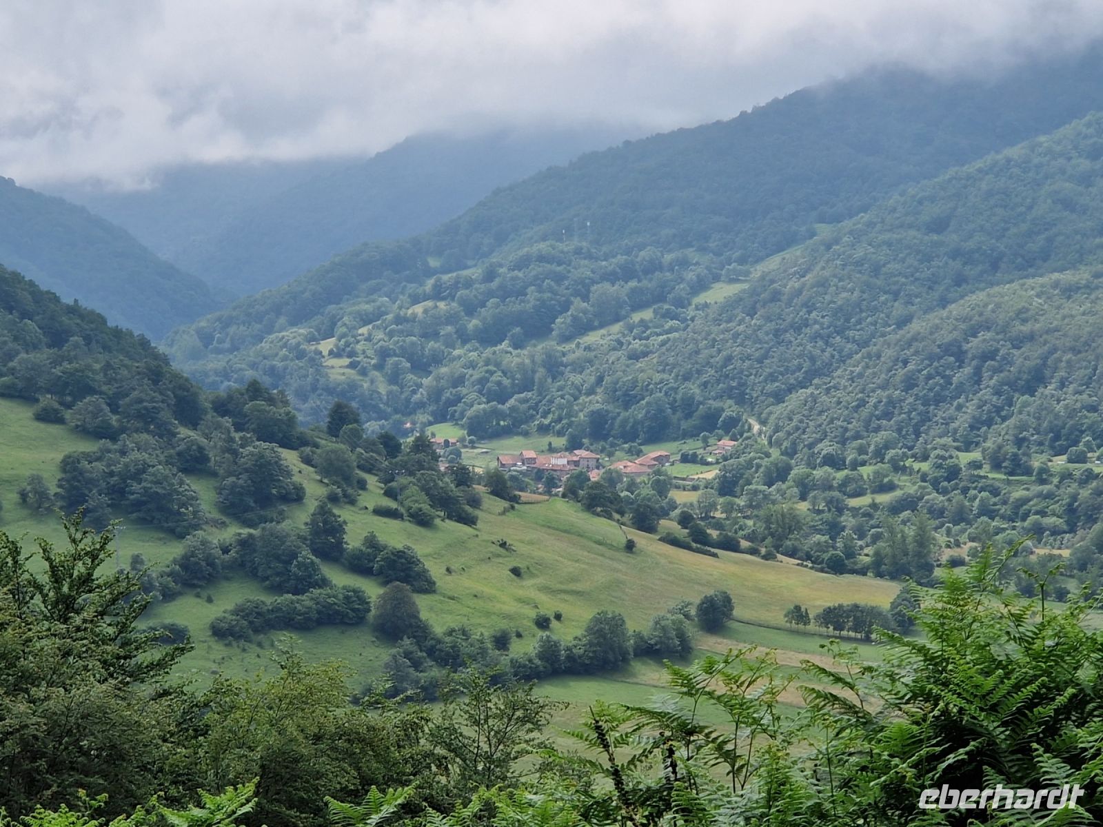 Das Wetter könnte heute besser sein aber dazu hatten wir bis jetzt und auch gestern Glück bei der Wanderung mit Oscar. Wir genießen die grüne Wiese mit Kühen, die das ganze Jahr hier Blick auf die voll mit Schnee bedeckten Gipfel des Picos de Europa haben. Plötzlich aber kam ein Gewitter. Wir werden es nicht vergessen. Es war nicht nur Regen, sondern auch Blitze dabei und laut Erfahrung, waren Sie nicht so weit weg von uns. Wir haben uns alle gegenseitig geholfen und am Ende könnten wir die Wanderung sogar mit Sonne wieder beenden. Wir waren total nass und Ines hatte die tolle Idee uns lieber so schnell wie möglich umzuziehen bevor wir am frühen Nachmittag weiter nach Ribadeo (schon in Galizien) an der Atlantik-Küste fahren. Bei Cangas de Onis wo man eine „romanische“ Brücke zu Fuß zu überqueren kann, werden wir uns am Busbahnhof umziehen. Niemand hat nichts gesehen oder mindestens, niemand was nicht wollte. Der Busfahrer Miguel hat gelacht und sagte sowas wird er auch nicht schnell vergessen. Wir waren trocken und glücklich.